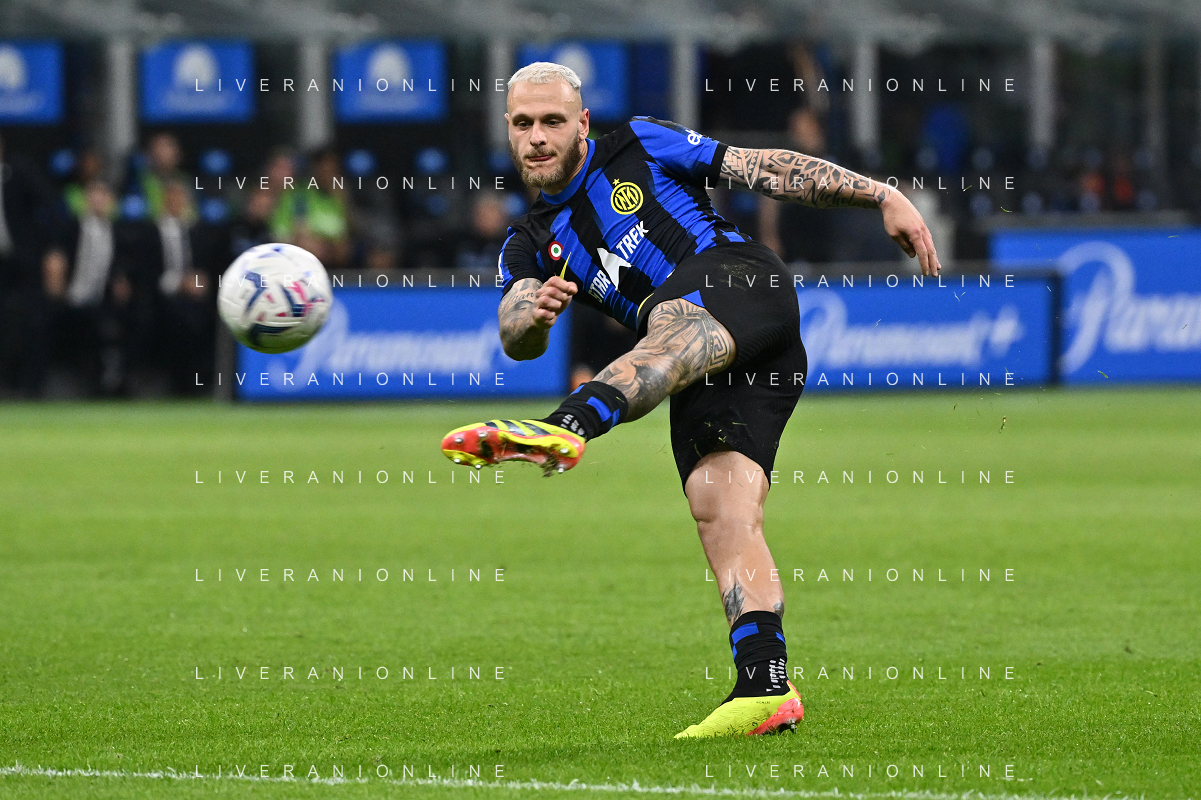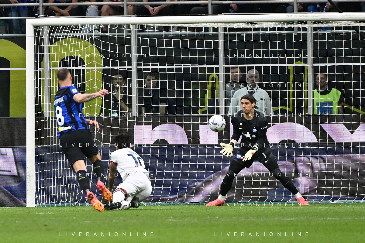 Inter vs Cagliari nella foto Nicolo' Barella (Inter) segna il gol del 2 a 0 ma la rete viene annullata per fuorigioco Milano 14-04-2024 Stadio Giuseppe Meazza - San Siro Campionato Serie A TIM - 32a giornata foto Roberto Garavaglia/Agenzia Aldo Liverani sas/ AGENZIA ALDO LIVERANI SAS