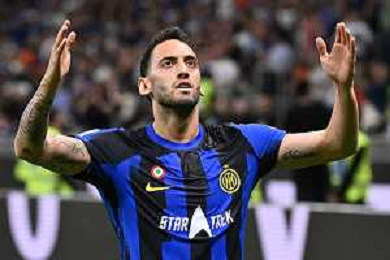 Inter vs Cagliari nella foto Hakan Calhanoglu (Inter) Milano 14-04-2024 Stadio Giuseppe Meazza - San Siro Campionato Serie A TIM - 32a giornata foto Roberto Garavaglia/Agenzia Aldo Liverani sas