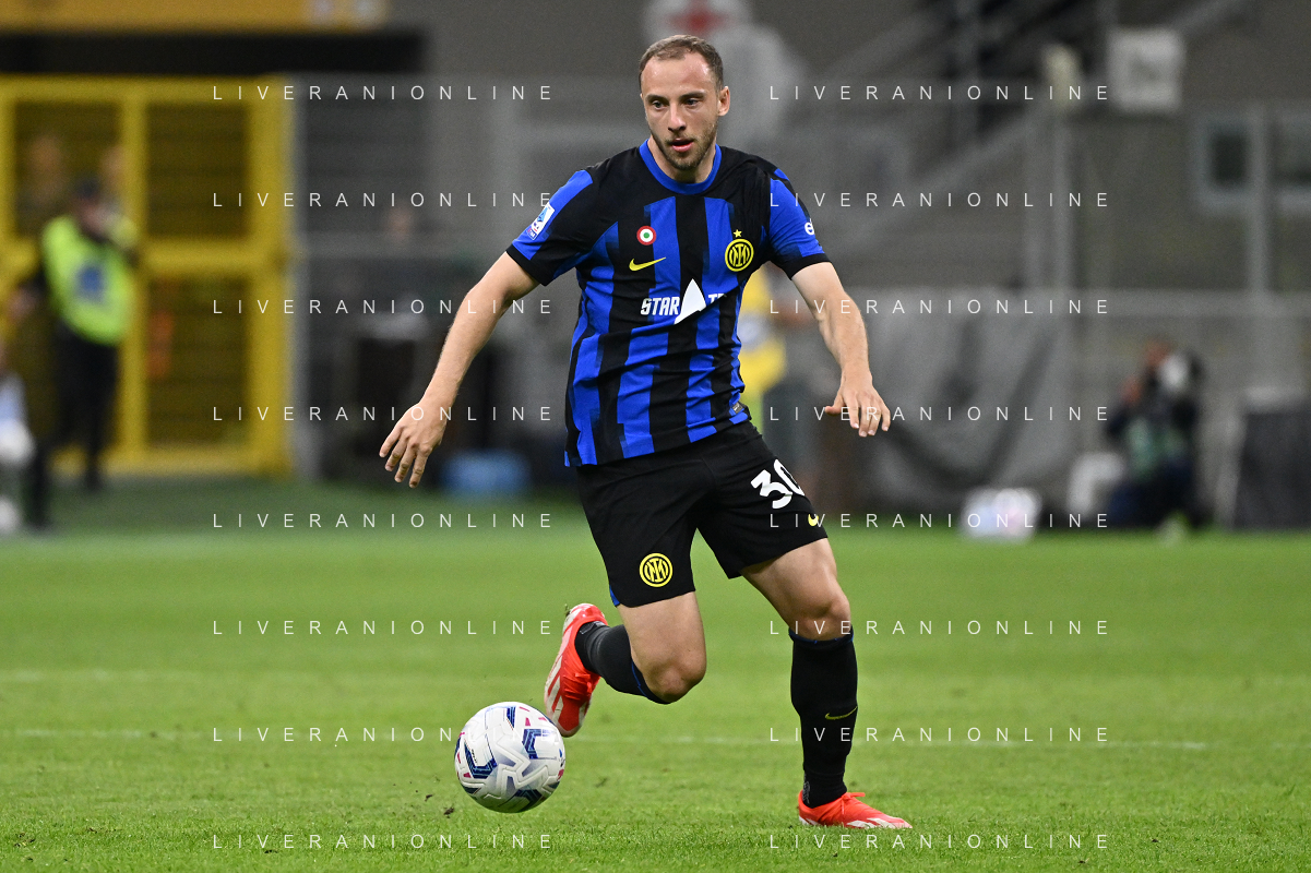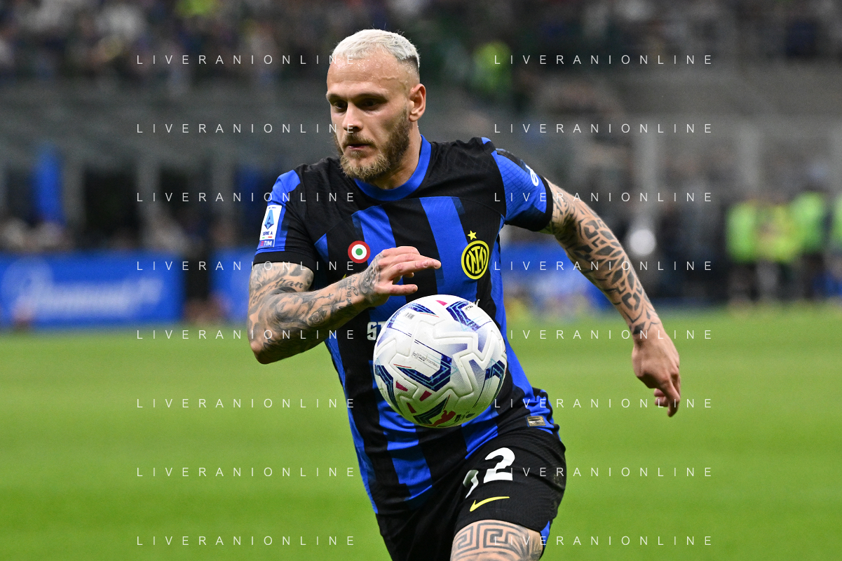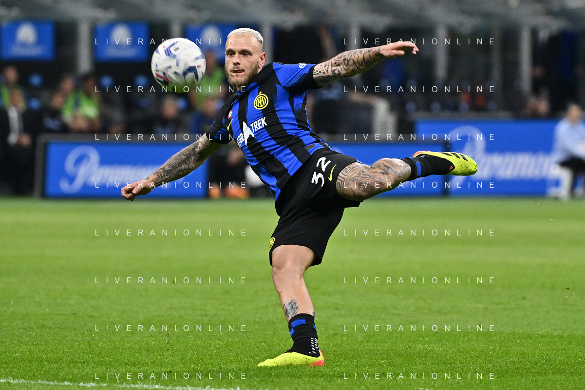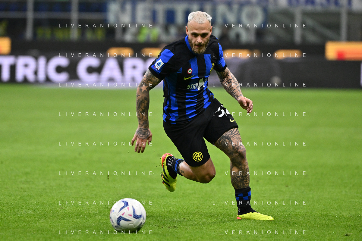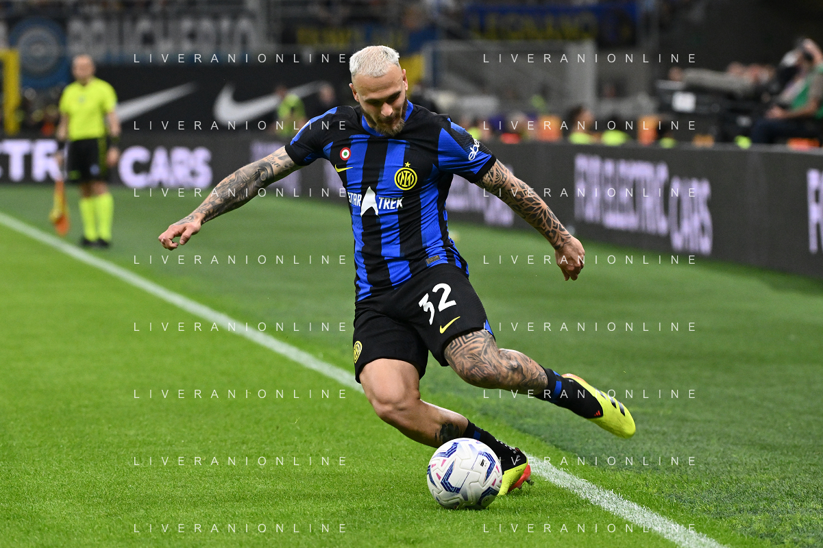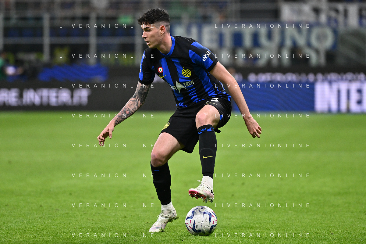 Inter vs Cagliari nella foto Federico Dimarco (Inter) Milano 14-04-2024 Stadio Giuseppe Meazza - San Siro Campionato Serie A TIM - 32a giornata foto Roberto Garavaglia/Agenzia Aldo Liverani sas