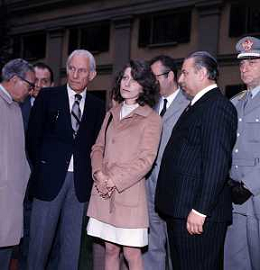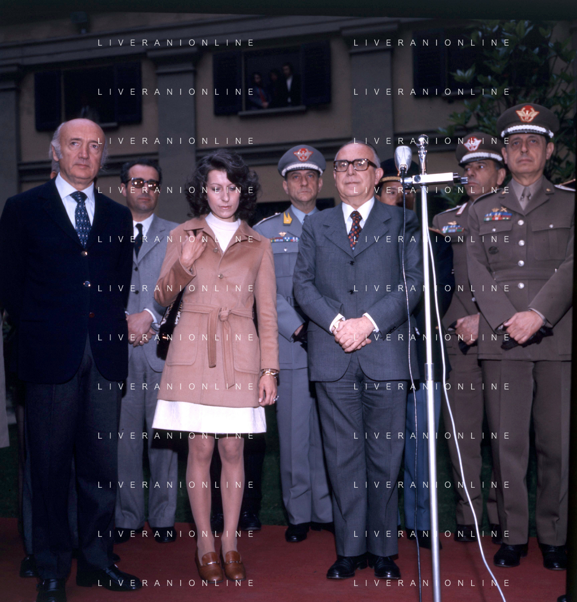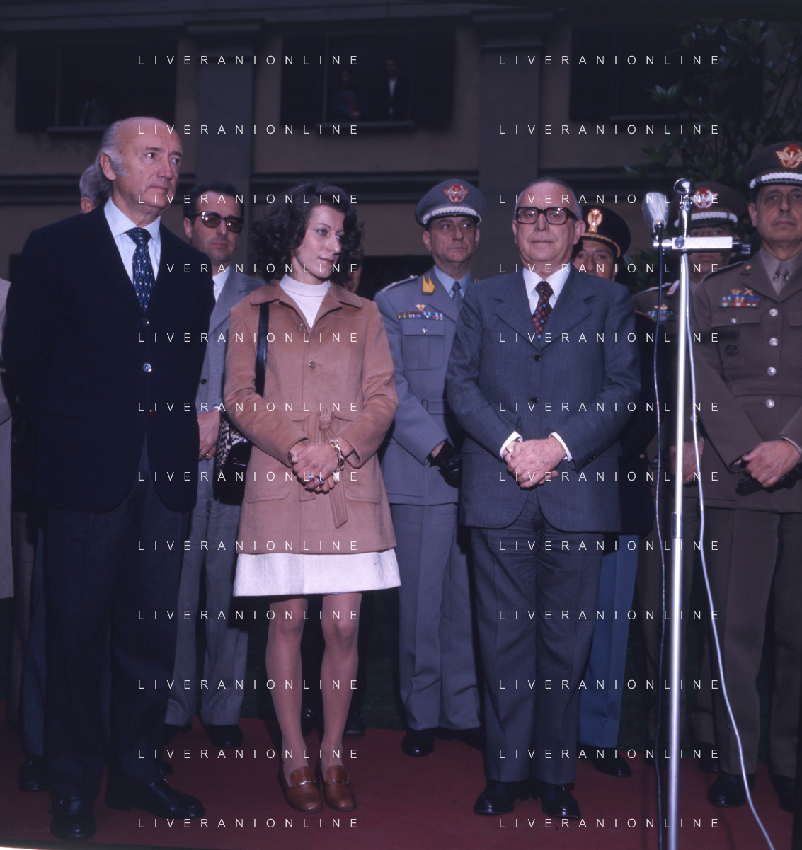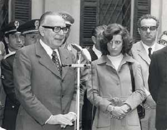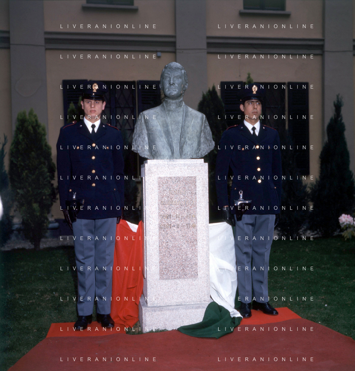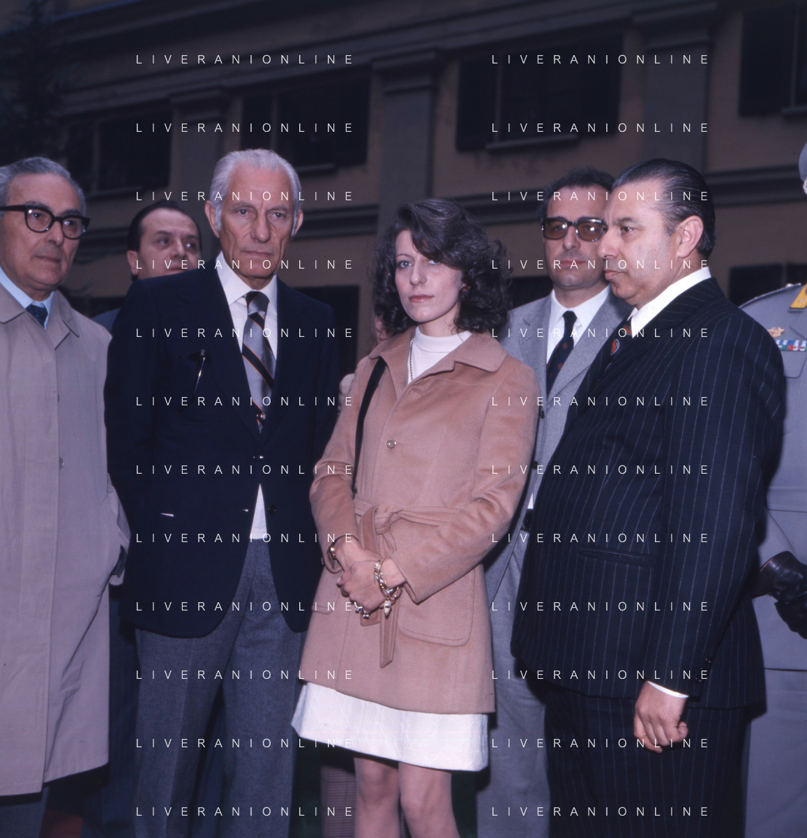 COL-MILANO 17 maggio 1973,, a un anno dall'assassinio, si tenne l'inaugurazione di un busto commemorativo in memoria del commissario nel cortile della Questura di Milano. Alla cerimonia partecipò l'allora Ministro dell'Interno Mariano Rumor. Durante la cerimonia l'anarchico Gianfranco Bertoli lanciò una bomba a mano tra i partecipanti. L'esplosione uccise 4 persone e ne ferì 52, ma non colpì Rumor, indicato come probabile obiettivo. Bertoli rivendicò l'azione come vendetta per la morte di Pinelli urlando: «Morirete tutti come Calabresi e ora uccidetemi come Pinelli nella foto mariano rumor e emma calabresi AG ALDO LIVERANI SAS