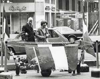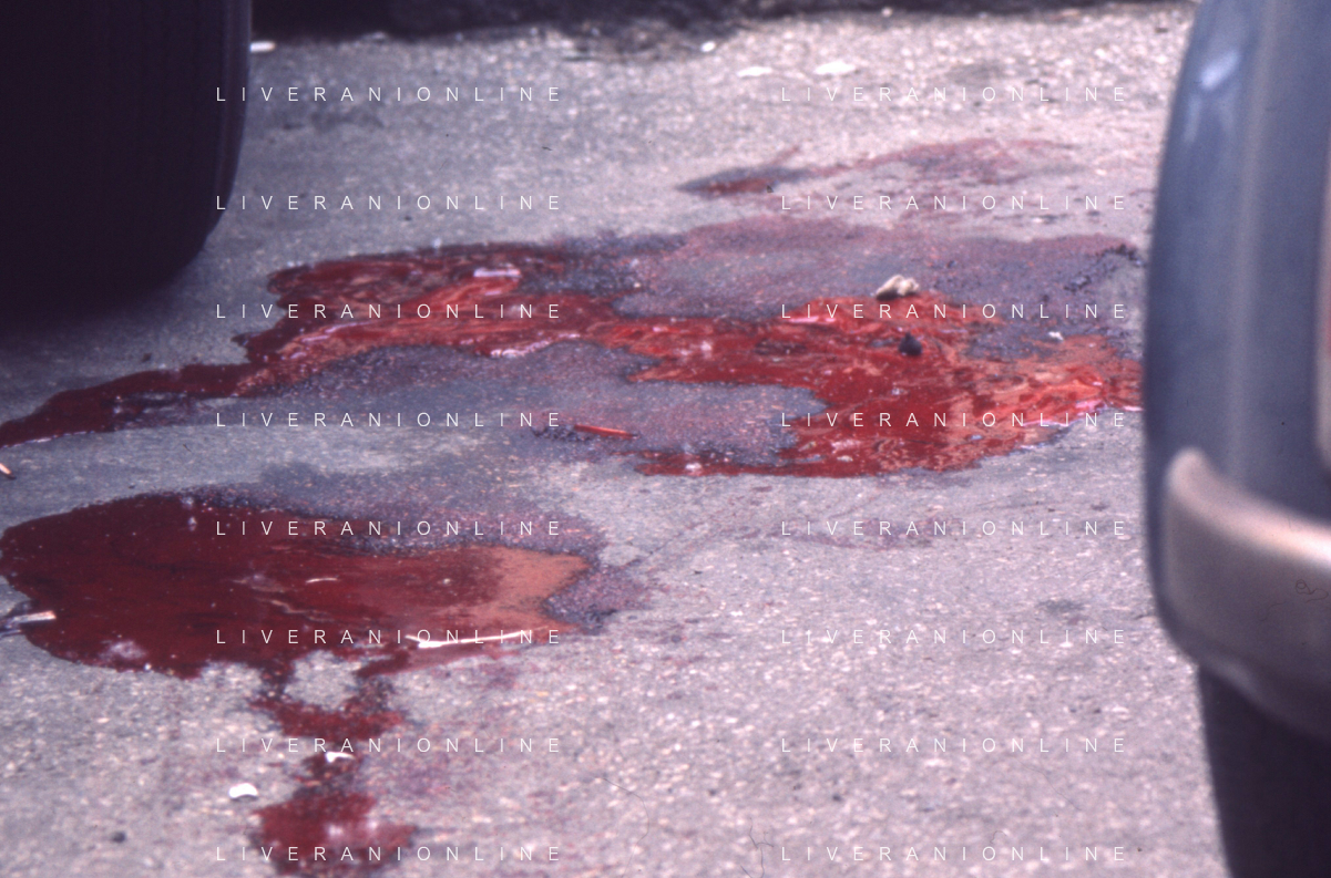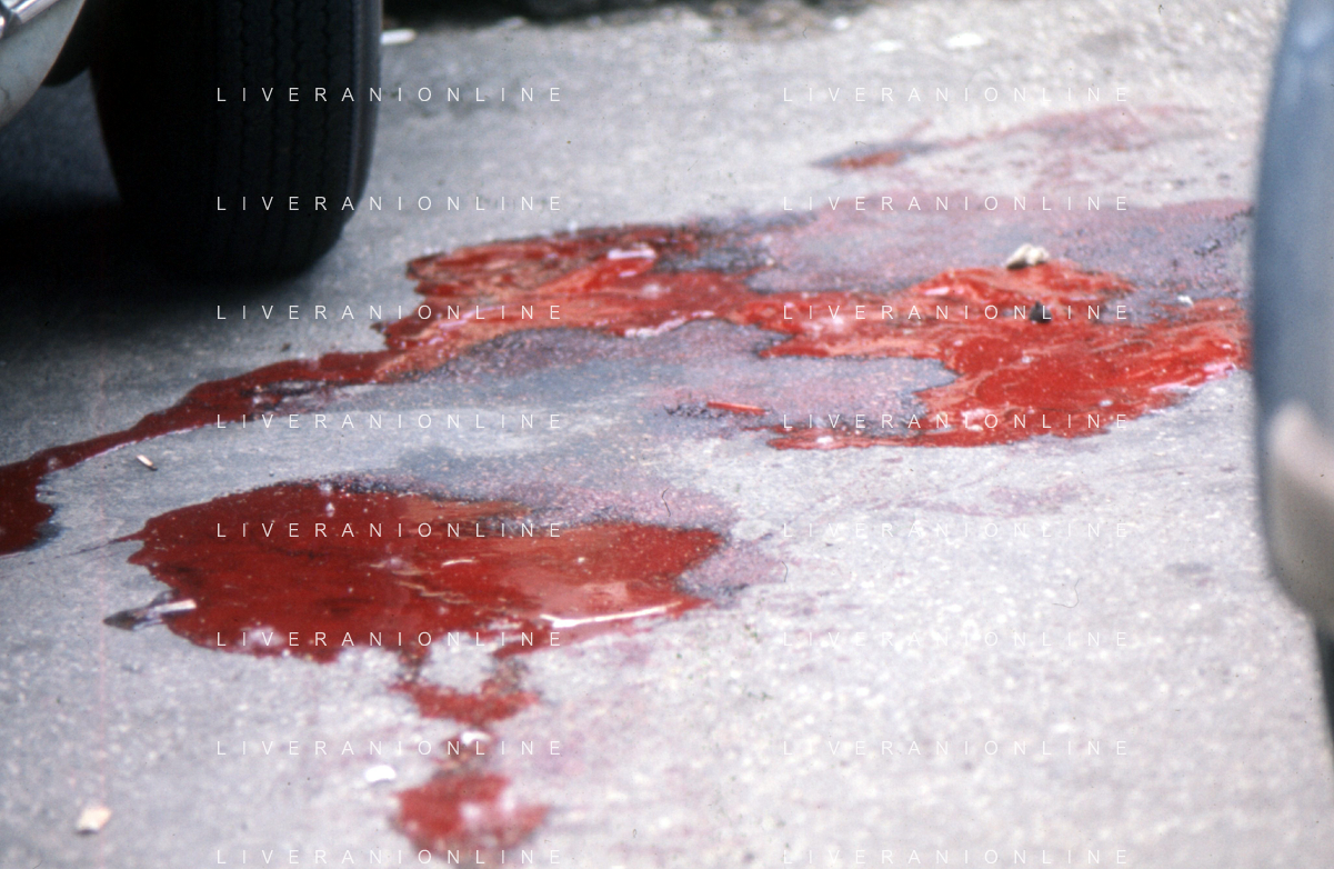 DIAP-MILANO 17-05-1972 OMICIDIO DEL COMMISSARIO DI POLIZIA LUIGI CALABRESI NELLA FOTO IL LUOGO DOVE E' DOVE E' STATO UCCISO L'ISPETTORE DI POLIZIA LUIGI CALABRESI IN VIA CHERUBINI A MILANO AG ALDO LIVERANI SAS