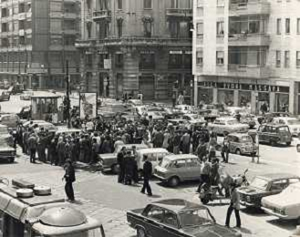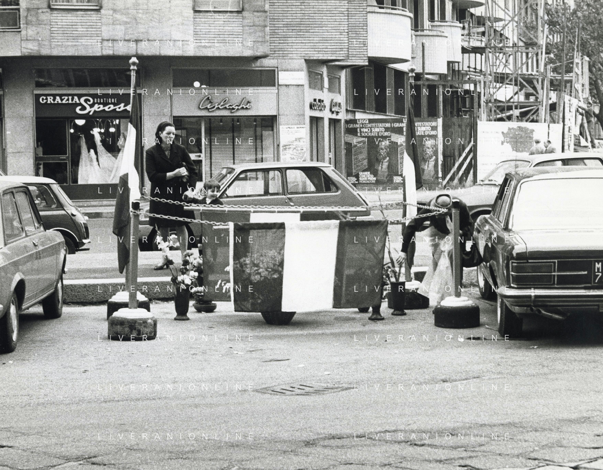 ST-MILANO 17-05-1972 OMICIDIO DEL COMMISSARIO DI POLIZIA LUIGI CALABRESI NELLA FOTO IL LUOGO DOVE E' DOVE E' STATO UCCISO L'ISPETTORE DI POLIZIA LUIGI CALABRESI IN VIA CHERUBINI A MILANO AG ALDO LIVERANI SAS