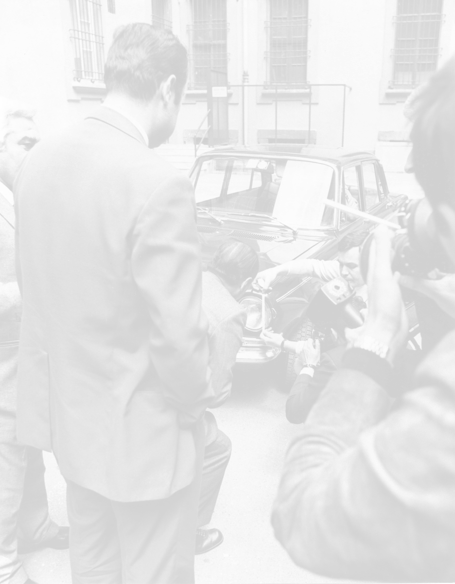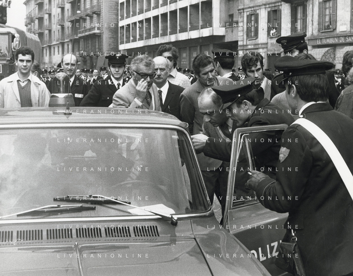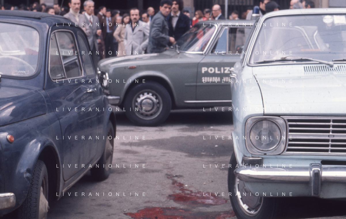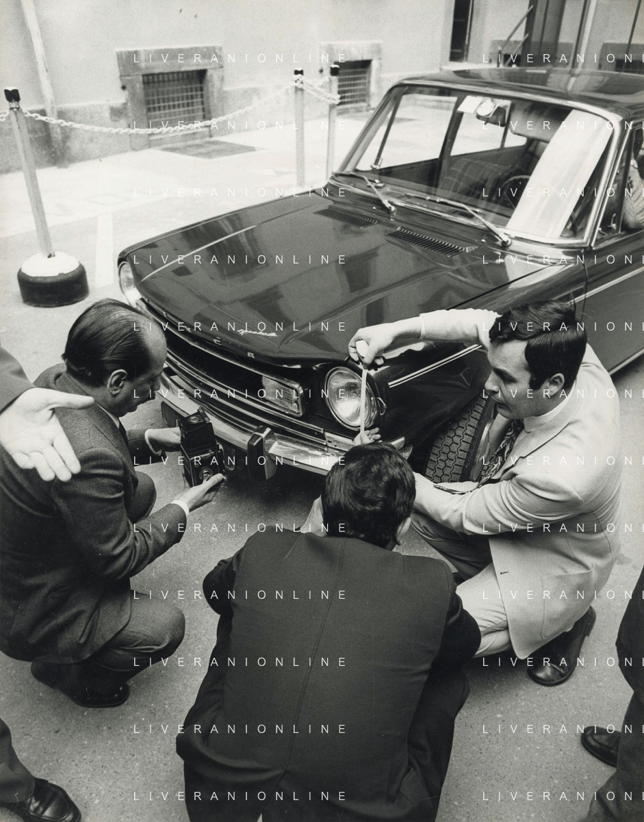 ST-MILANO 17-05-1972 OMICIDIO DEL COMMISSARIO DI POLIZIA LUIGI CALABRESI NELLA FOTO RILIEVI IN QUESTURA SULLE AUTO COINVOLTE NELL'OMICIDIO DEL COMMISSARIO LUIGI CALABRESI AG ALDO LIVERANI SAS
