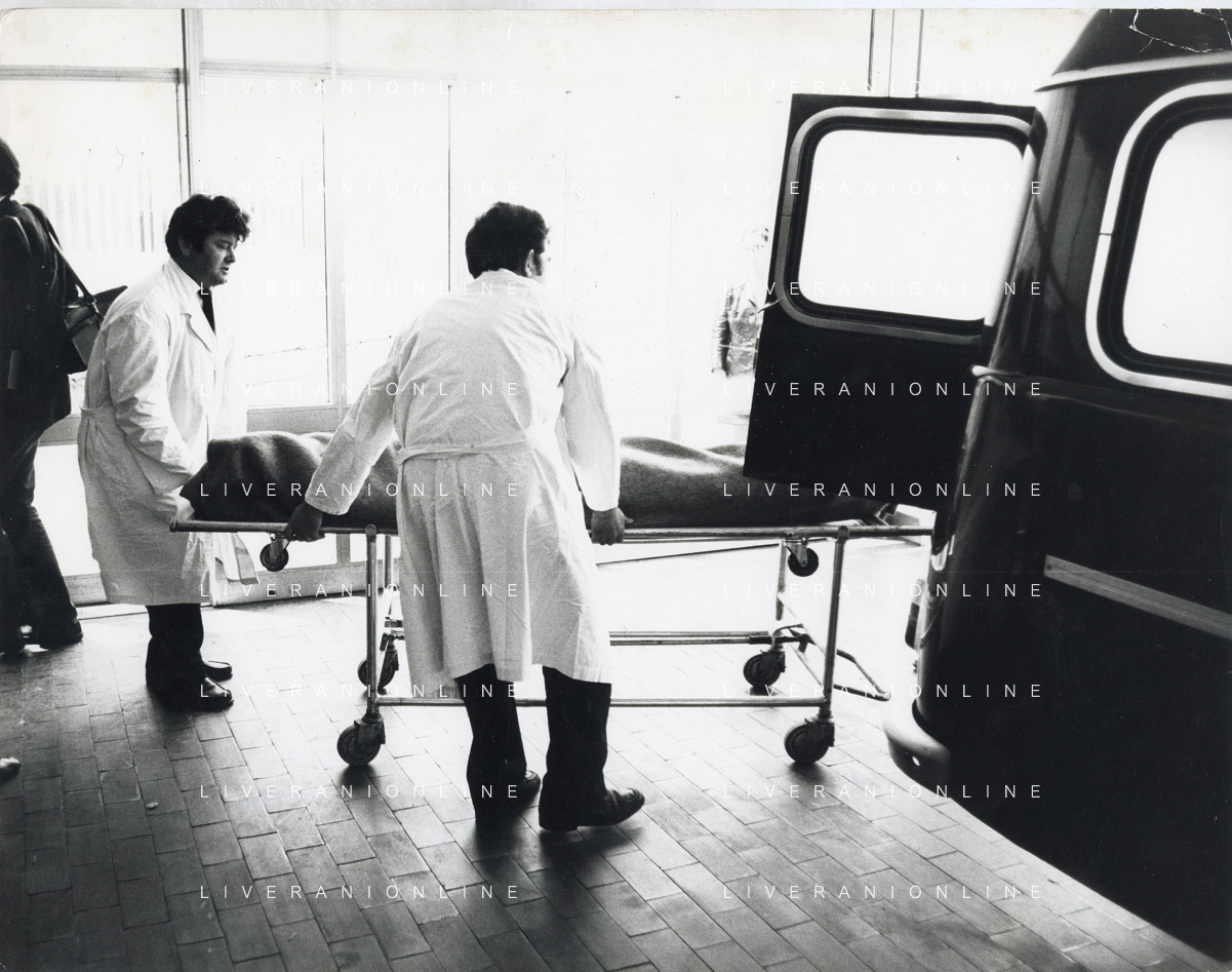 ST-MILANO 17-05-1972 OMICIDIO DEL COMMISSARIO DI POLIZIA LUIGI CALABRESI NELLA FOTO OBITORIO DI MILANO DOVE E' STATO TRASFERITO IL COMMISSARIO DI POLIZIA LUIGI CALABRESI AG ALDO LIVERANI SAS