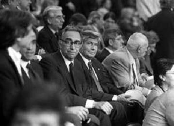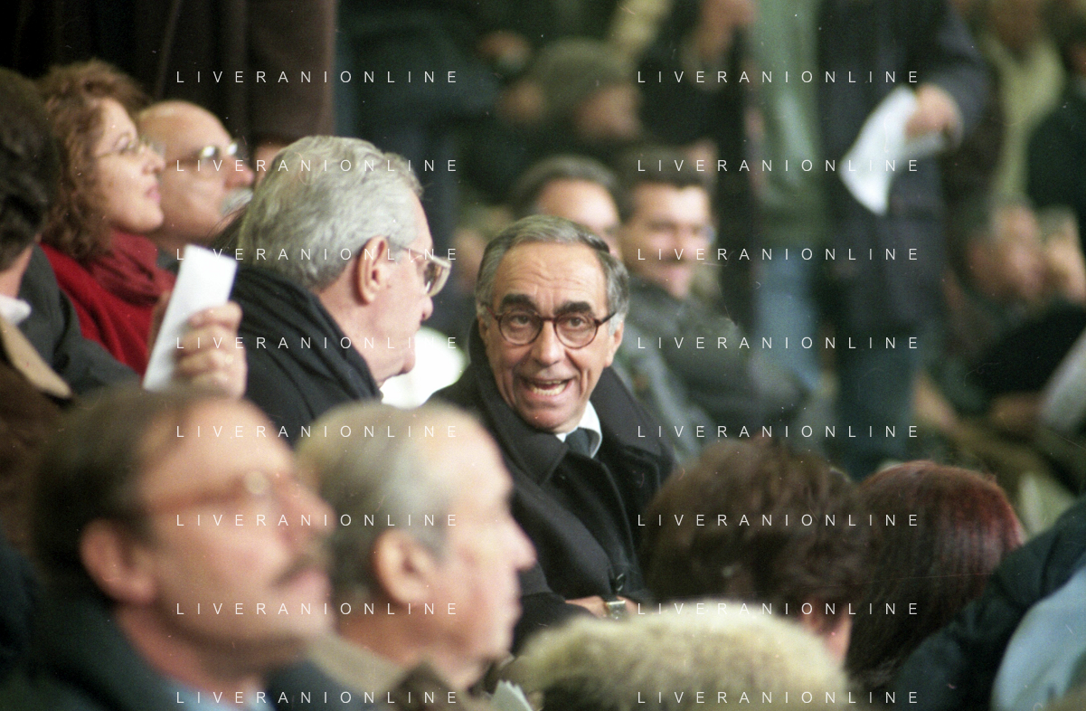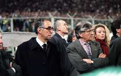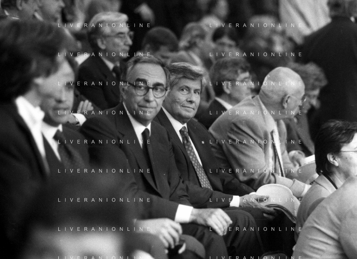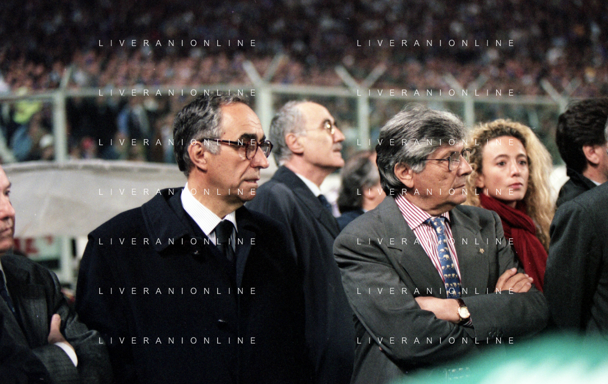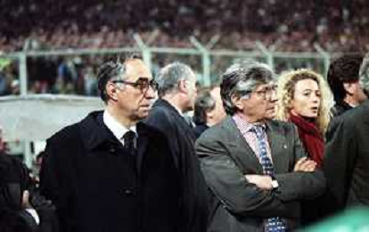 Neg- RETROSPETTIVA FRANCO CARRARO DIRIGENTE SPORTIVO E POLITICO NELLA FOTO FRANCO CARRARO PRESIDENTE FEDERCALCIO CON LUCIANO NIZZOLA IN TRIBUNA NELL'ANNO 1996-1997 AG ALDO LIVERANI SAS