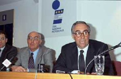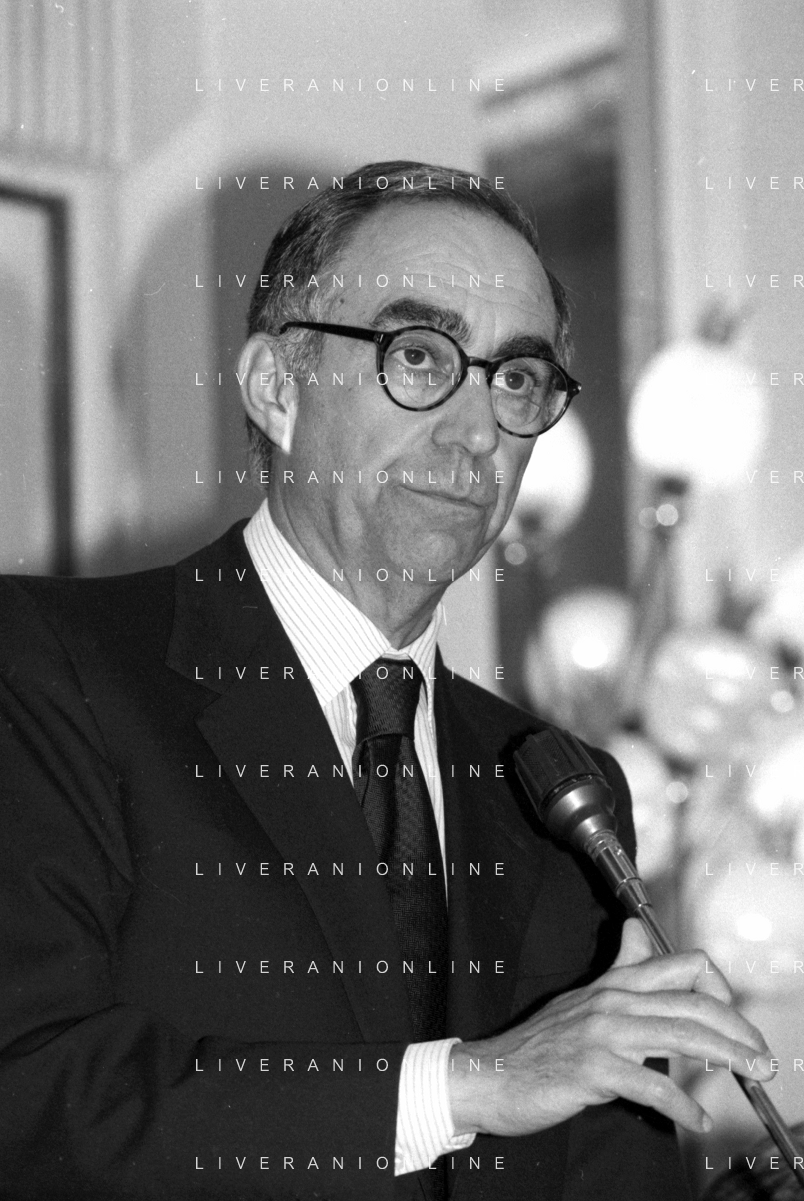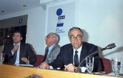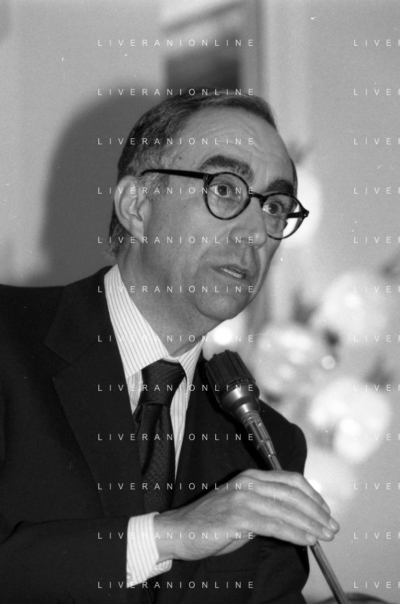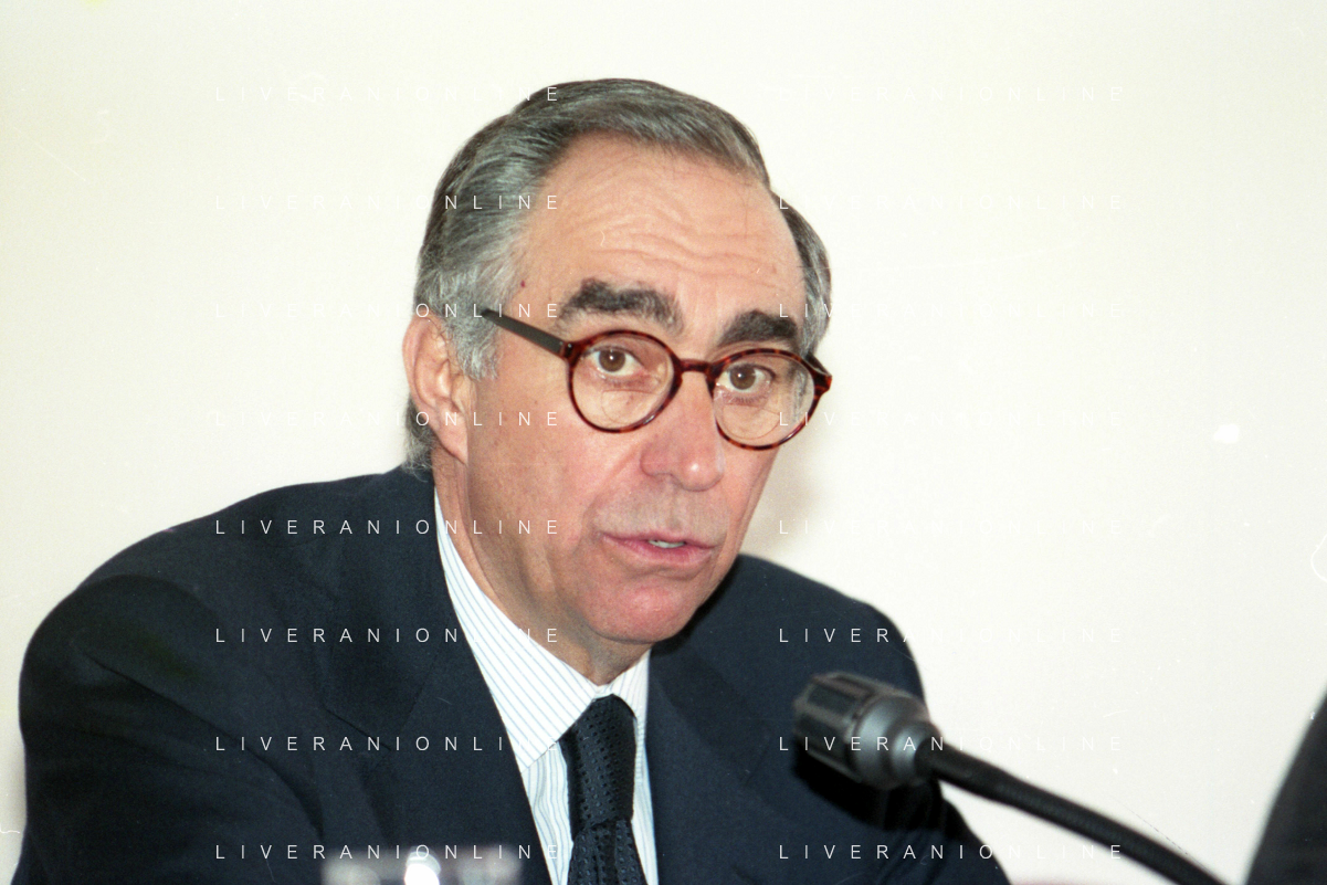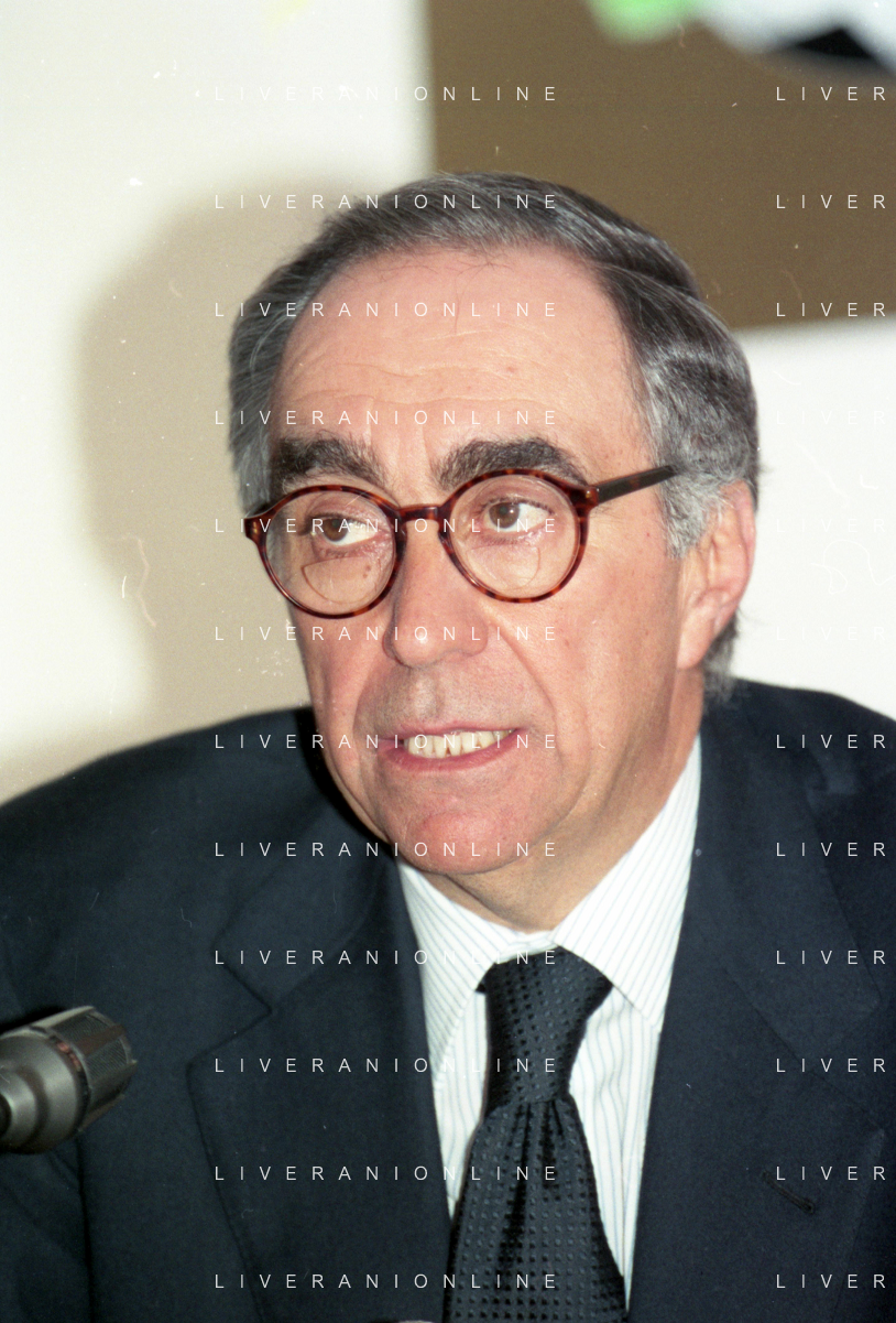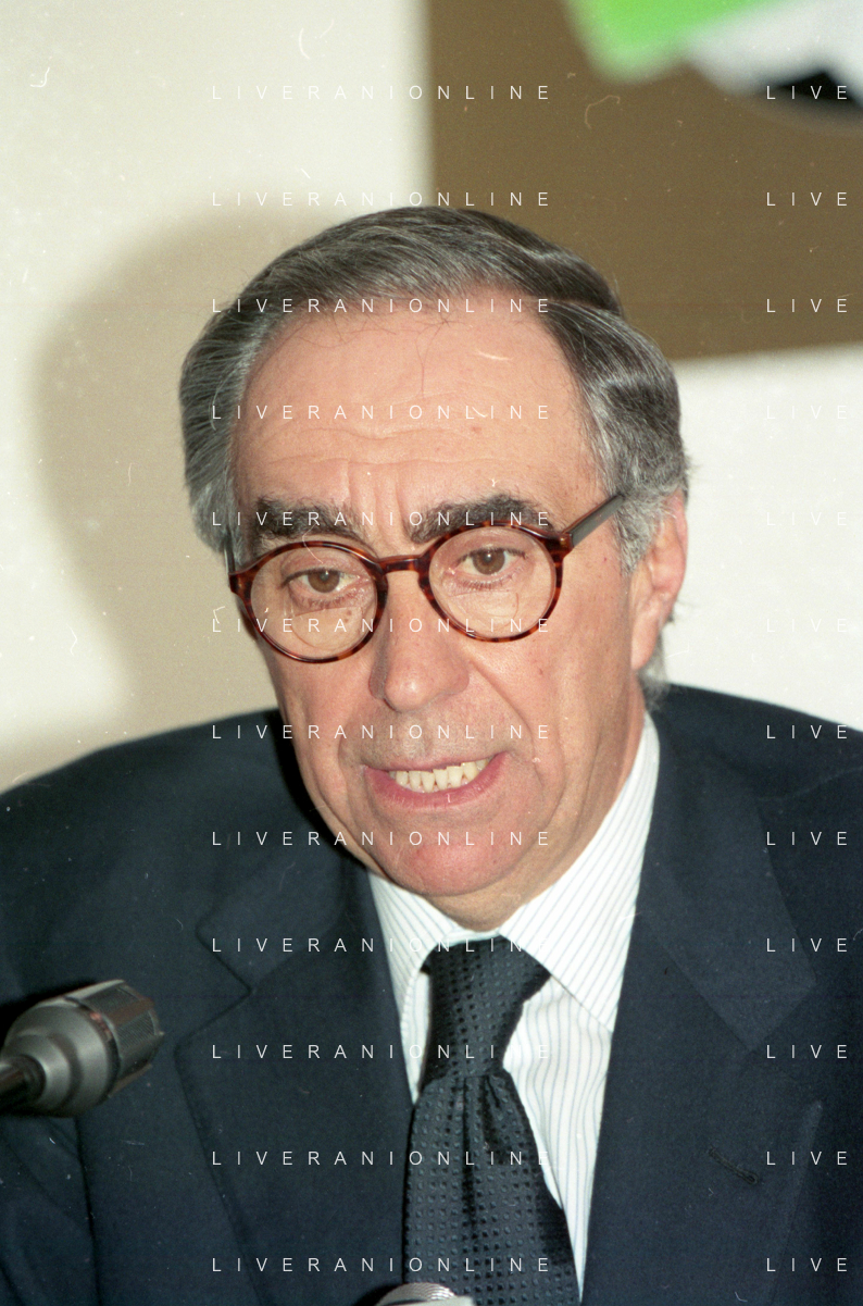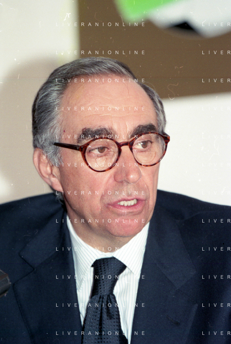 Neg- RETROSPETTIVA FRANCO CARRARO DIRIGENTE SPORTIVO E POLITICO NELLA FOTO FRANCO CARRARO PRESIDENTE FEDERCALCIO ALL'ASSEMBLEA DI LEGA CALCIO A MILANO NELL'ANNO 1997 AG ALDO LIVERANI SAS