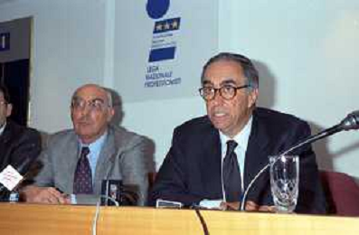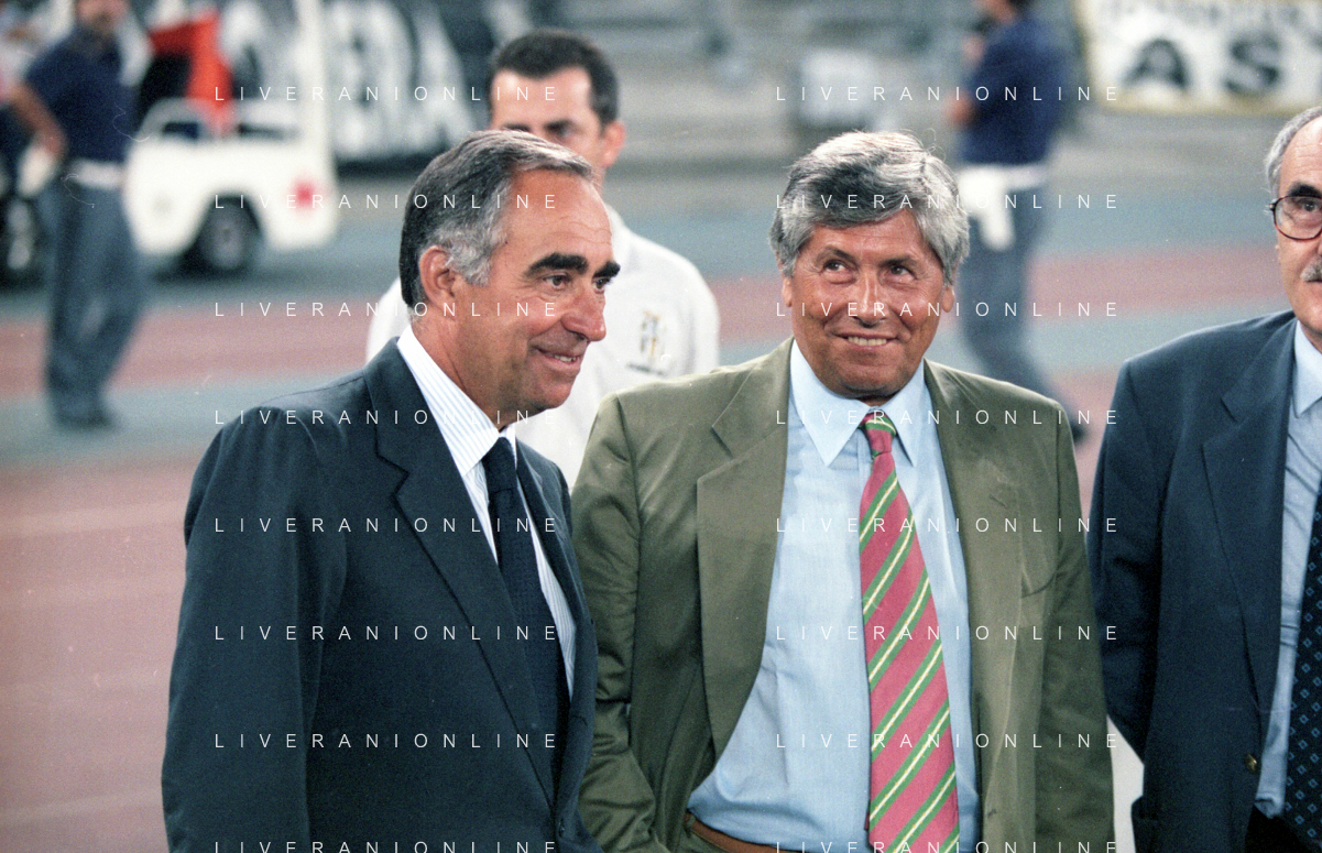 Neg- RETROSPETTIVA FRANCO CARRARO DIRIGENTE SPORTIVO E POLITICO NELLA FOTO FRANCO CARRARO PRESIDENTE FEDERCALCIO CON LUCIANO NIZZOLA NELL'ANNO 1998 AG ALDO LIVERANI SAS