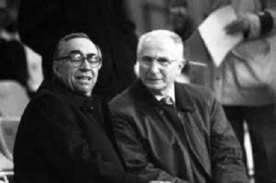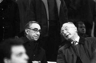 Neg- RETROSPETTIVA FRANCO CARRARO DIRIGENTE SPORTIVO E POLITICO NELLA FOTO FRANCO CARRARO PRESIDENTE FEDERCALCIO CON LUCIANO NIZZOLA NELL'ANNO 1997 AG ALDO LIVERANI SAS