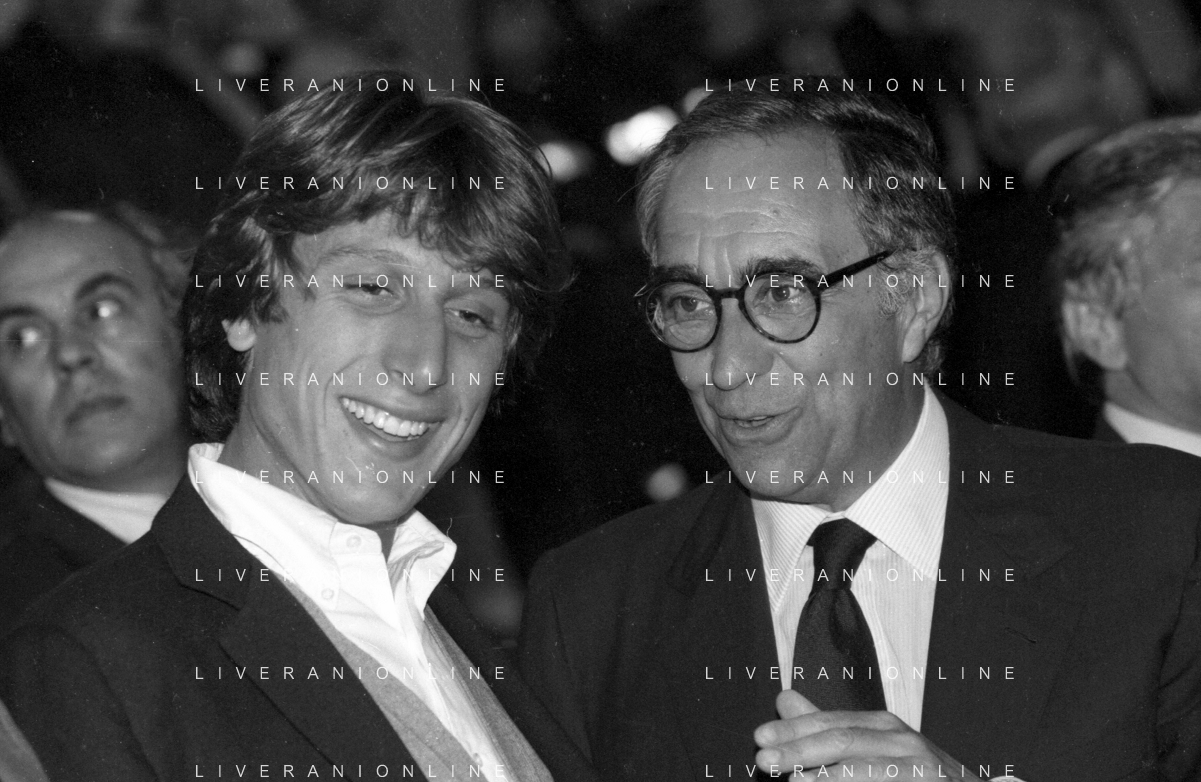 Neg- RETROSPETTIVA FRANCO CARRARO DIRIGENTE SPORTIVO E POLITICO NELLA FOTO FRANCO CARRARO PRESIDENTE FEDERCALCIO CON IL FIGLIO LUIGI NELL'ANNO 1998 AG ALDO LIVERANI SAS