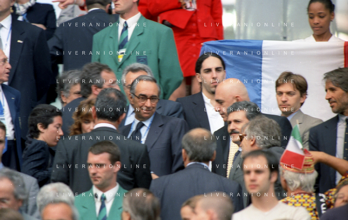 Neg- RETROSPETTIVA FRANCO CARRARO DIRIGENTE SPORTIVO E POLITICO NELLA FOTO FRANCO CARRARO PRESIDENTE FEDERCALCIO SUGLI SPALTI AI MONDIALI DI FRANCIA NELL'ANNO 1998 AG ALDO LIVERANI SAS