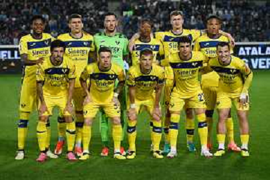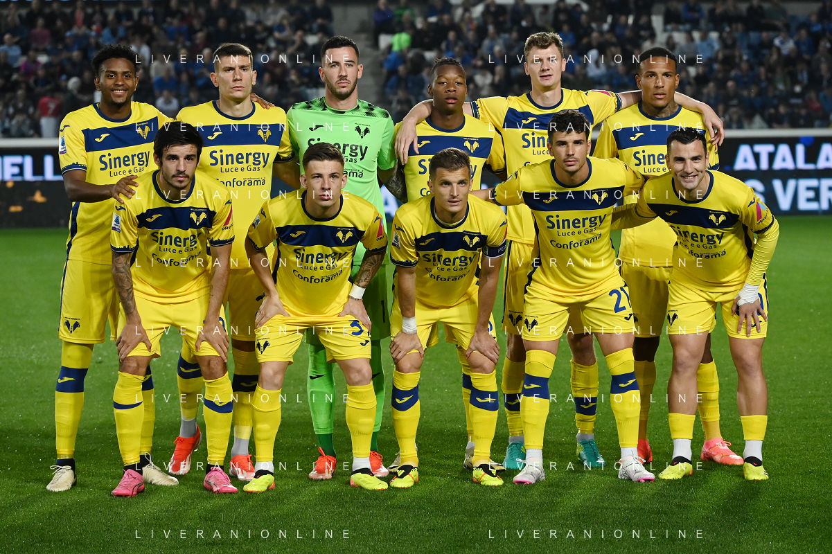 TVRG Atalanta vs Hellas Verona nella foto formazione Hellas Verona, in piedi da SX Juan David Cabal Murillo, Giangiacomo Magnani, Lorenzo Montipo', Tijjani Noslin, Pawel Dawidowicz e Michael Folorunsho; in basso da SX Fabien Centonze, Tomas Suslov, Darko Lazovic, Dani Silva e Federico Bonazzoli Bergamo 15-04-2024 Gewiss Stadium Campionato Serie A TIM - 32a giornata foto Roberto Garavaglia/Agenzia Aldo Liverani sas/ AGENZIA ALDO LIVERANI SAS