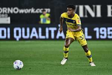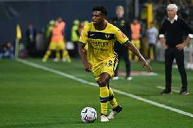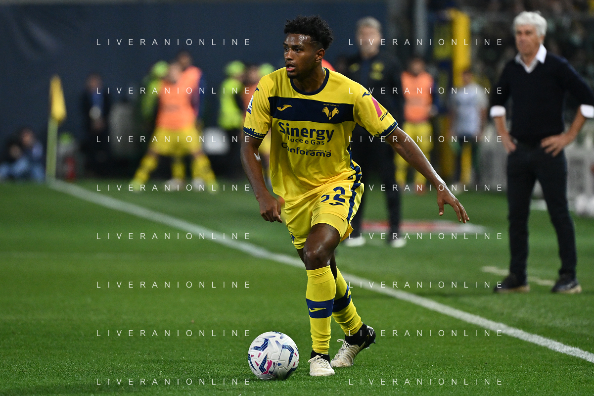 TVRG Atalanta vs Hellas Verona nella foto Michael Folorunsho (Hellas Verona) Bergamo 15-04-2024 Gewiss Stadium Campionato Serie A TIM - 32a giornata foto Roberto Garavaglia/Agenzia Aldo Liverani sas/ AGENZIA ALDO LIVERANI SAS