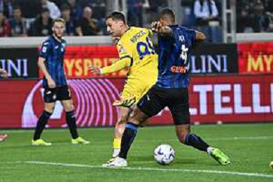 TVRG Atalanta vs Hellas Verona nella foto Charles de Ketelaere (Atalanta) e sulla SX Darko Lazovic (Hellas Verona) Bergamo 15-04-2024 Gewiss Stadium Campionato Serie A TIM - 32a giornata foto Roberto Garavaglia/Agenzia Aldo Liverani sas/ AGENZIA ALDO LIVERANI SAS