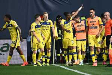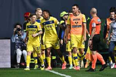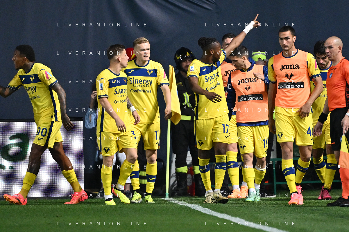 TVRG Atalanta vs Hellas Verona nella foto esultanza Hellas Verona dopo il gol del 2 a 2 Bergamo 15-04-2024 Gewiss Stadium Campionato Serie A TIM - 32a giornata foto Roberto Garavaglia/Agenzia Aldo Liverani sas/ AGENZIA ALDO LIVERANI SAS