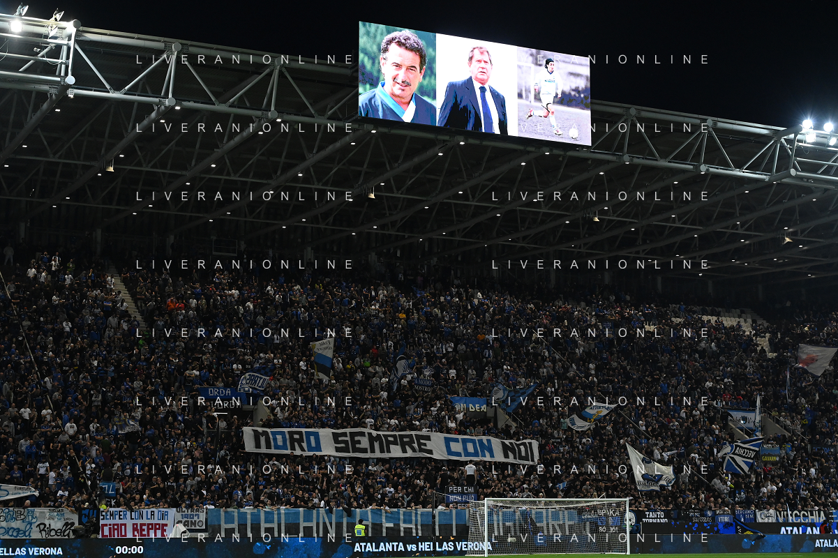 TVRG Atalanta vs Hellas Verona nella foto il ricordo congiunto per Emiliano Mondonico, Ivan Ruggeri e Piermario Morosini Bergamo 15-04-2024 Gewiss Stadium Campionato Serie A TIM - 32a giornata foto Roberto Garavaglia/Agenzia Aldo Liverani sas/ AGENZIA ALDO LIVERANI SAS