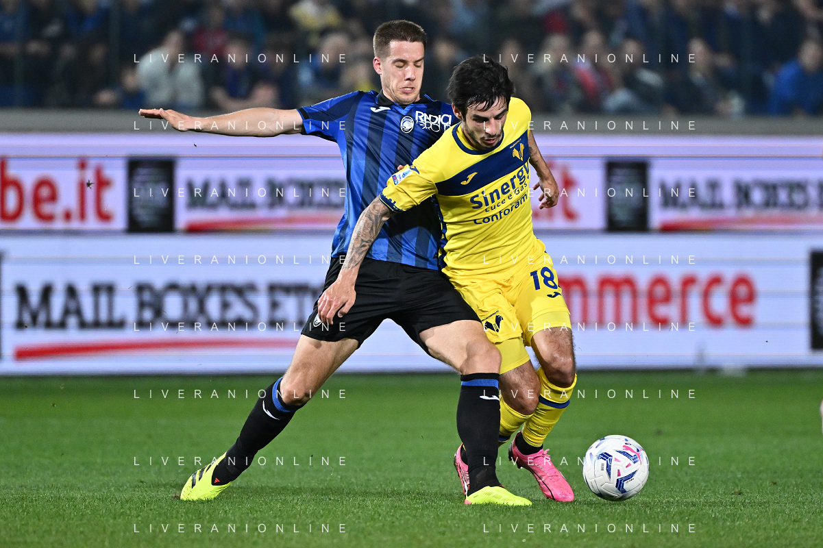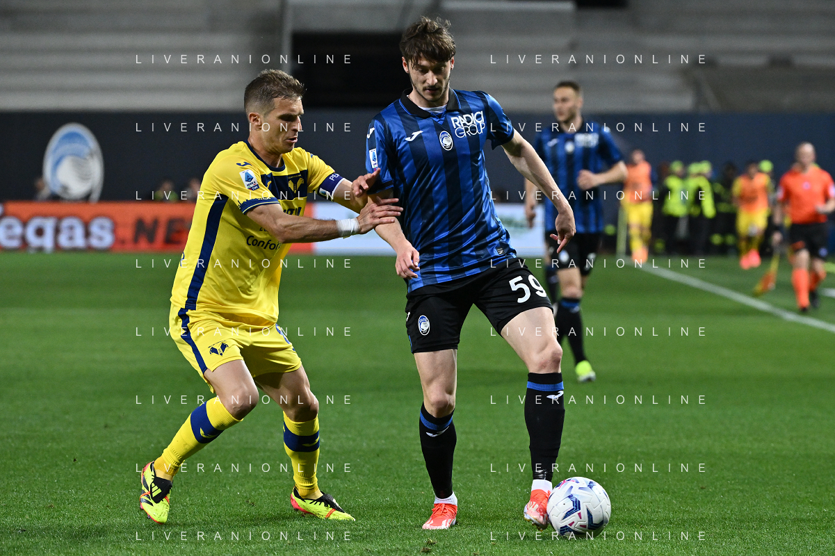 TVRG Atalanta vs Hellas Verona nella foto Giangiacomo Magnani (Hellas Verona) e Aleksej Miranchuk (Atalanta) Bergamo 15-04-2024 Gewiss Stadium Campionato Serie A TIM - 32a giornata foto Roberto Garavaglia/Agenzia Aldo Liverani sas/ AGENZIA ALDO LIVERANI SAS