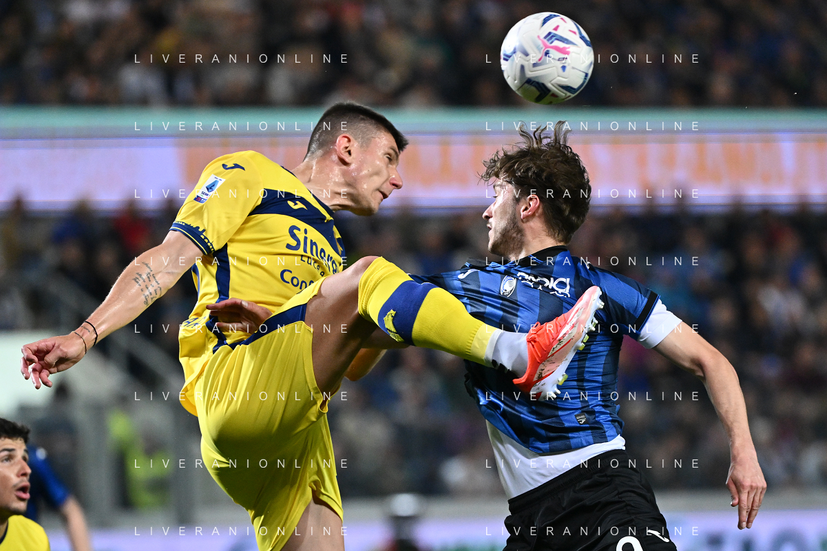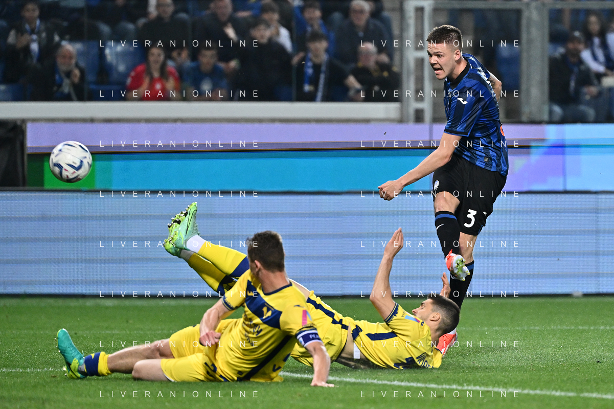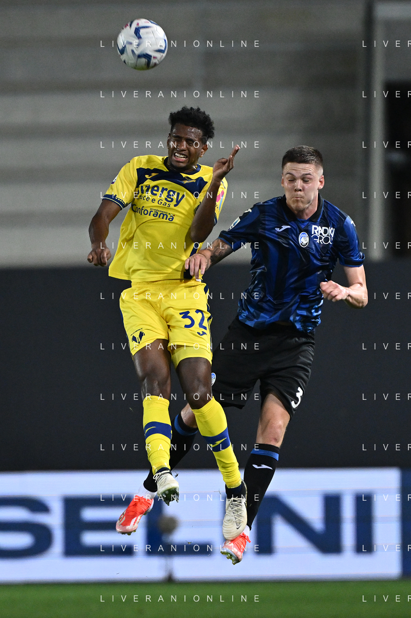 TVRG Atalanta vs Hellas Verona nella foto Juan David Cabal Murillo (Hellas Verona) ed Emil Holm (Atalanta) Bergamo 15-04-2024 Gewiss Stadium Campionato Serie A TIM - 32a giornata foto Roberto Garavaglia/Agenzia Aldo Liverani sas/ AGENZIA ALDO LIVERANI SAS