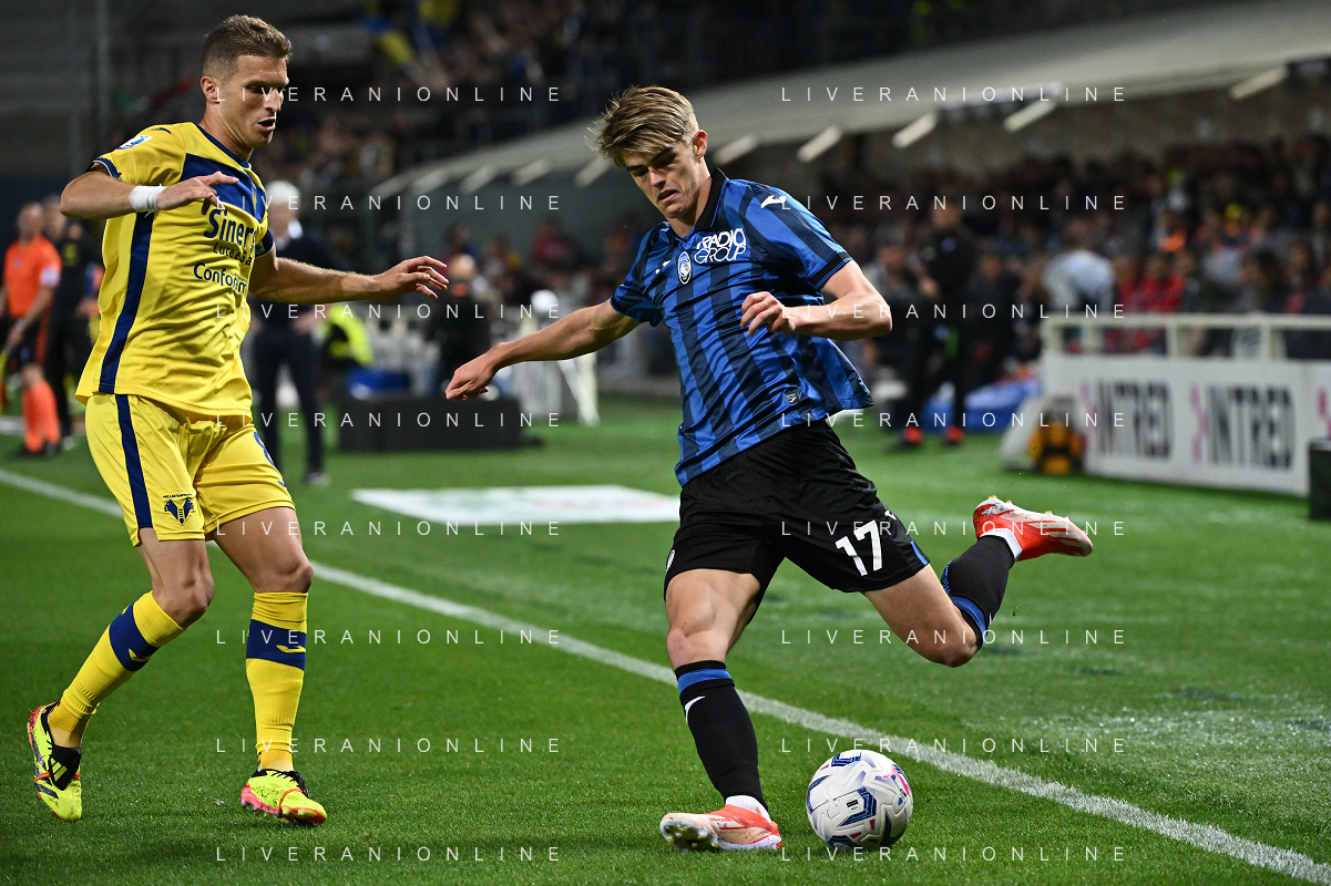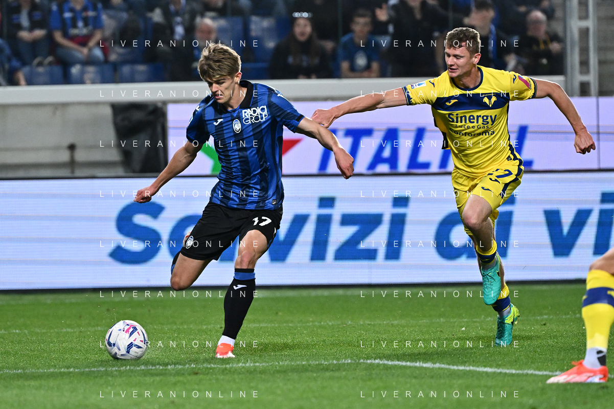TVRG Atalanta vs Hellas Verona nella foto Charles de Ketelaere (Atalanta) e Pawel Dawidowicz (Hellas Verona) Bergamo 15-04-2024 Gewiss Stadium Campionato Serie A TIM - 32a giornata foto Roberto Garavaglia/Agenzia Aldo Liverani sas/ AGENZIA ALDO LIVERANI SAS