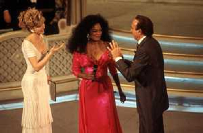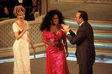 DIAP-RETROSPETTIVA DIANA ROSS CANTANTE NELLA FOTO DIANA ROSS CON PIPPO BAUDO E LORELLA CUCCARINI OSPITE AL FESTIVAL DI SANREMO NELL'ANNO 1993 AG ALDO LIVERANI SAS