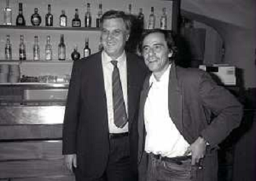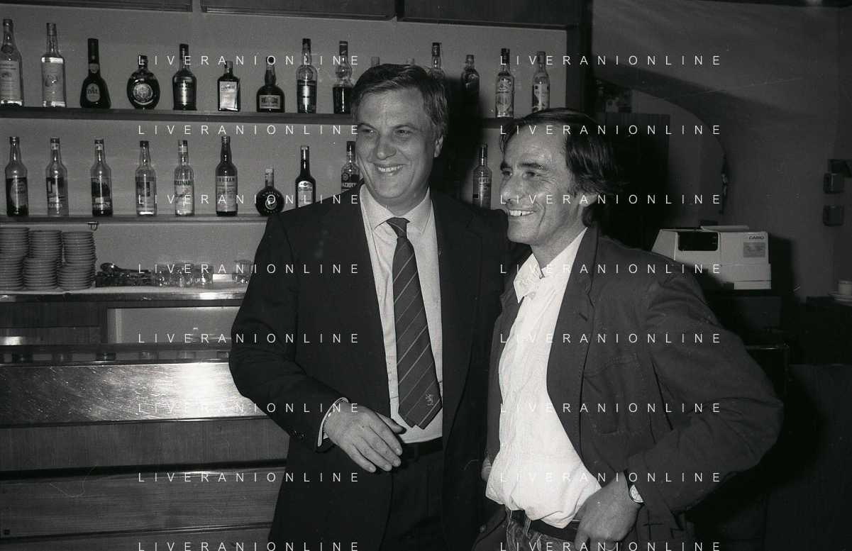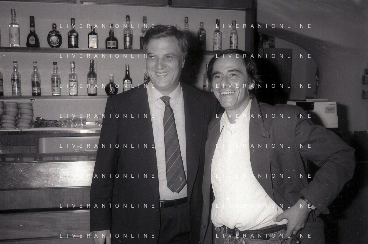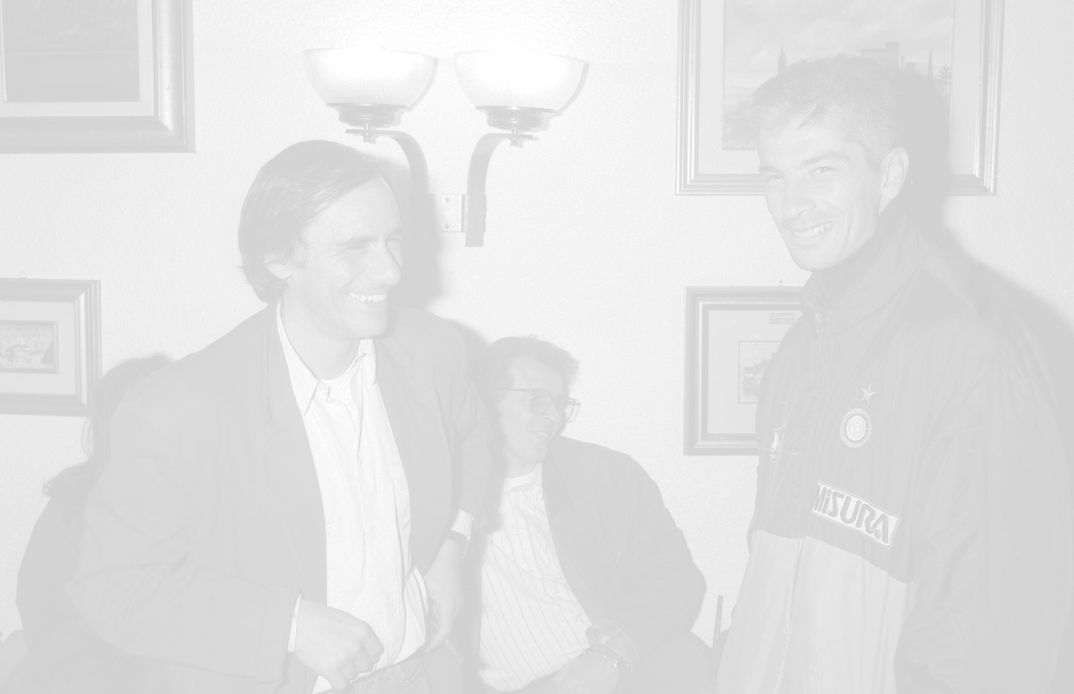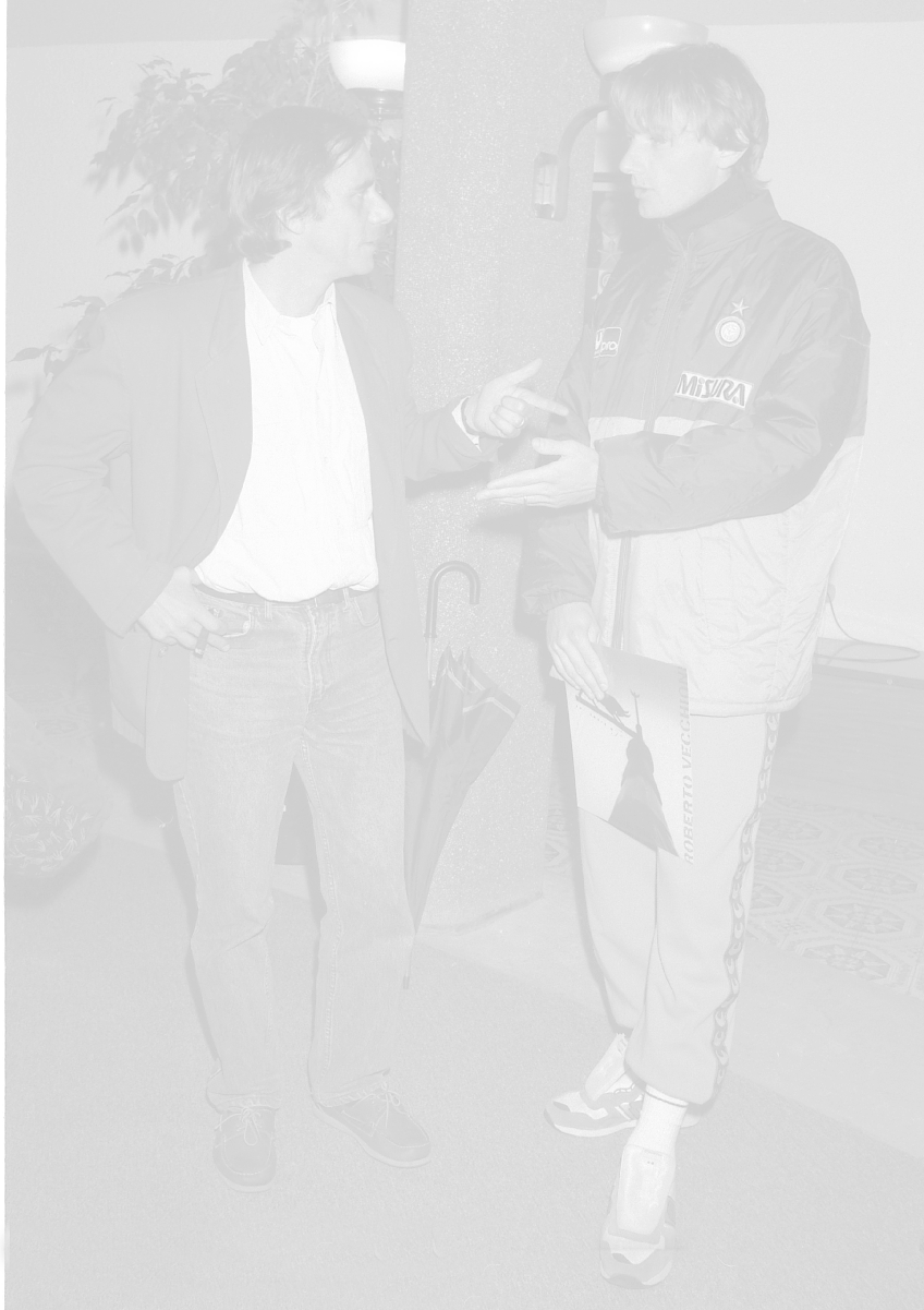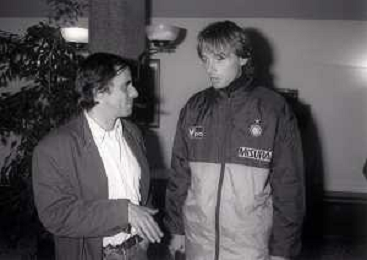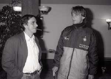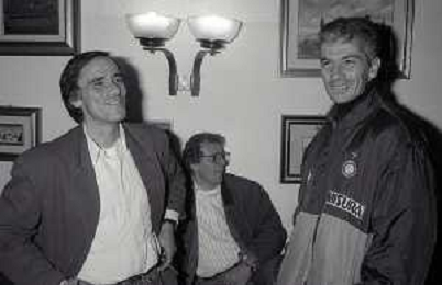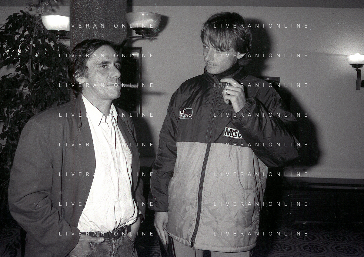 NEG-RETROSPETTIVA ROBERTO VECCHIONI CANTANTE NELLA FOTO ROBERTO VECCHIONI CON RICCARDO FERRI NELL'ANNO 1990-1991 AD APPIANO GENTILE IN VISITA AL RITIRO INTER AG ALDO LIVERANI SAS