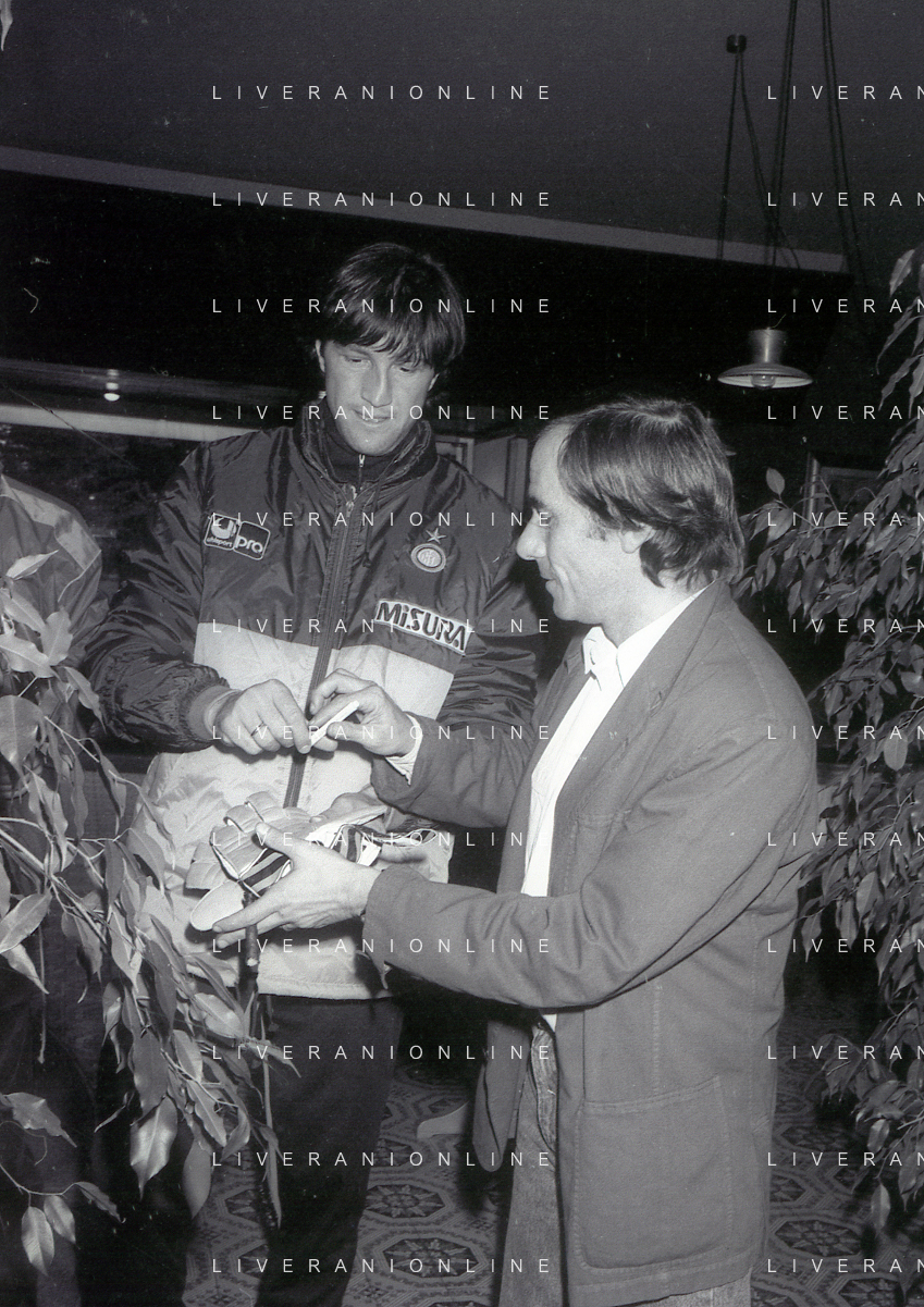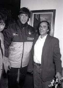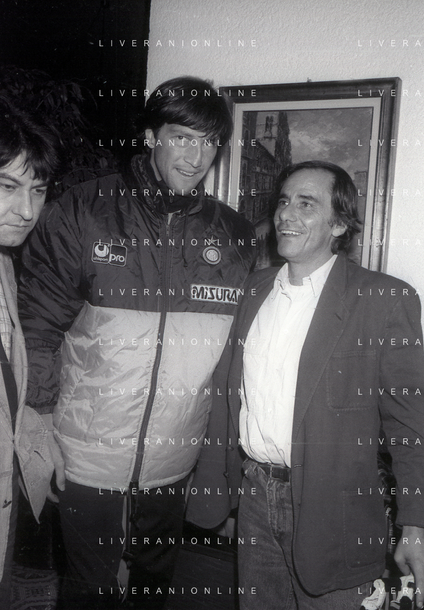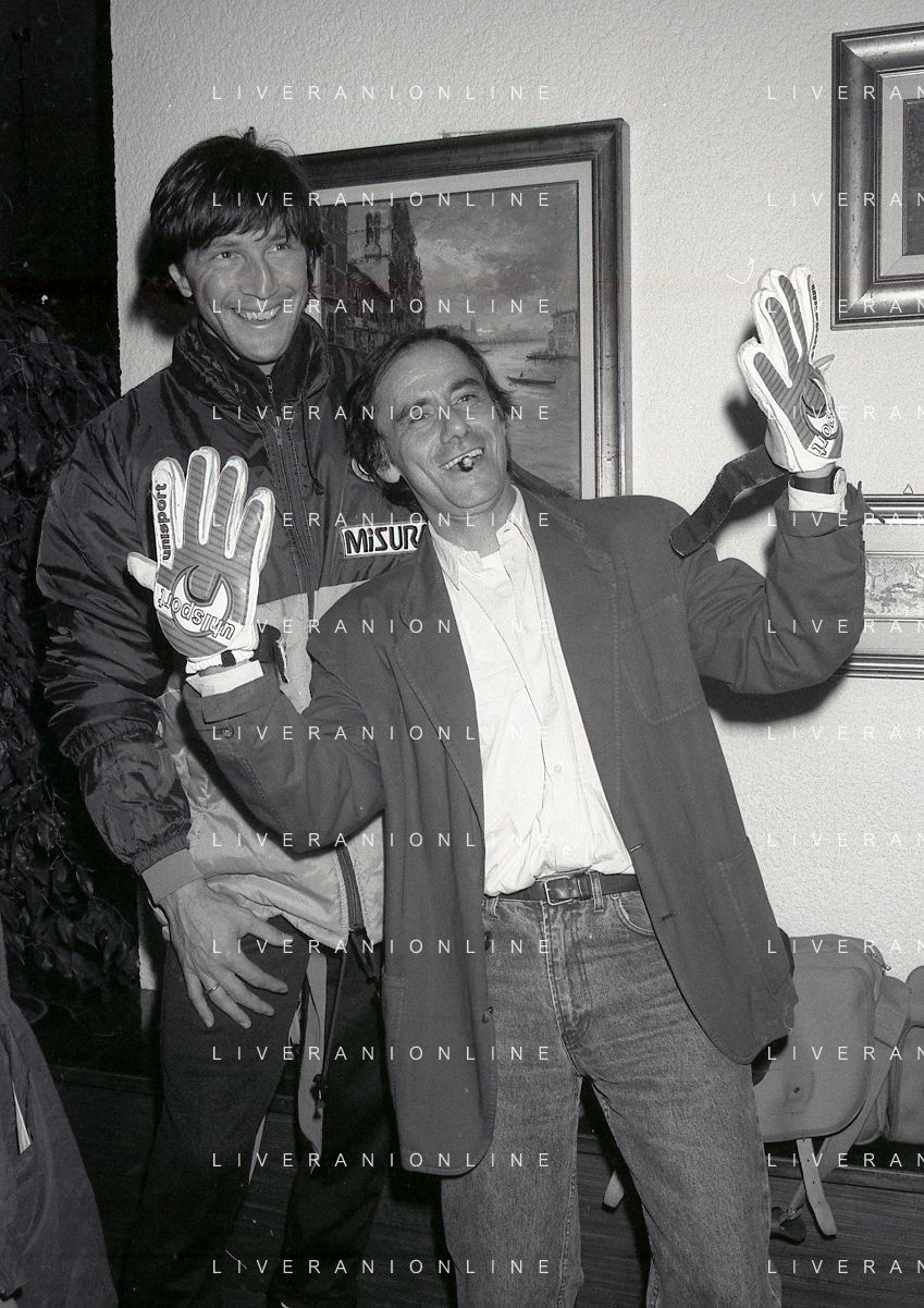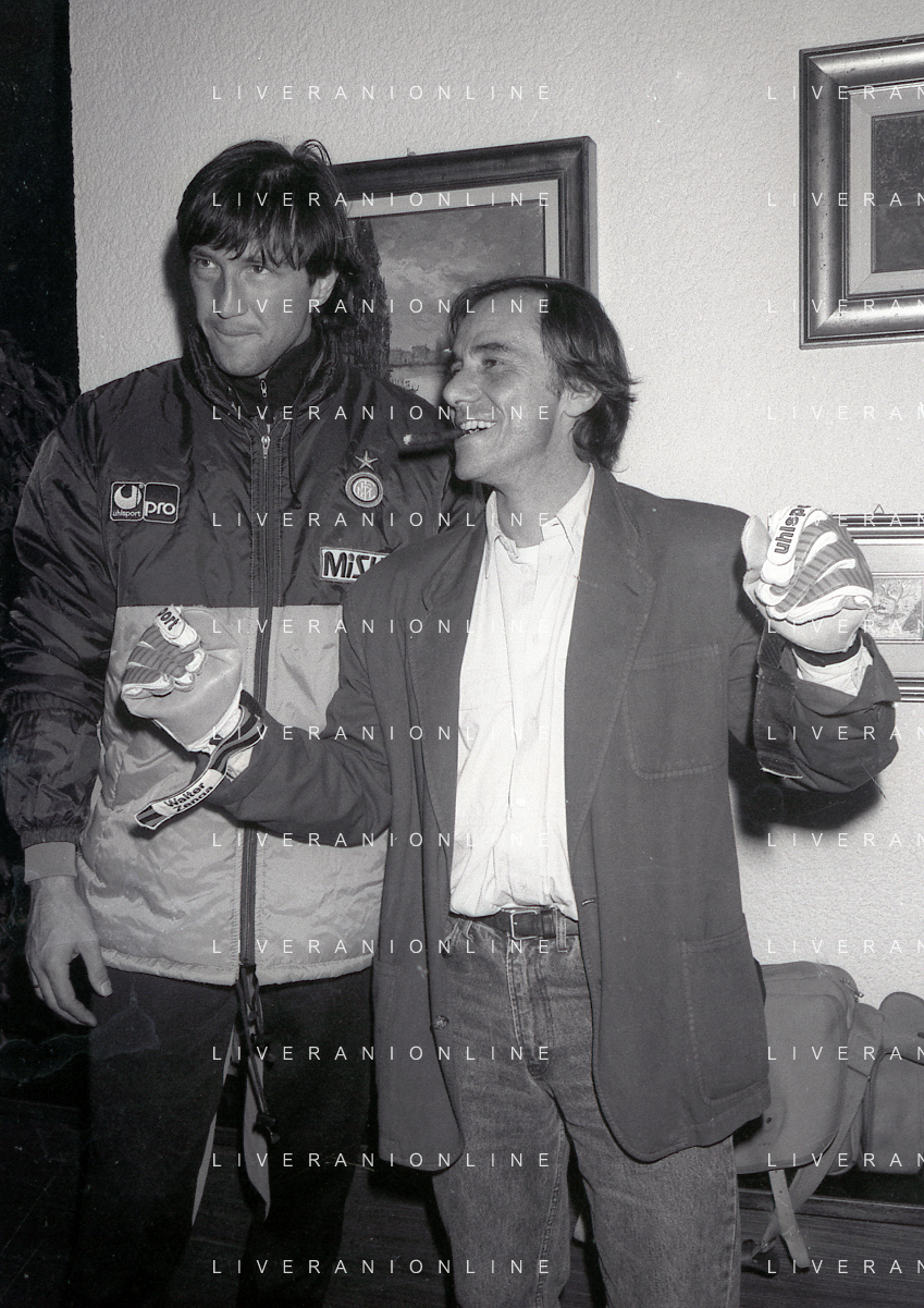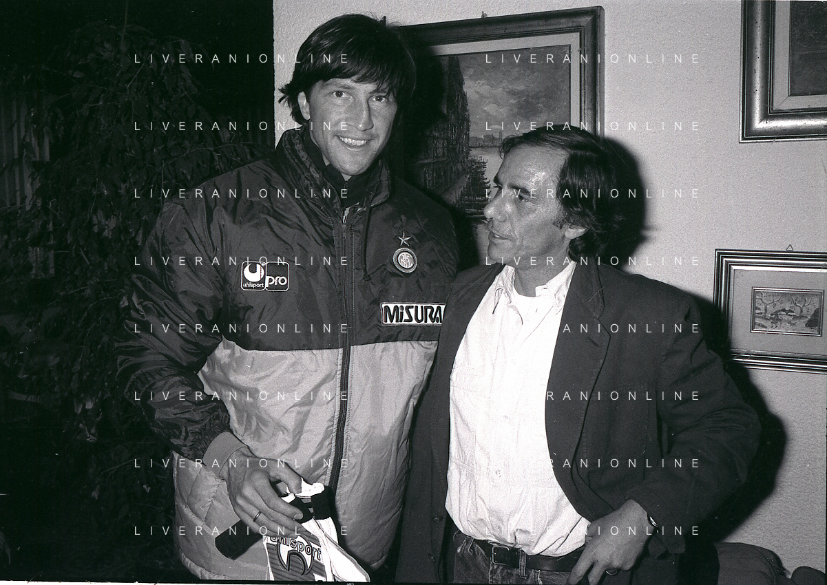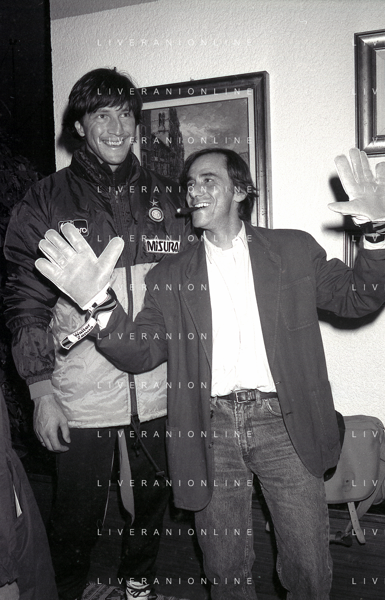 NEG-RETROSPETTIVA ROBERTO VECCHIONI CANTANTE NELLA FOTO ROBERTO VECCHIONI CON WALTER ZENGA NELL'ANNO 1990-1991 AD APPIANO GENTILE IN VISITA AL RITIRO INTER AG ALDO LIVERANI SAS