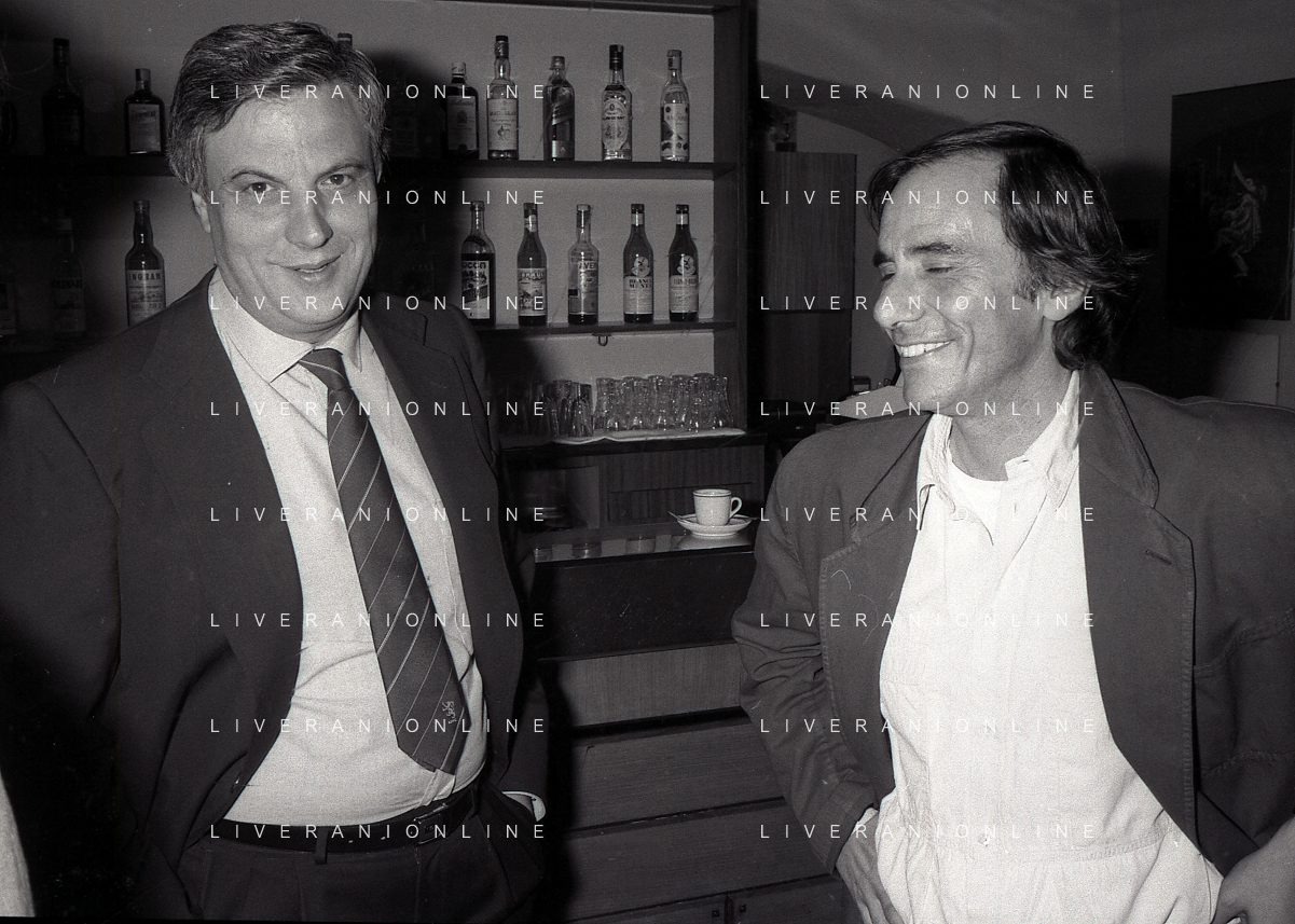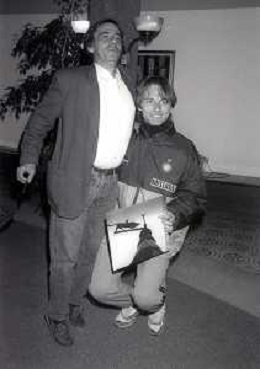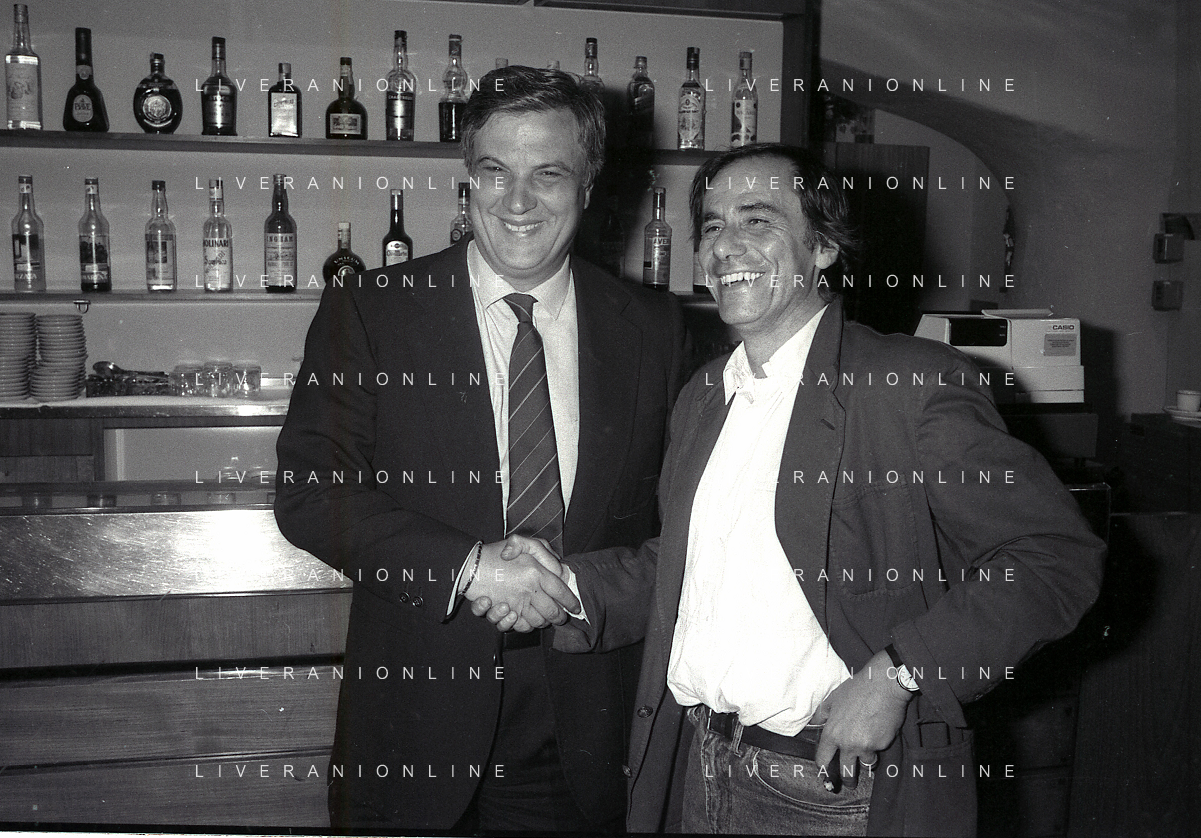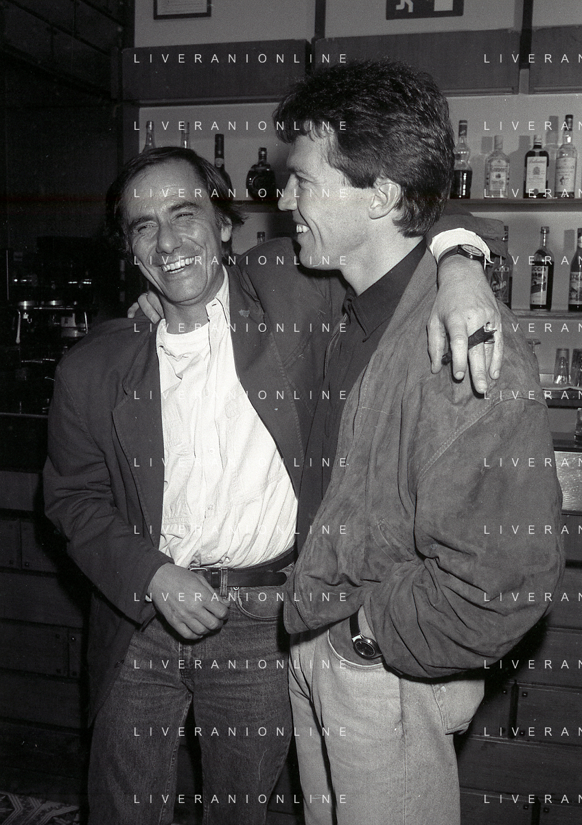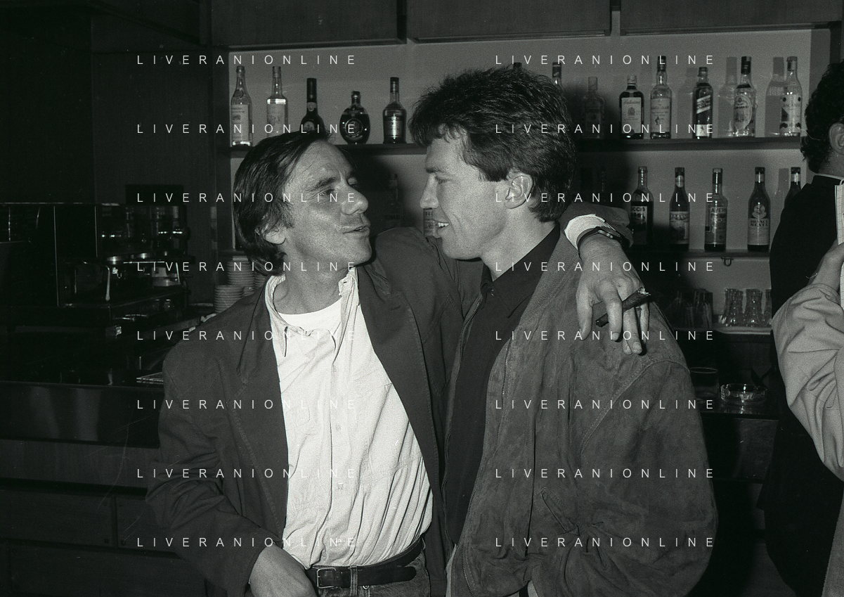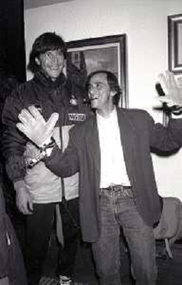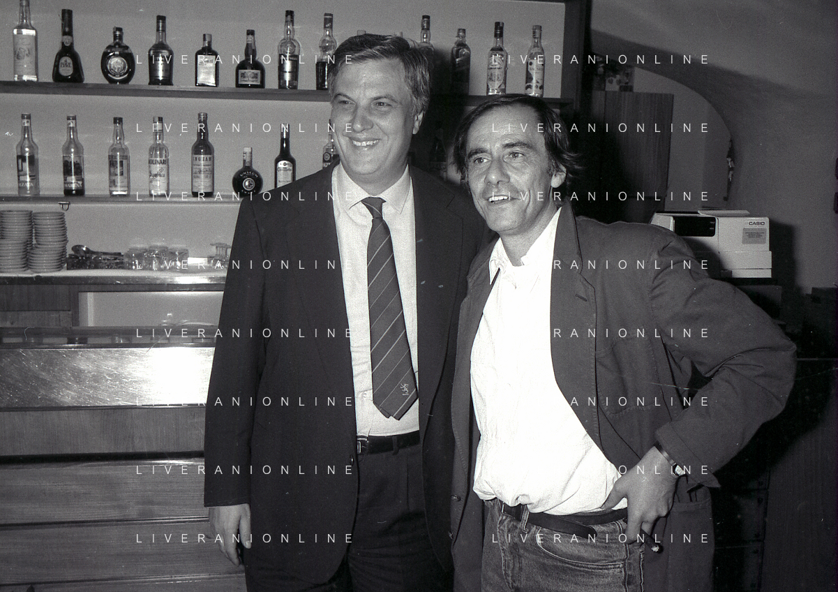 NEG-RETROSPETTIVA ROBERTO VECCHIONI CANTANTE NELLA FOTO ROBERTO VECCHIONI CON WALTER ZENGA NELL'ANNO 1990-1991 AD APPIANO GENTILE IN VISITA AL RITIRO INTER AG ALDO LIVERANI SAS