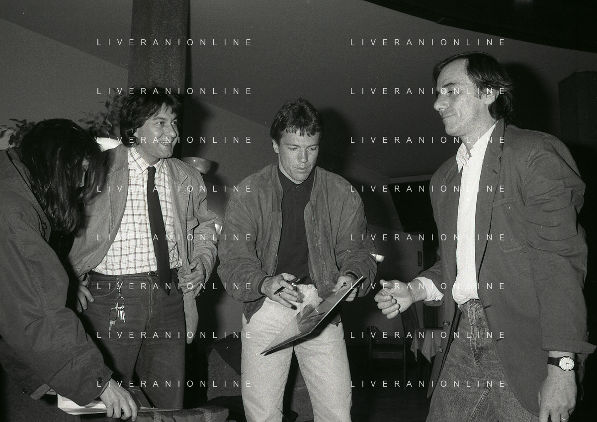 NEG-RETROSPETTIVA ROBERTO VECCHIONI CANTANTE NELLA FOTO ROBERTO VECCHIONI NELL'ANNO 1990-1991 AD APPIANO GENTILE IN VISITA AL RITIRO INTER AG ALDO LIVERANI SAS