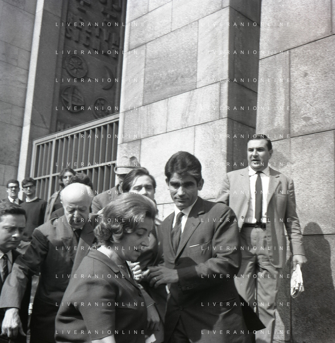 NEG-RETROSPETTIVA CORRADO PANI ATTORE NELLA FOTO CORRADO PANI NELL'ANNO 1963 ESCE DAL TRIBUNALE DI MILANO PER LA SEPARAZIONE DALLA MOGLIE RENATA MONTEDURO AG ALDO LIVERANI SAS