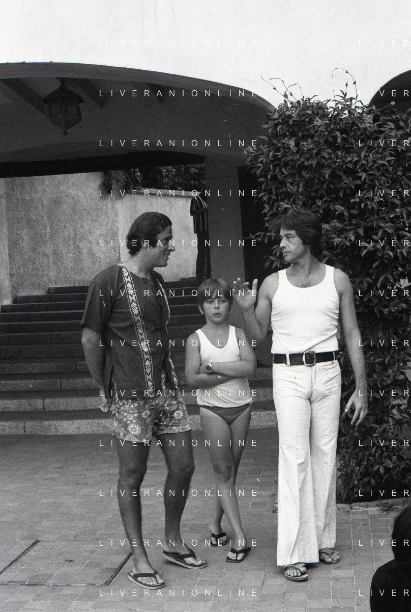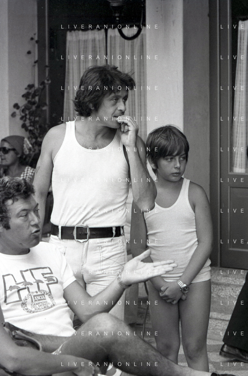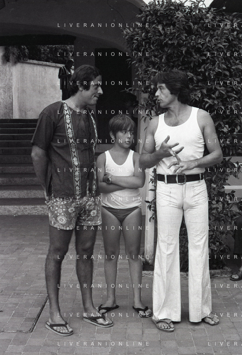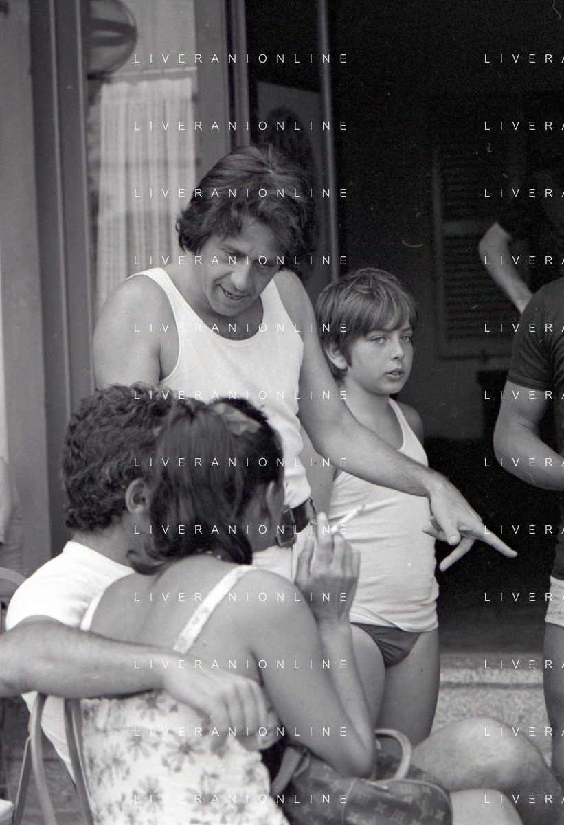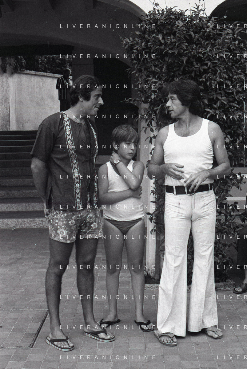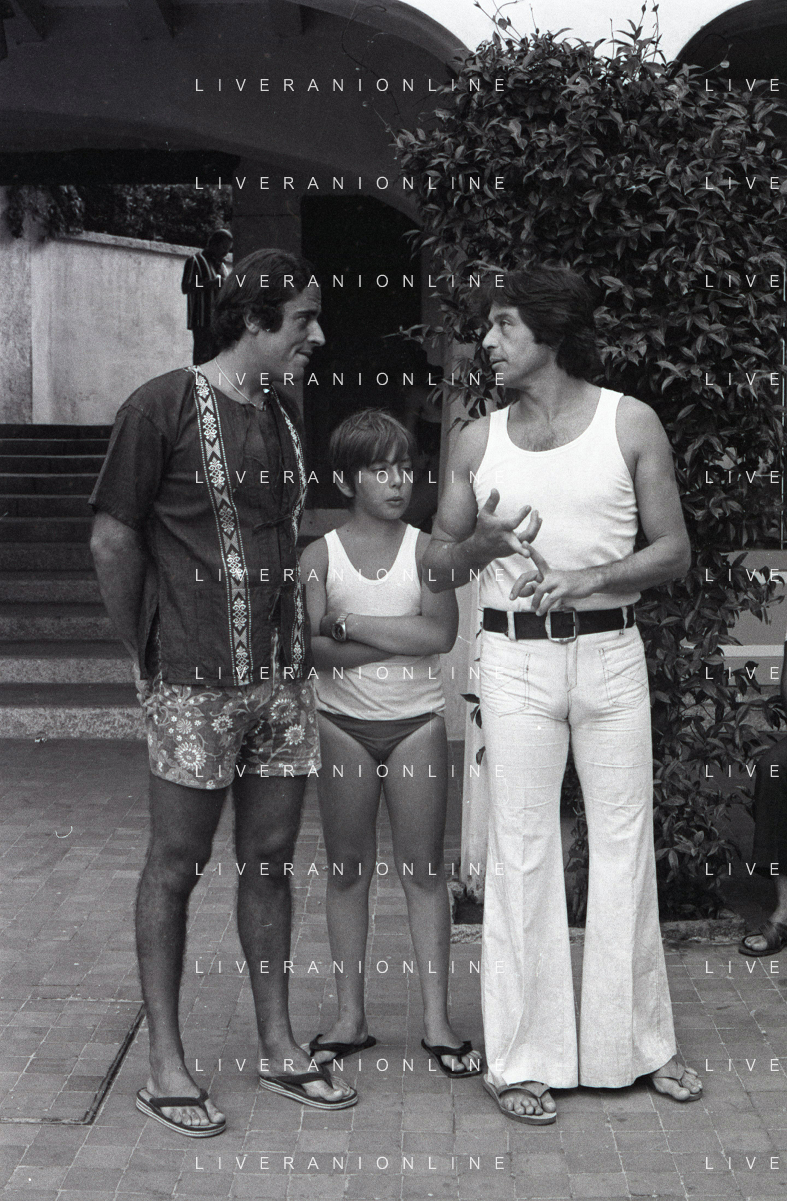 NEG-RETROSPETTIVA CORRADO PANI ATTORE NELLA FOTO CORRADO PANI CON IL FIGLIO MASSIMILIANO E LUCIANO SALCE IN SARDEGNA NELL'ANNO 1973 AG ALDO LIVERANI SAS