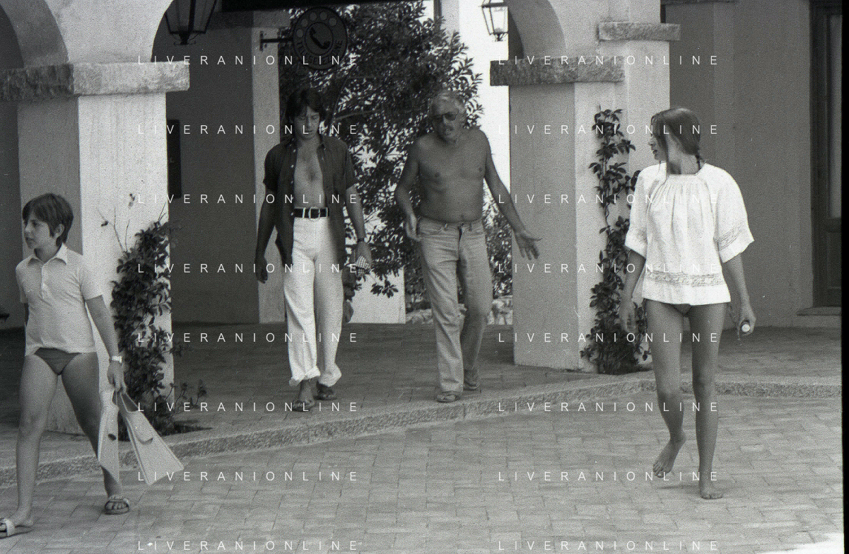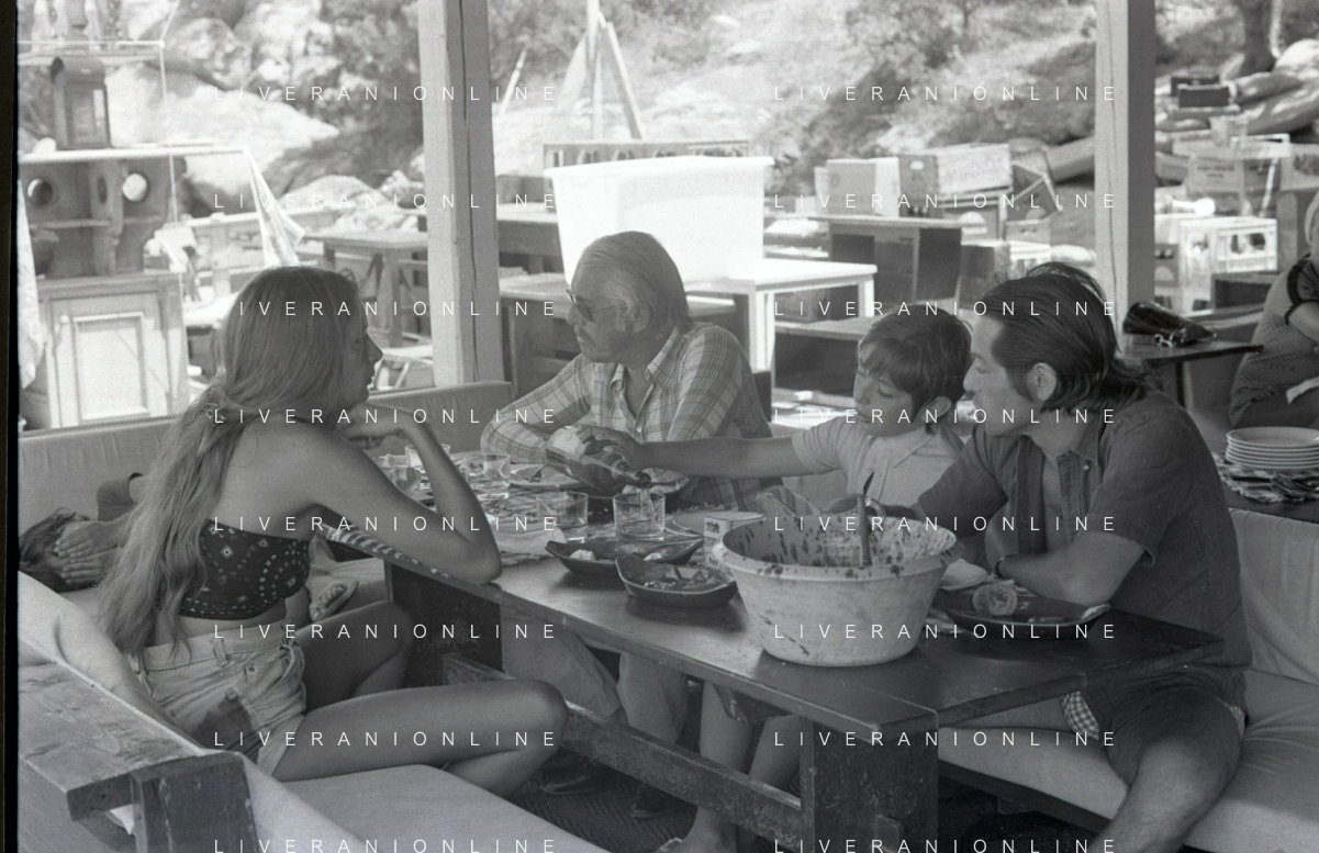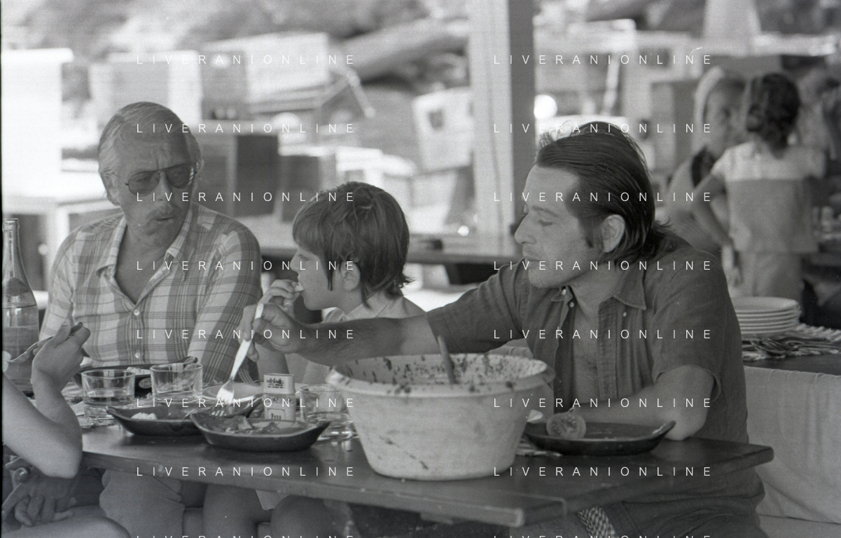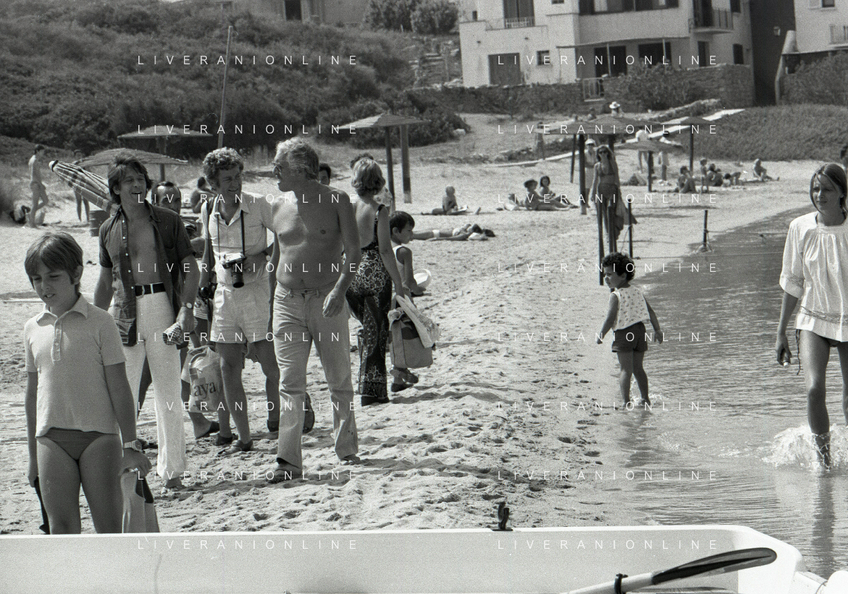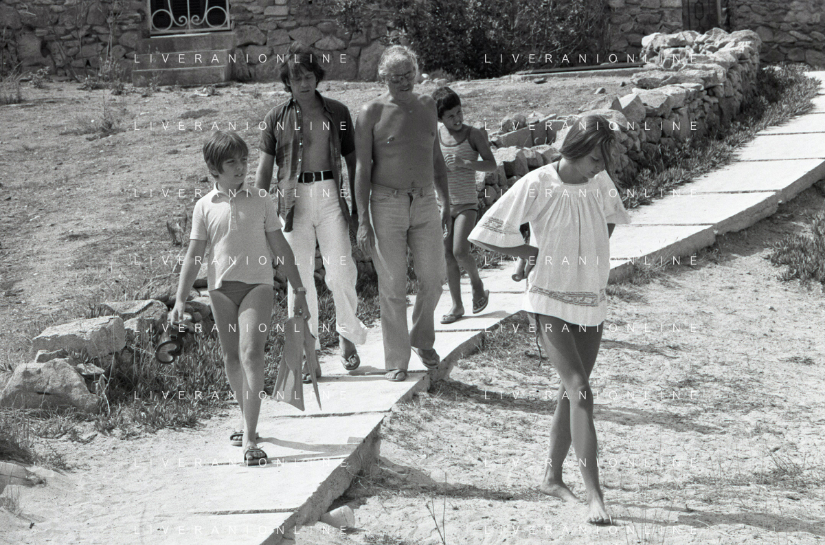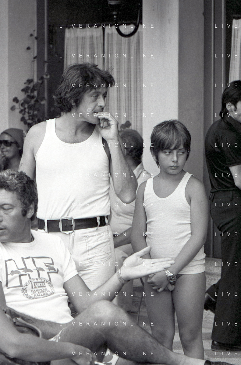NEG-RETROSPETTIVA CORRADO PANI ATTORE NELLA FOTO CORRADO PANI CON IL FIGLIO MASSIMILIANO E LUCIANO SALCE IN SARDEGNA NELL'ANNO 1973 AG ALDO LIVERANI SAS
