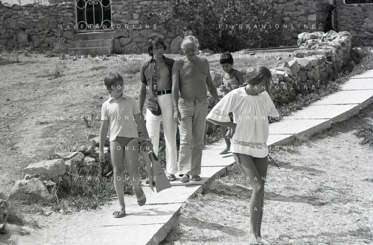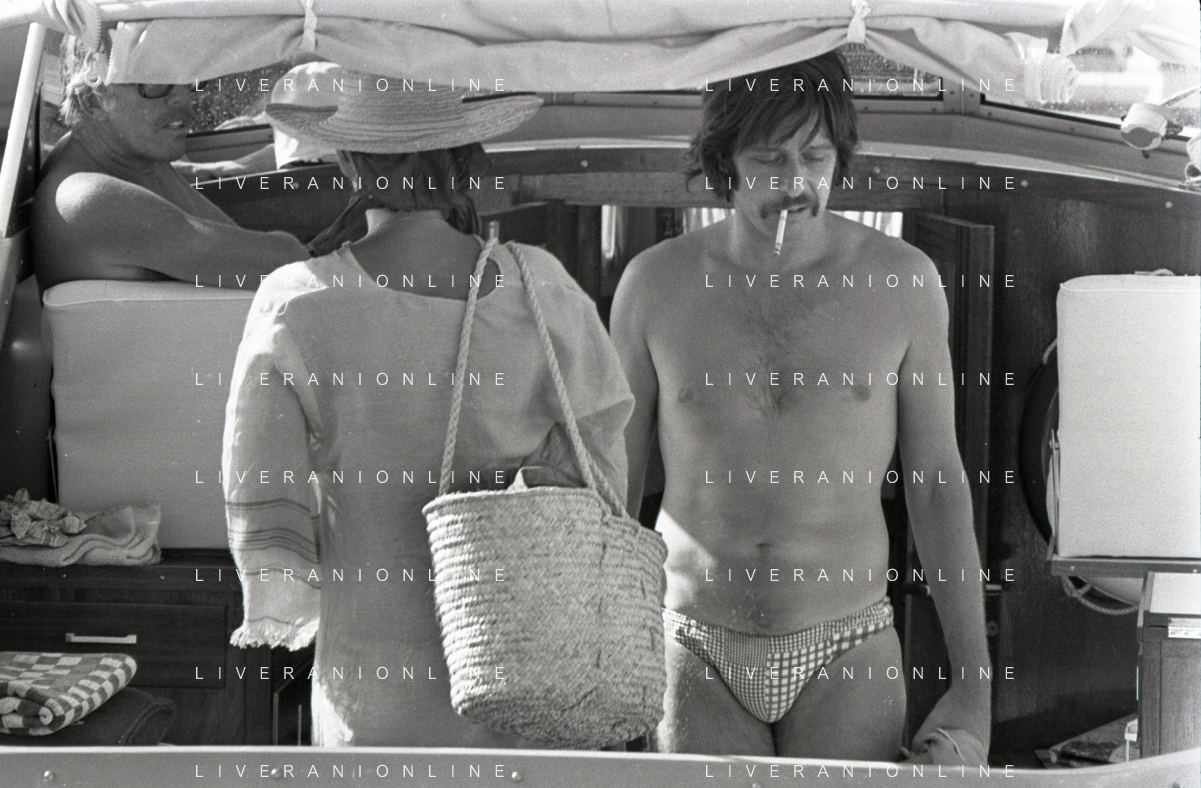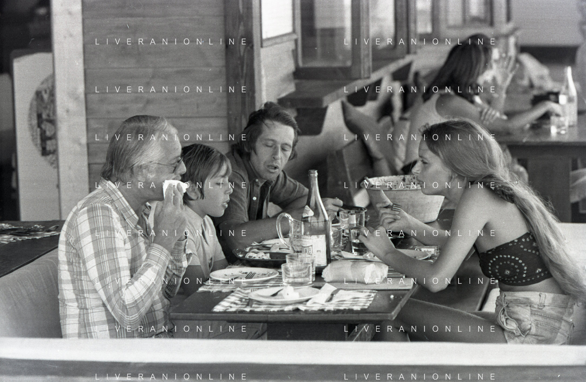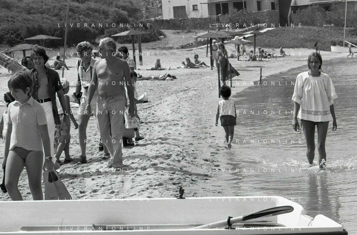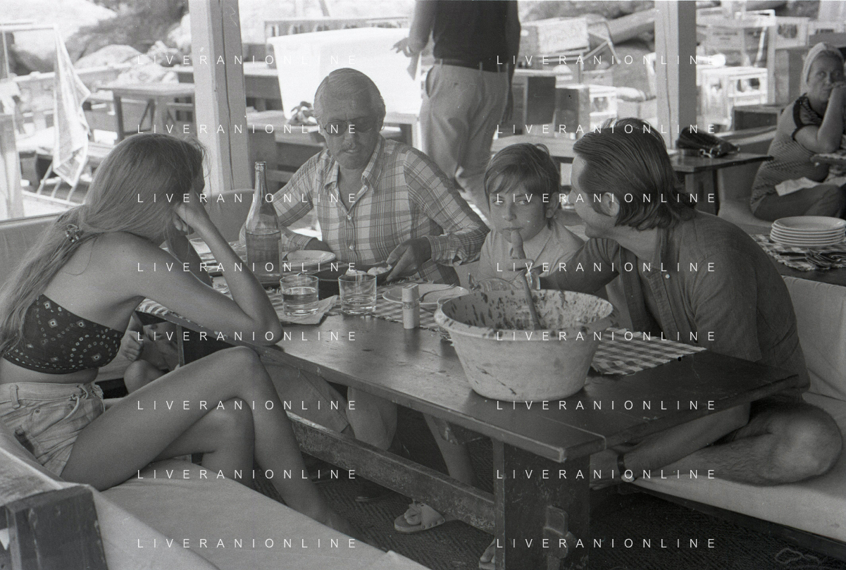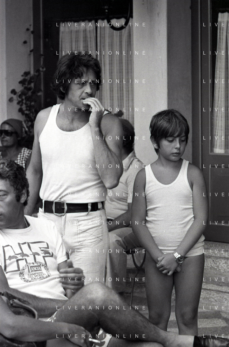 NEG-RETROSPETTIVA CORRADO PANI ATTORE NELLA FOTO CORRADO PANI CON IL FIGLIO MASSIMILIANO E LUCIANO SALCE IN SARDEGNA NELL'ANNO 1973 AG ALDO LIVERANI SAS