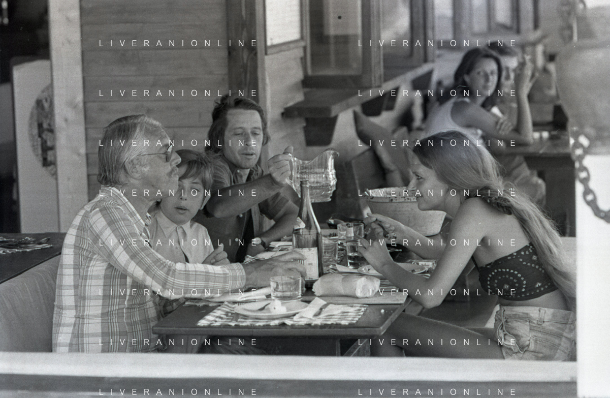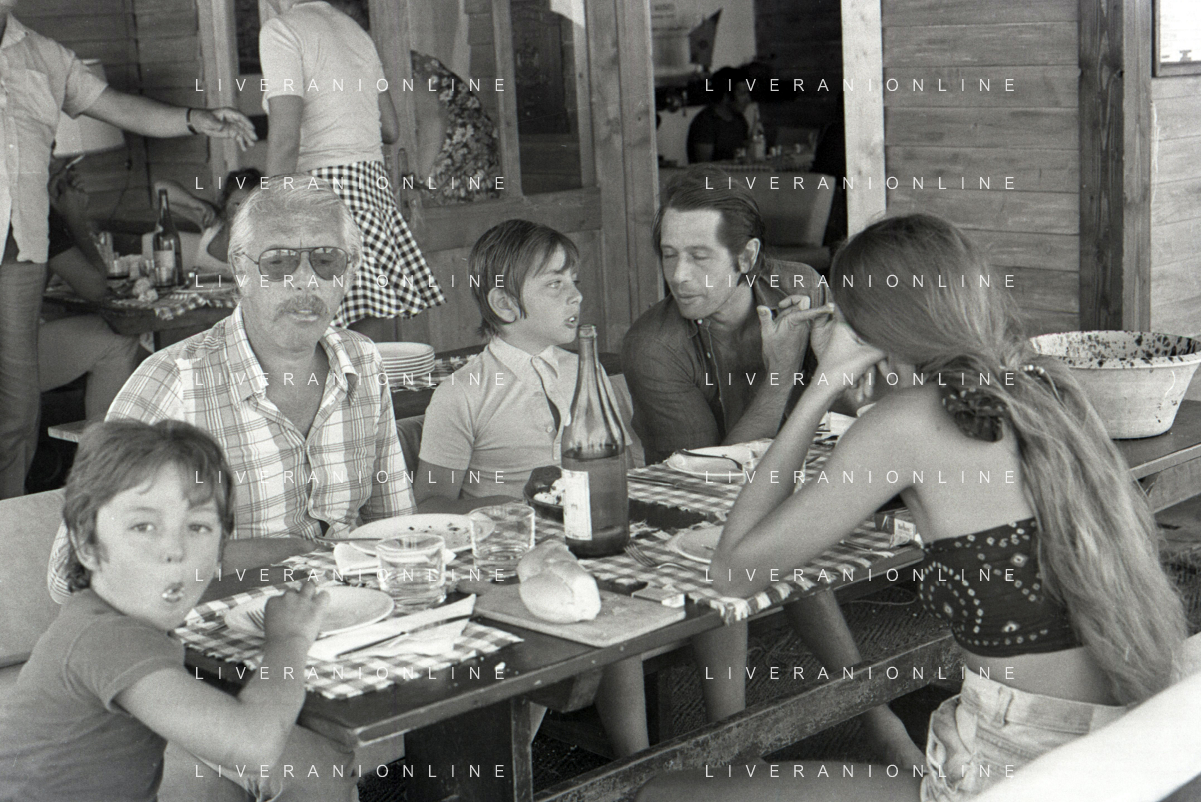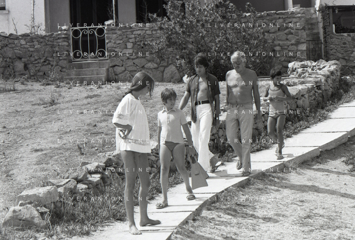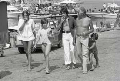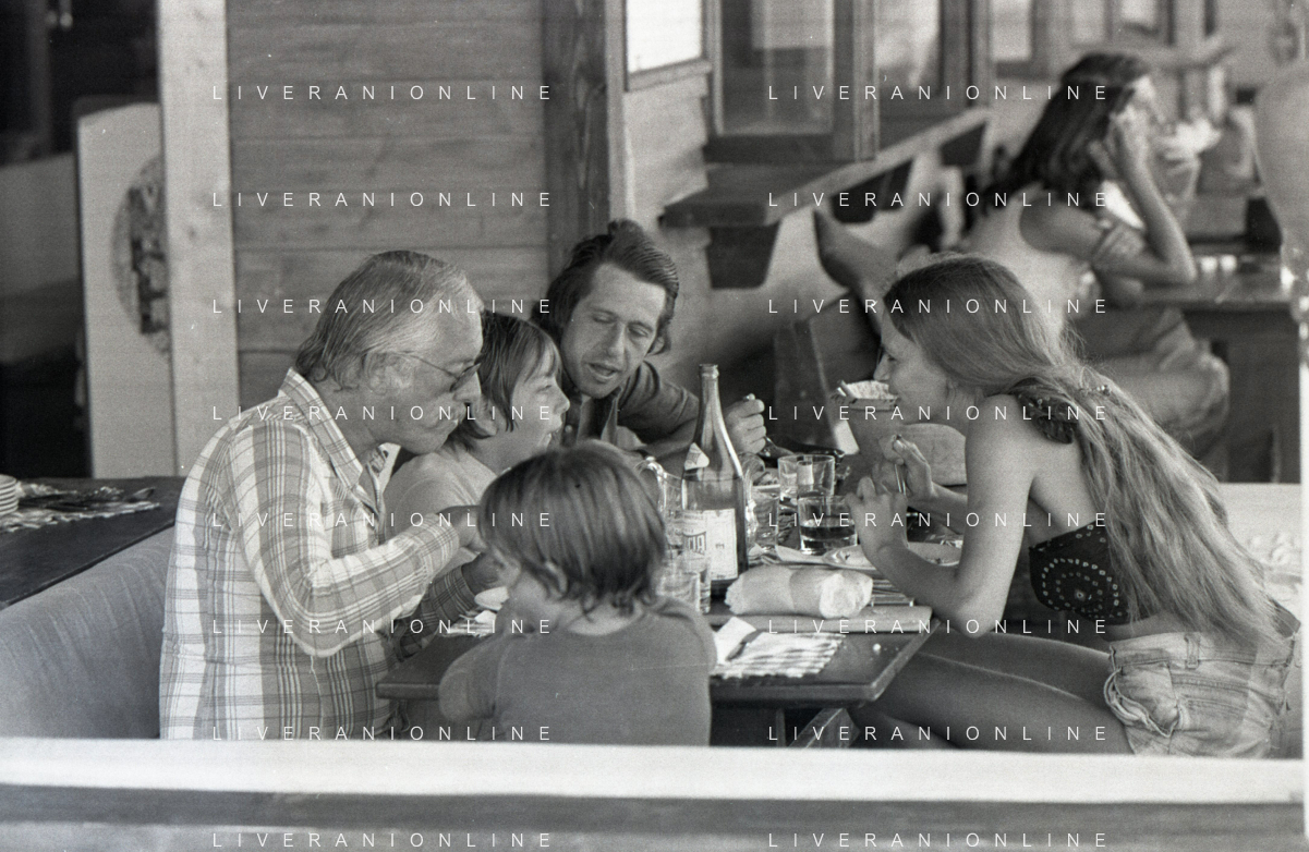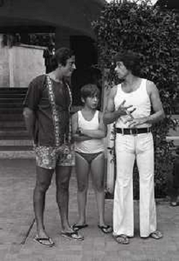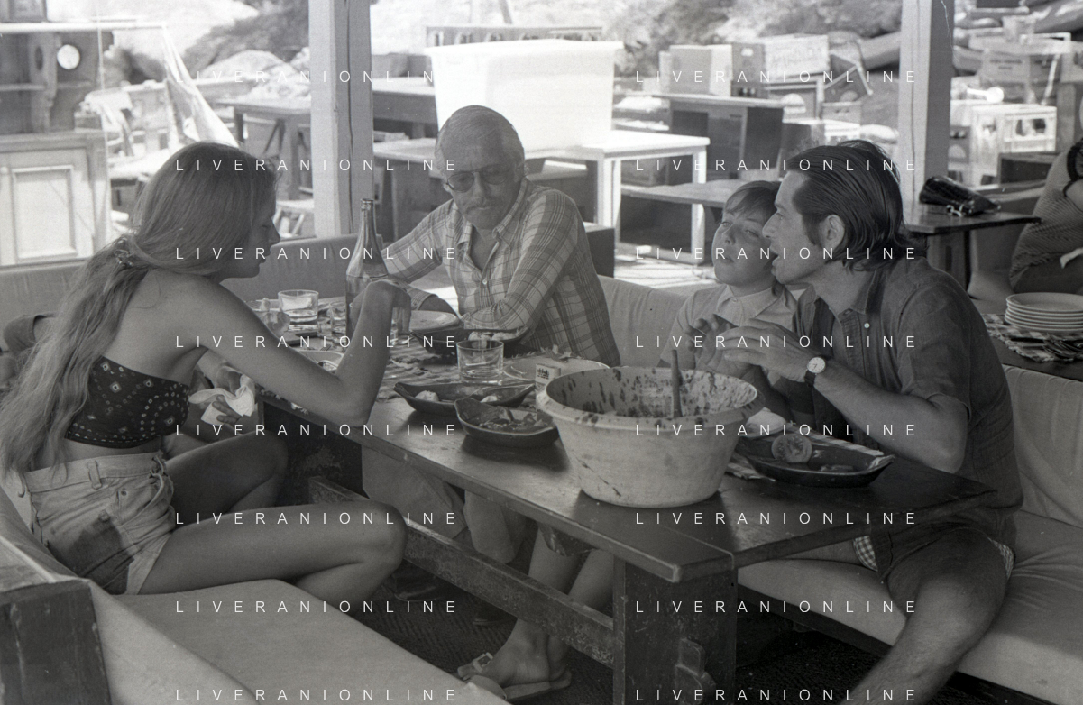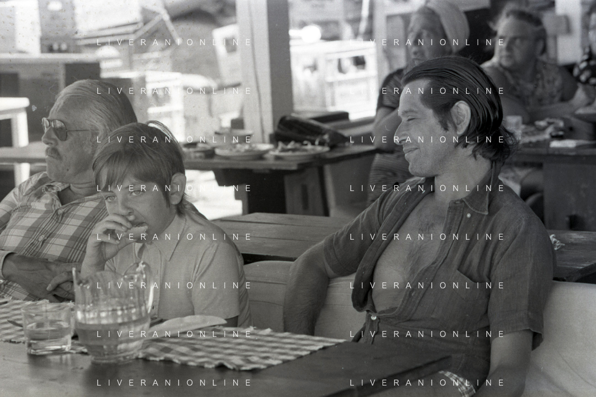 NEG-RETROSPETTIVA CORRADO PANI ATTORE NELLA FOTO CORRADO PANI CON IL FIGLIO MASSIMILIANO E LUCIANO SALCE IN SARDEGNA NELL'ANNO 1973 AG ALDO LIVERANI SAS