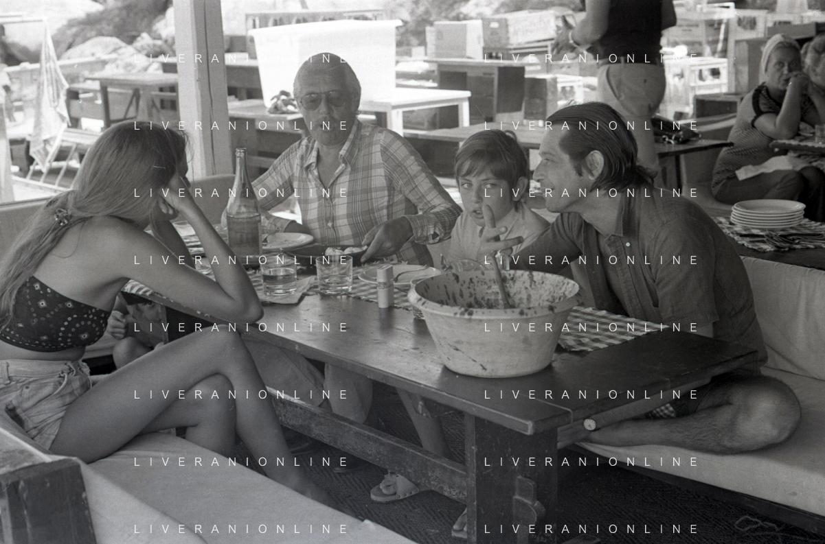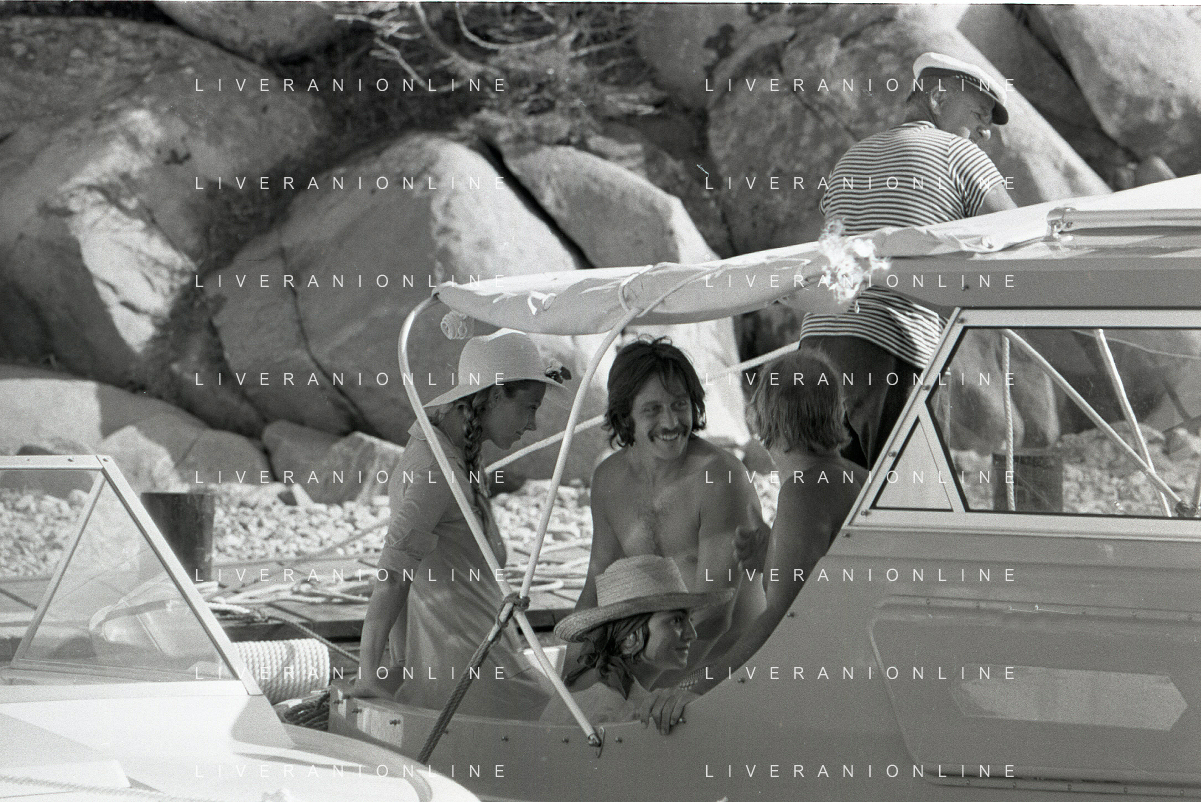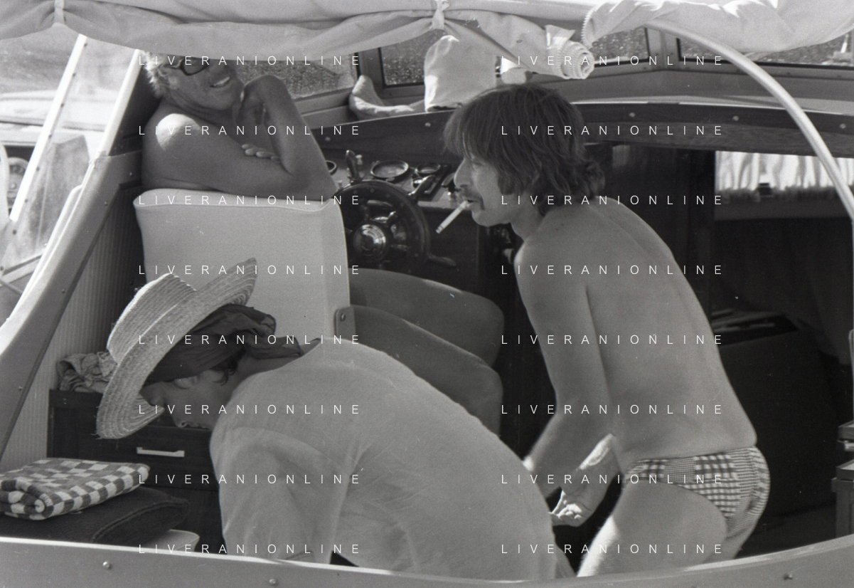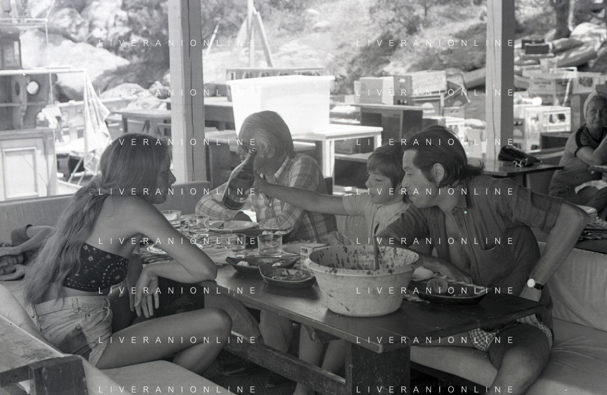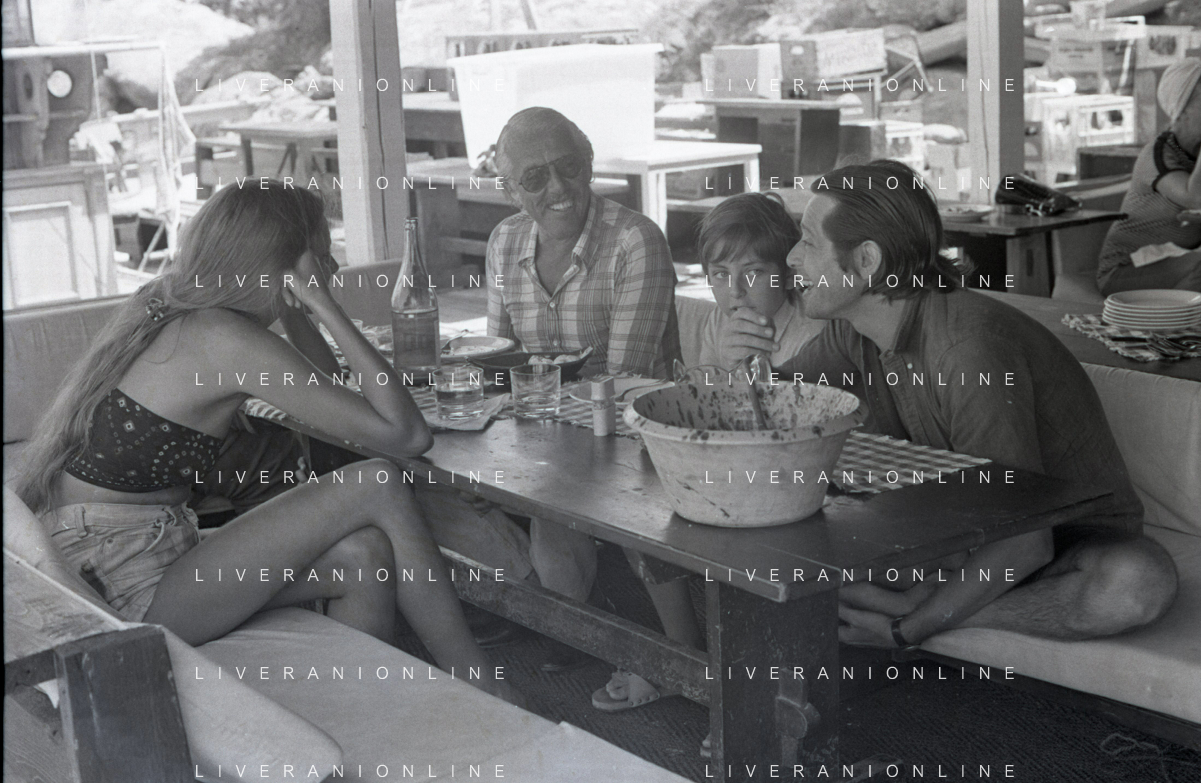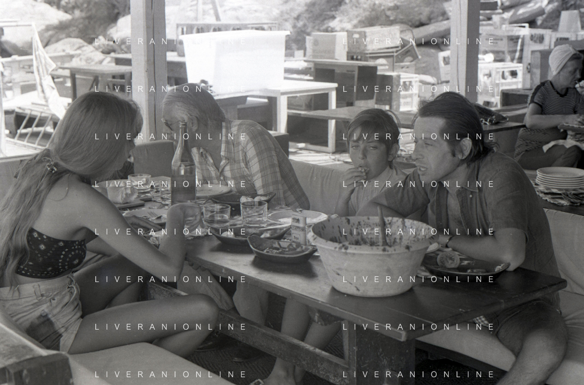 NEG-RETROSPETTIVA CORRADO PANI ATTORE NELLA FOTO CORRADO PANI CON IL FIGLIO MASSIMILIANO E LUCIANO SALCE IN SARDEGNA NELL'ANNO 1973 AG ALDO LIVERANI SAS