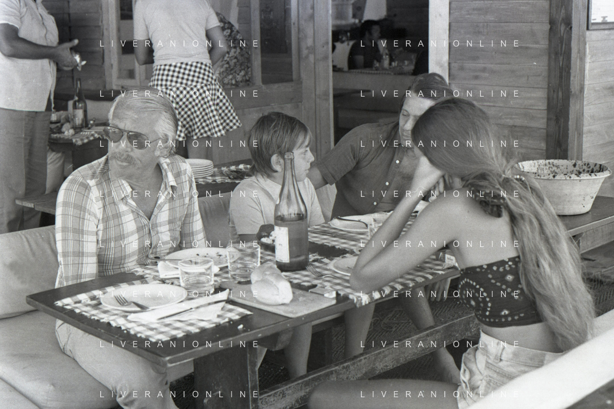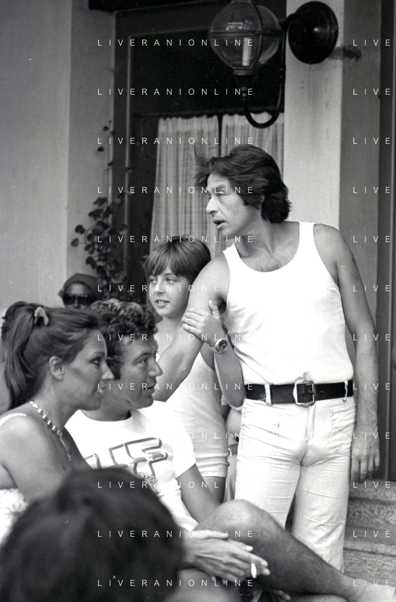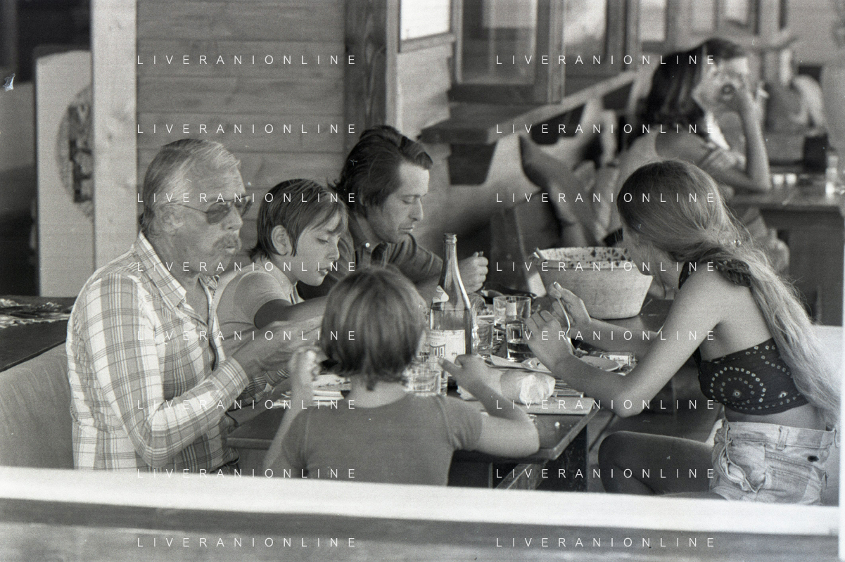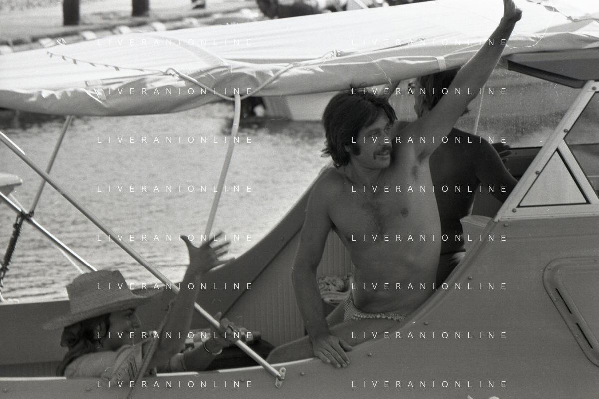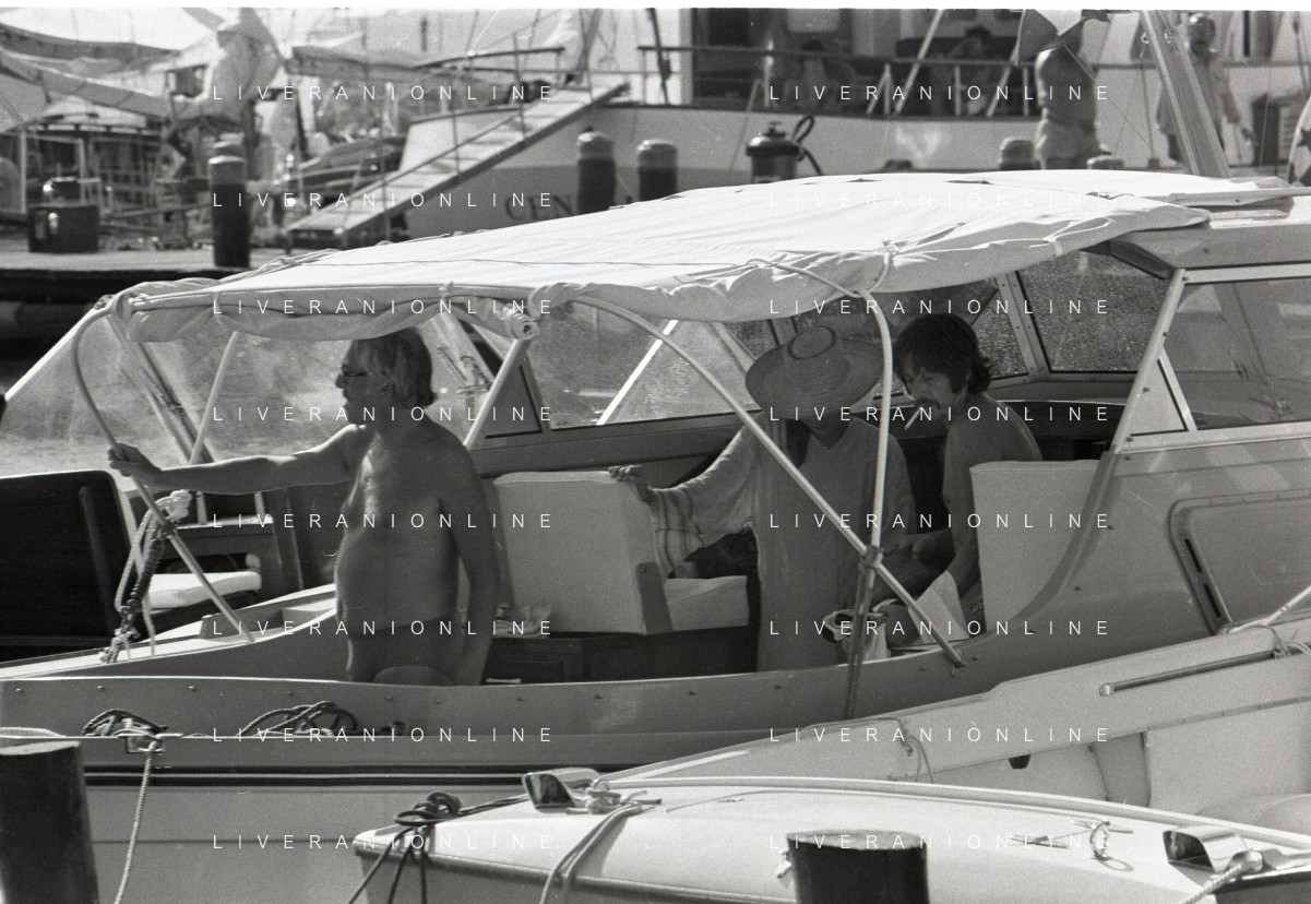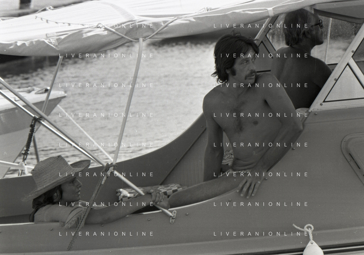 NEG-RETROSPETTIVA CORRADO PANI ATTORE NELLA FOTO CORRADO PANI CON IL FIGLIO MASSIMILIANO E LUCIANO SALCE IN SARDEGNA NELL'ANNO 1973 AG ALDO LIVERANI SAS