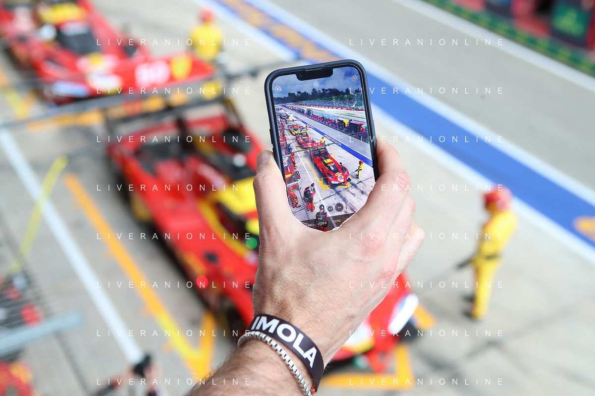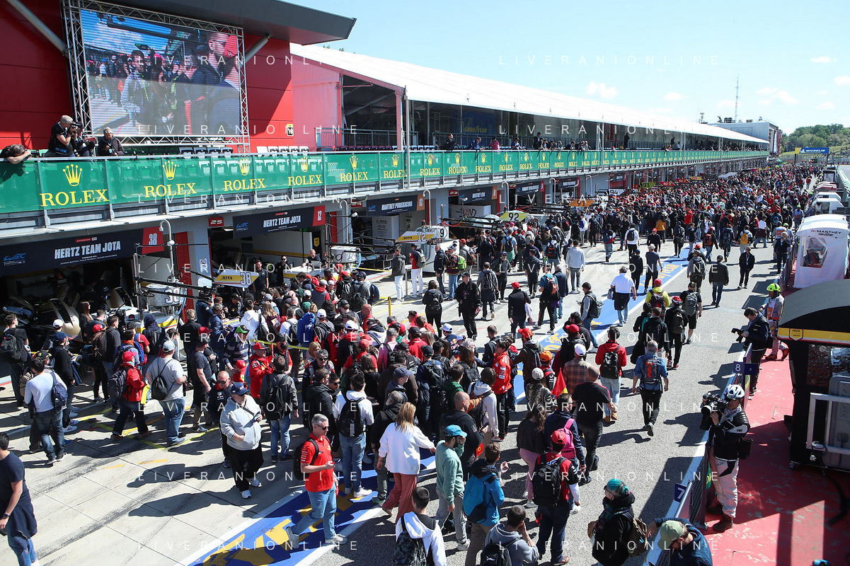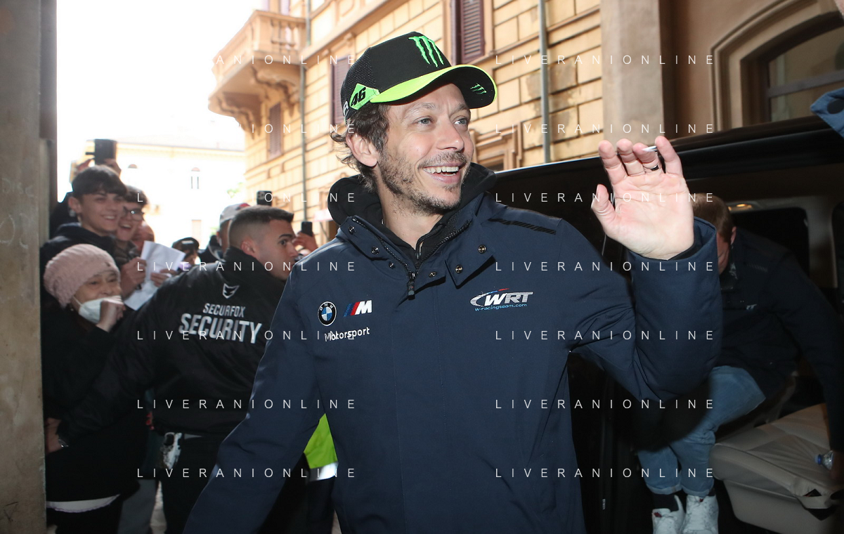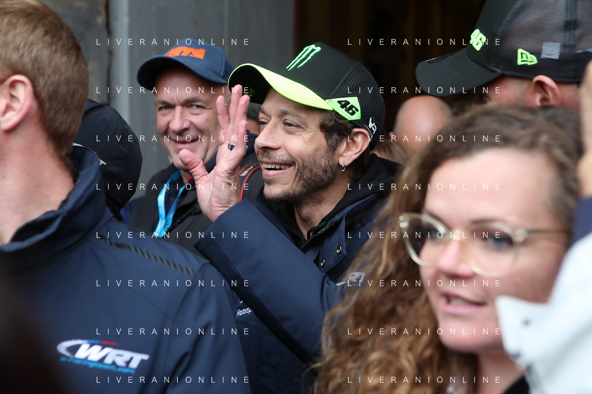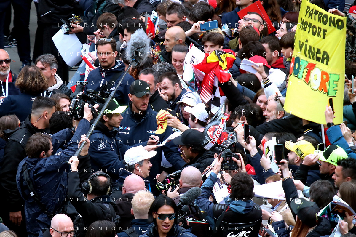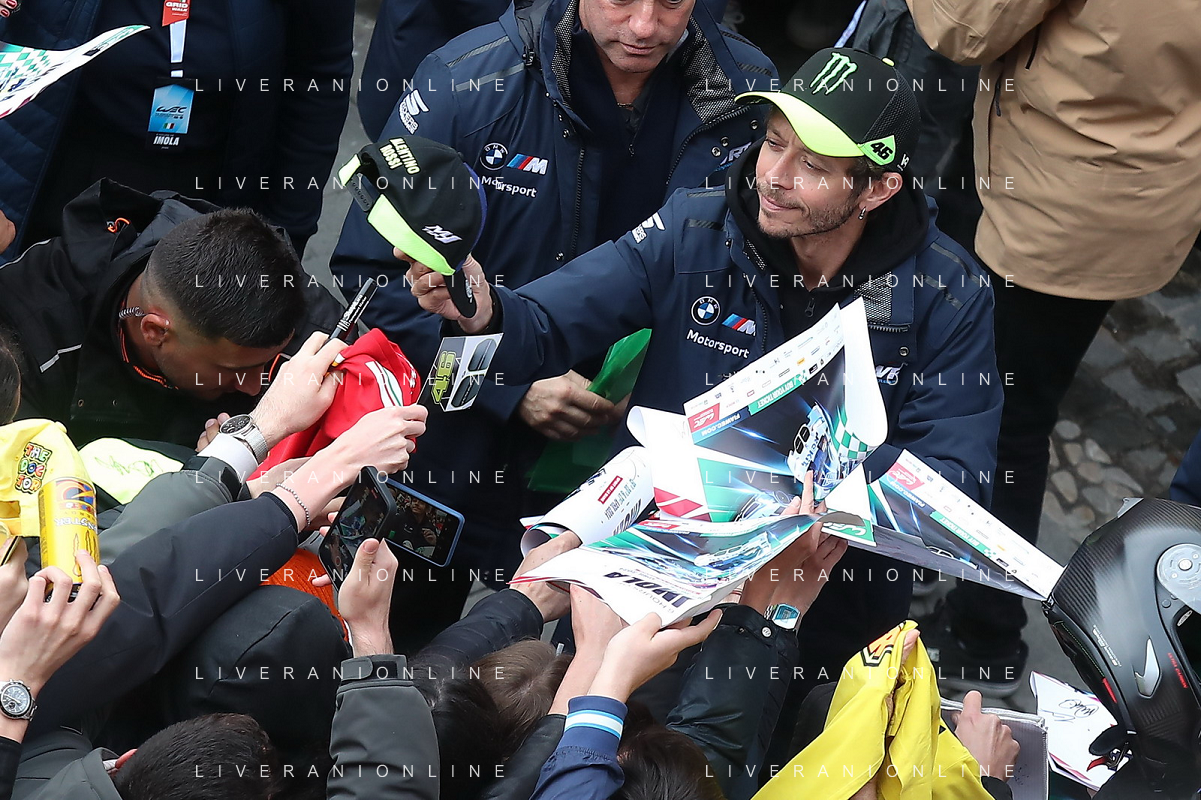 IMOLA 18 04 2024 WEC 6 ORE DI IMOLA PILOTI IN PIAZZA MATTEOTI CON I TIFOSI NELLA FOTO VALENTINO ROSSI BMW M4 LMGT3 FOTO GIANNI SANNA-AG ALDO LIVERANI SAS