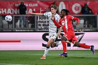 TVRG Monza vs Atalanta nella foto Charles de Ketelaere (Atalanta) segna il gol dell'1 a 0 Monza 21-04-2024 U-Power Stadium Campionato Serie A TIM - 33a giornata foto Roberto Garavaglia/Agenzia Aldo Liverani sas/ AGENZIA ALDO LIVERANI SAS