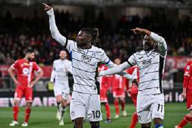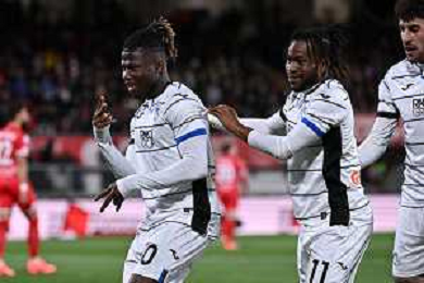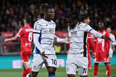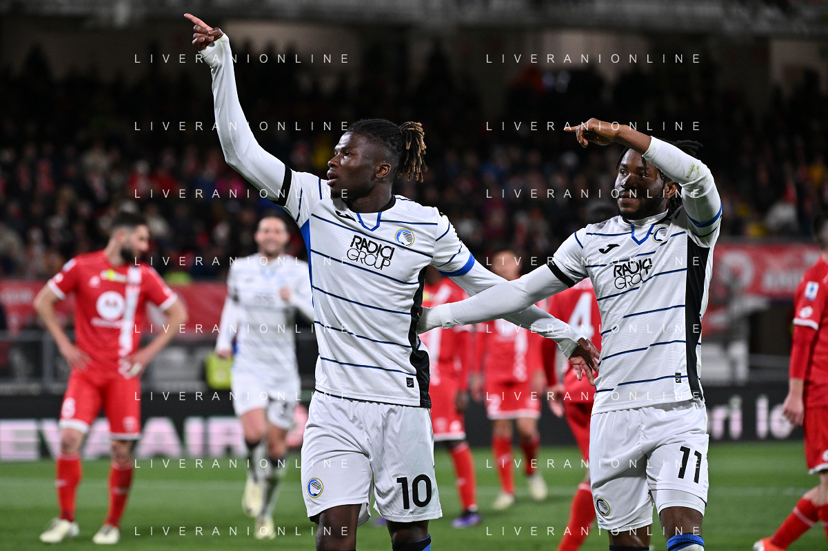 TVRG Monza vs Atalanta nella foto El Bilal Toure' (Atalanta) e Ademola Lookman (Atalanta) esultano dopo il gol del 2 a 0 Monza 21-04-2024 U-Power Stadium Campionato Serie A TIM - 33a giornata foto Roberto Garavaglia/Agenzia Aldo Liverani sas/ AGENZIA ALDO LIVERANI SAS