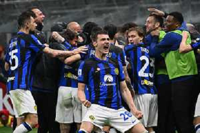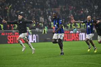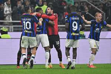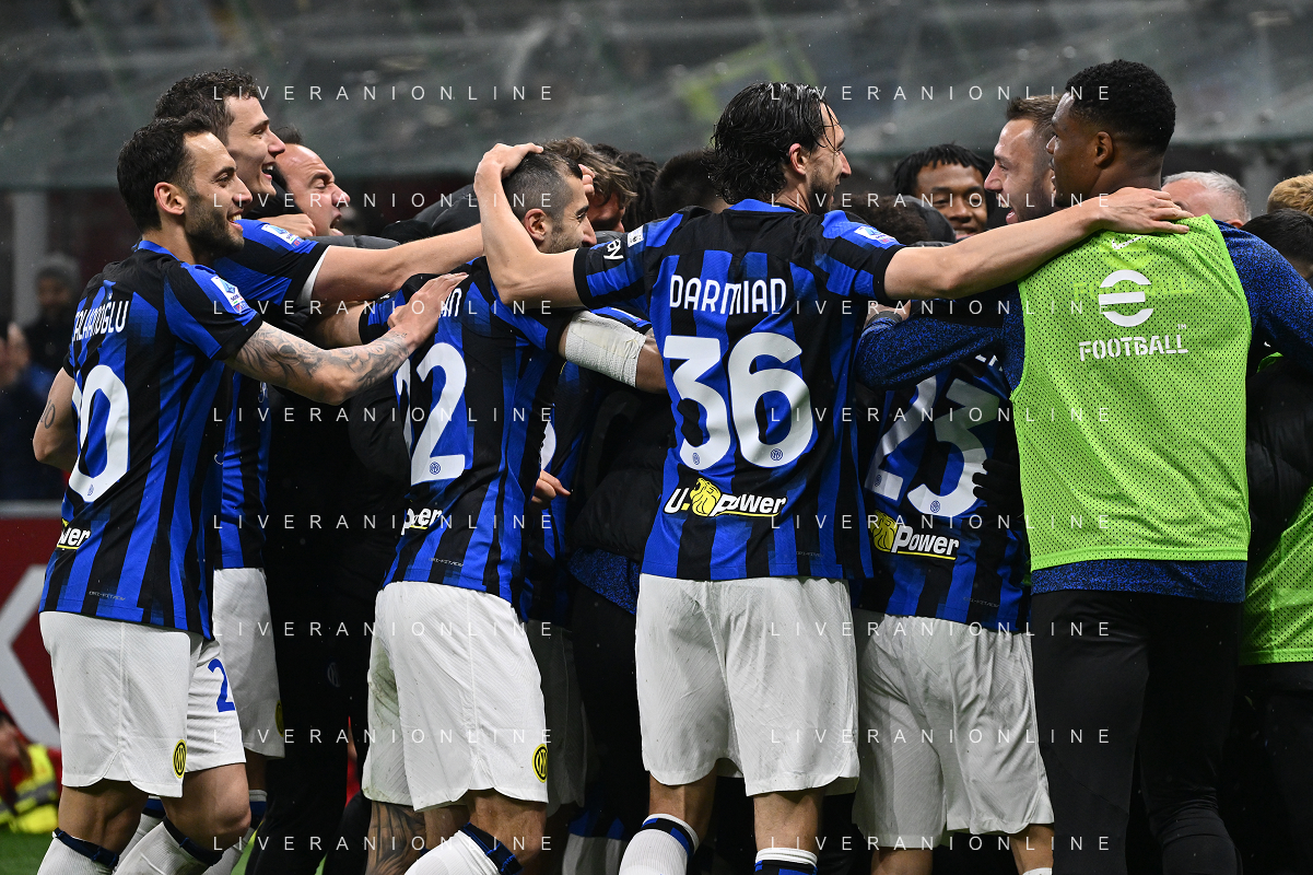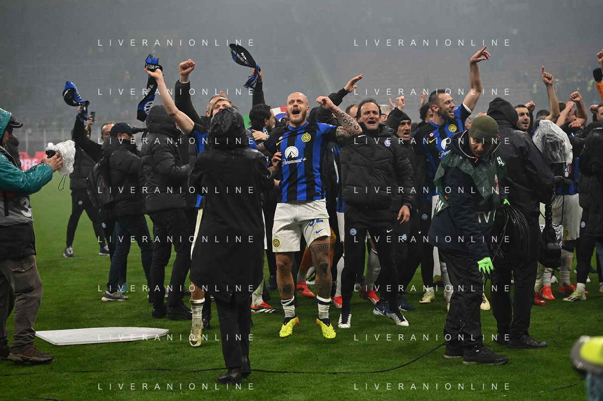 Milan vs Inter nella foto esultanza finale Inter Milano 22-04-2024 Stadio Giuseppe Meazza - San Siro Campionato Serie A TIM - 33a giornata foto Roberto Garavaglia/Agenzia Aldo Liverani sas / AGENZIA ALDO LIVERANI SAS
