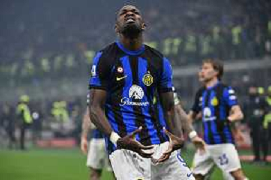 Milan vs Inter nella foto Marcus Thuram (Inter) e Simone Inzaghi allenatore Inter Milano 22-04-2024 Stadio Giuseppe Meazza - San Siro Campionato Serie A TIM - 33a giornata foto Roberto Garavaglia/Agenzia Aldo Liverani sas / AGENZIA ALDO LIVERANI SAS