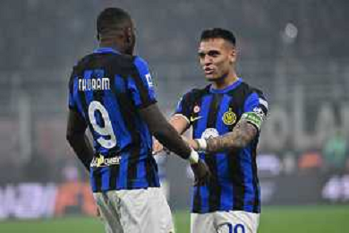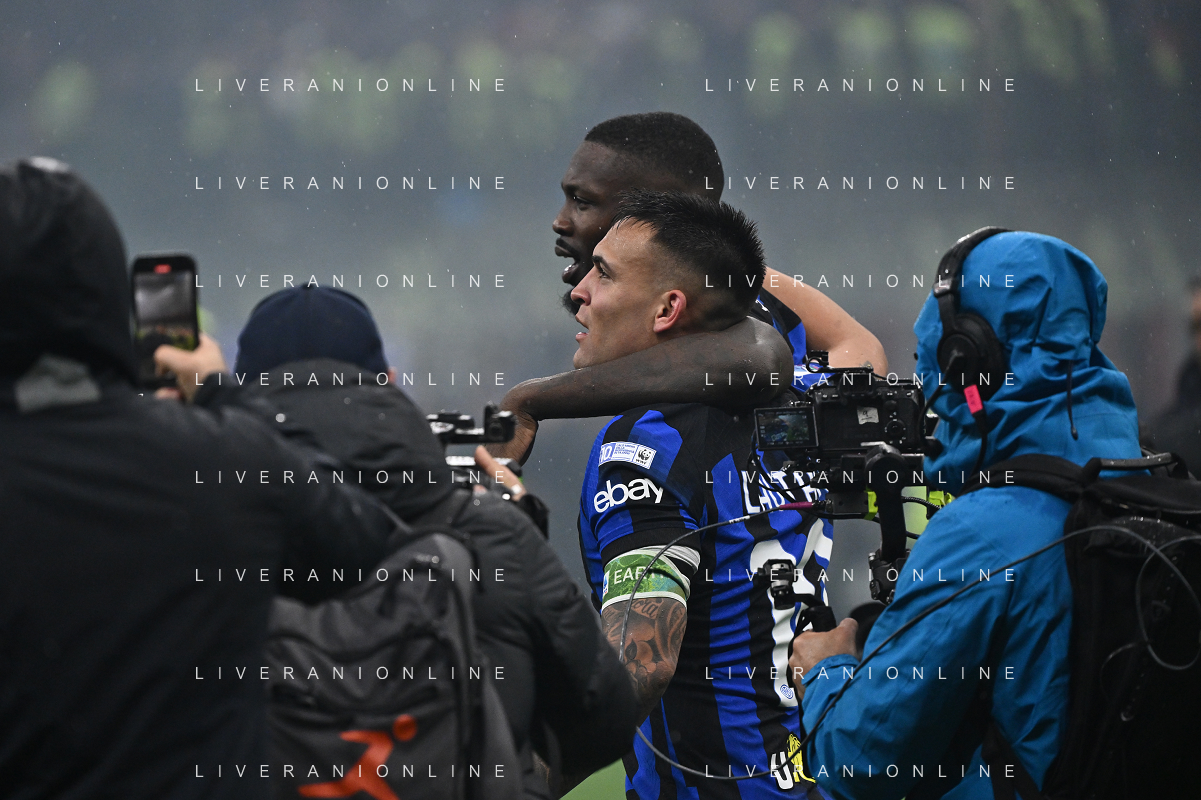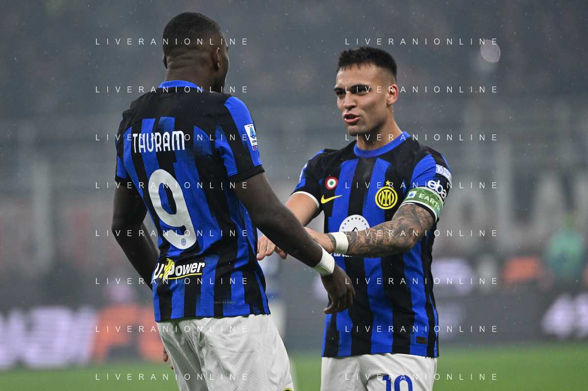 Milan vs Inter nella foto Lautaro Martinez (Inter) e Marcus Thuram (Inter) Milano 22-04-2024 Stadio Giuseppe Meazza - San Siro Campionato Serie A TIM - 33a giornata foto Roberto Garavaglia/Agenzia Aldo Liverani sas / AGENZIA ALDO LIVERANI SAS