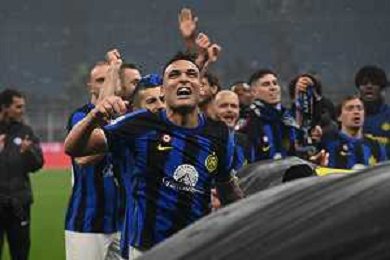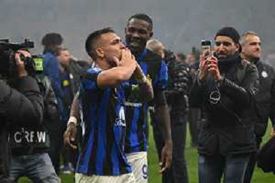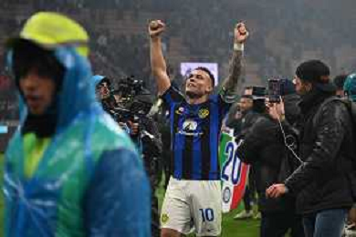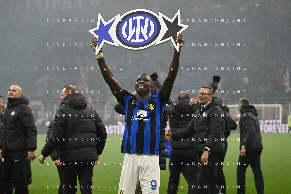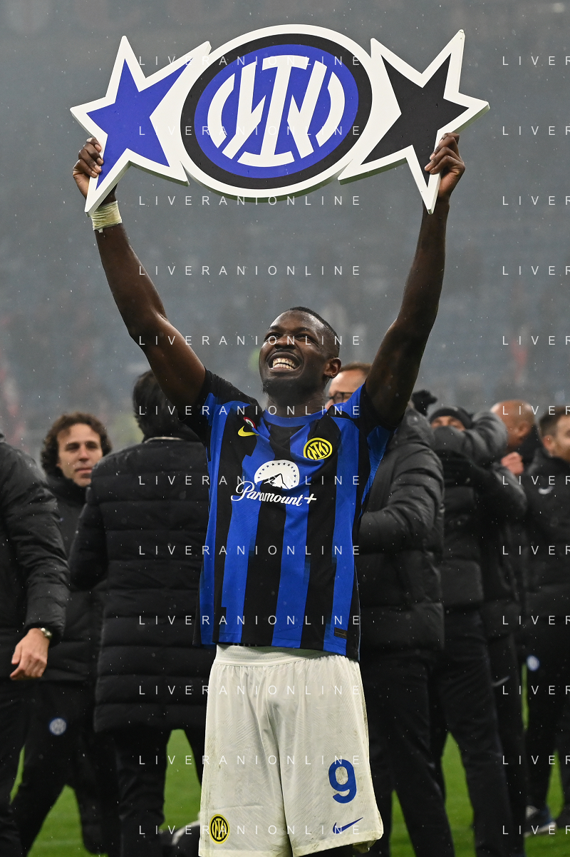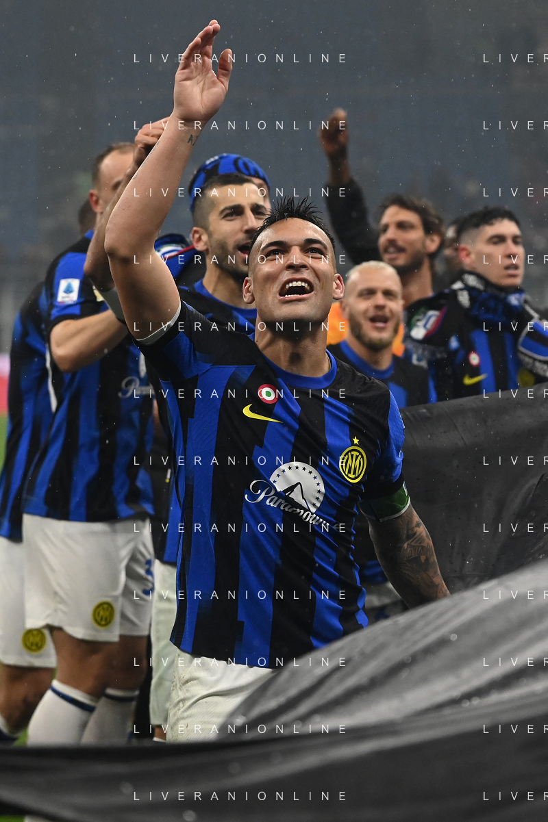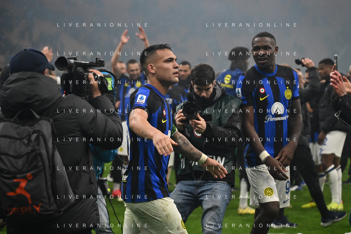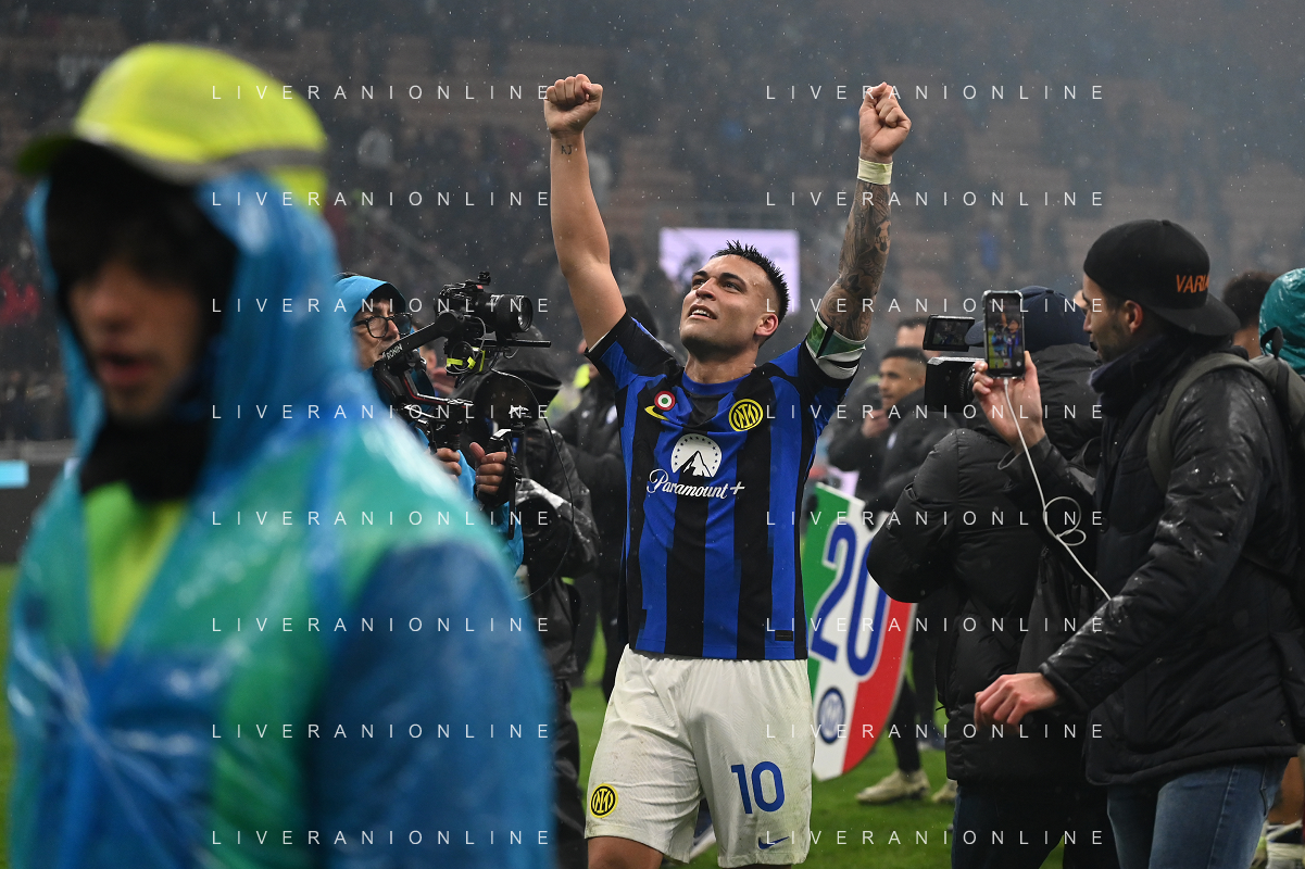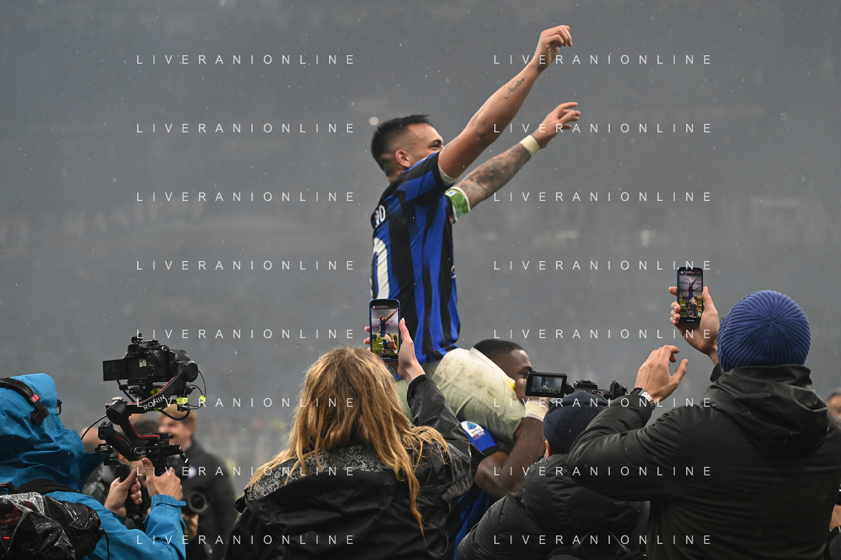 Milan vs Inter nella foto esultanza finale Inter - Festeggiamenti per la vittoria del 20mo scudetto - lautaro martinez Milano 22-04-2024 Stadio Giuseppe Meazza - San Siro Campionato Serie A TIM - 33a giornata foto Roberto Garavaglia/Agenzia Aldo Liverani sas / AGENZIA ALDO LIVERANI SAS