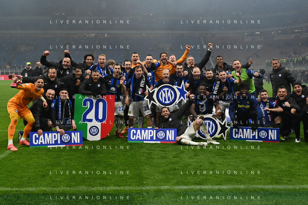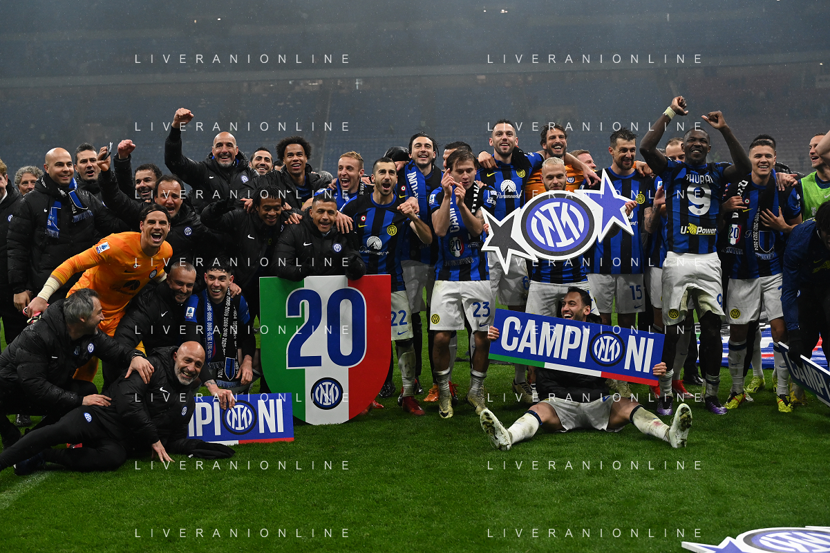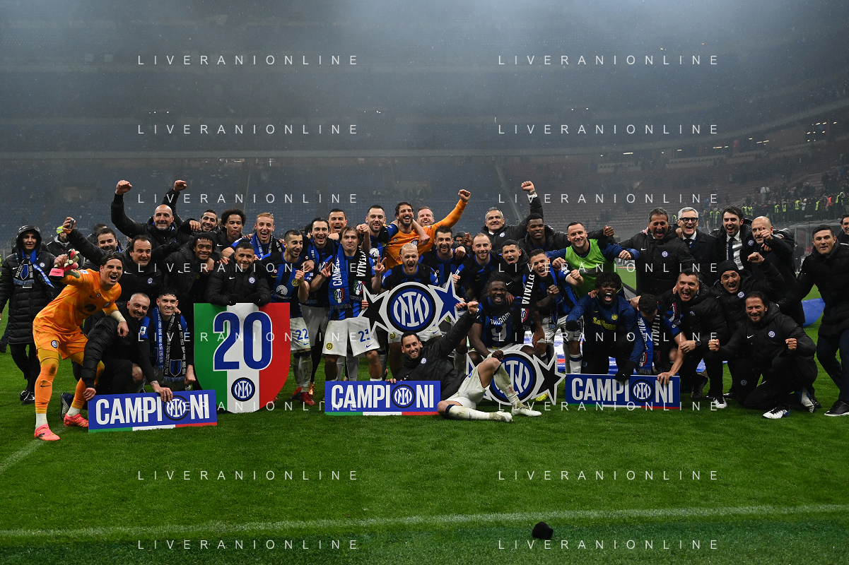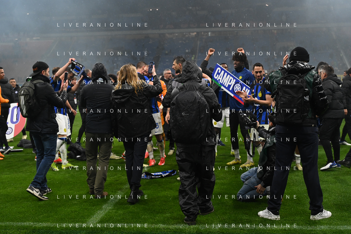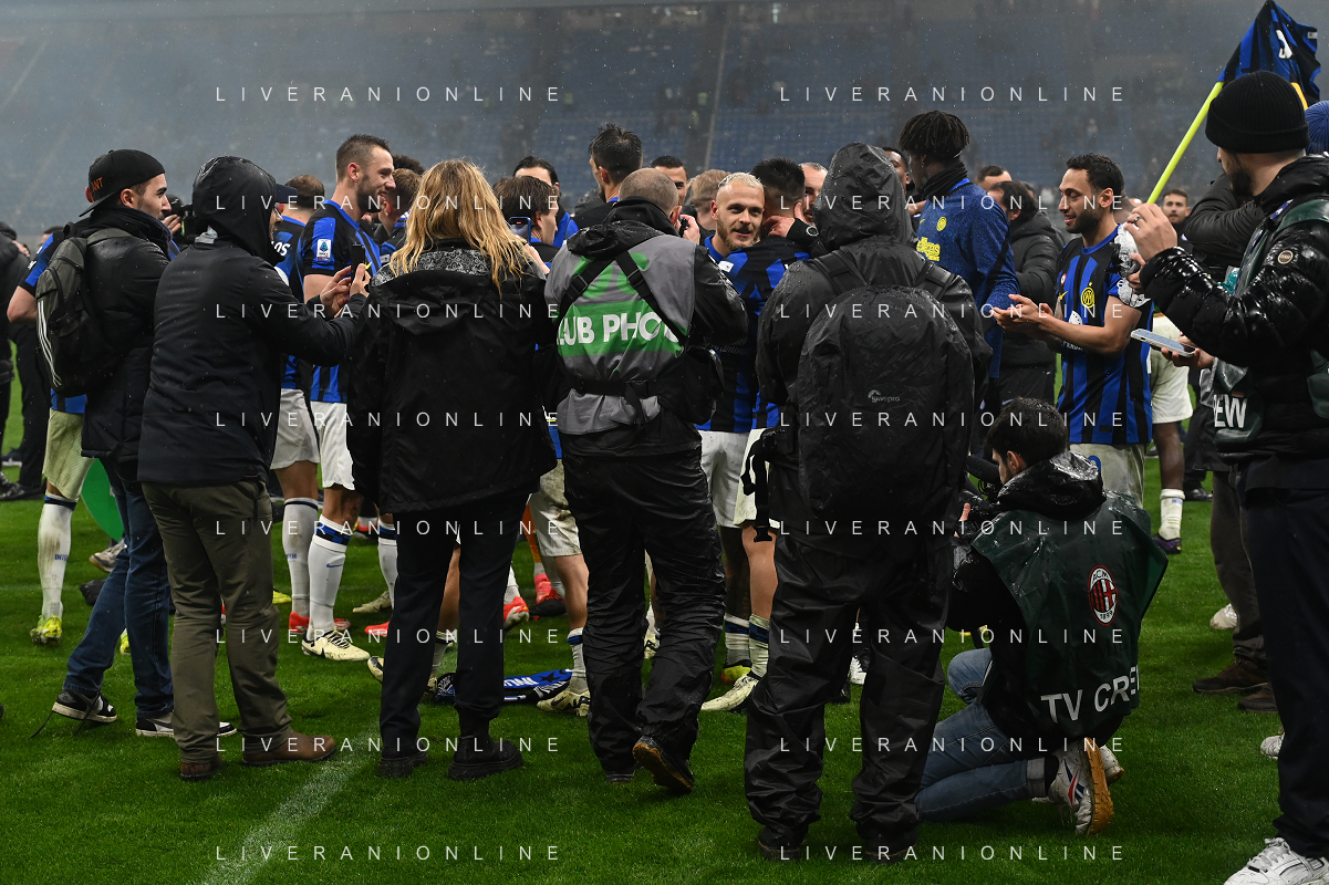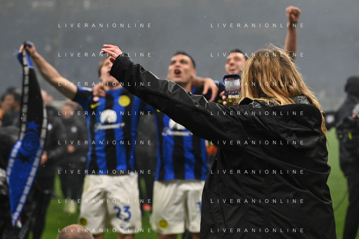 Milan vs Inter nella foto esultanza finale Inter - Festeggiamenti per la vittoria del 20mo scudetto Milano 22-04-2024 Stadio Giuseppe Meazza - San Siro Campionato Serie A TIM - 33a giornata foto Roberto Garavaglia/Agenzia Aldo Liverani sas / AGENZIA ALDO LIVERANI SAS
