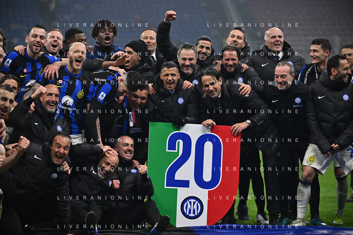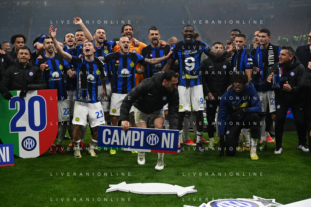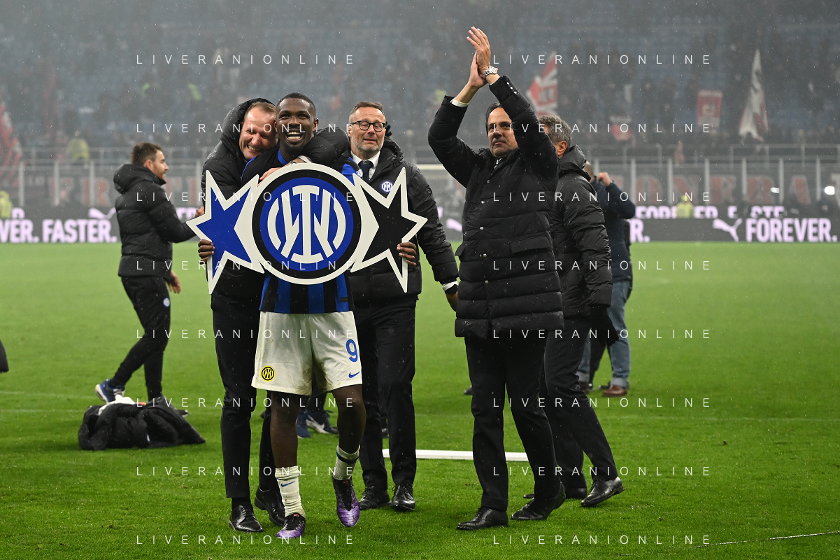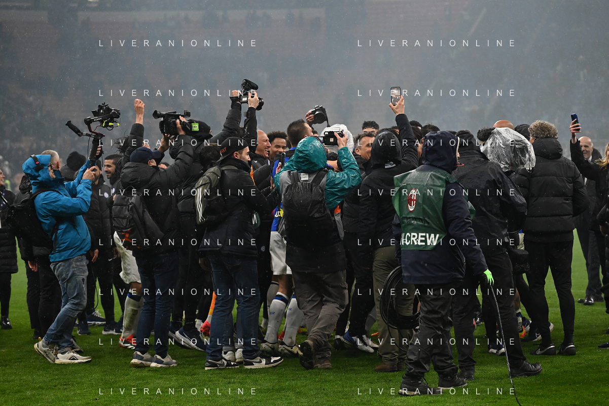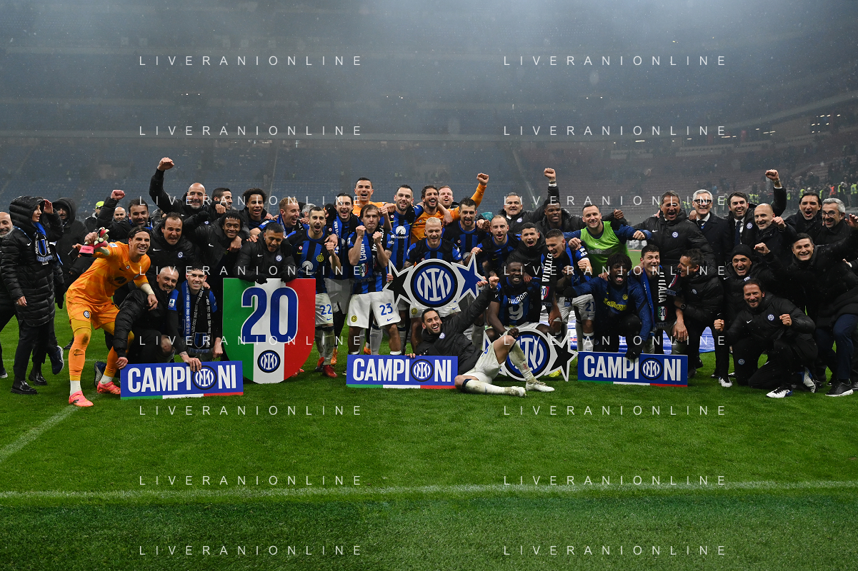 Milan vs Inter nella foto esultanza finale Inter - Festeggiamenti per la vittoria del 20mo scudetto Milano 22-04-2024 Stadio Giuseppe Meazza - San Siro Campionato Serie A TIM - 33a giornata foto Roberto Garavaglia/Agenzia Aldo Liverani sas / AGENZIA ALDO LIVERANI SAS