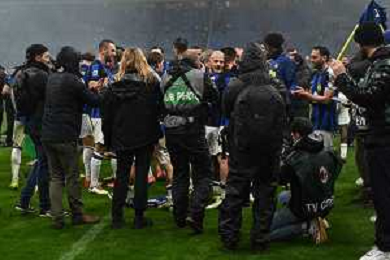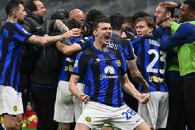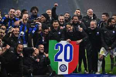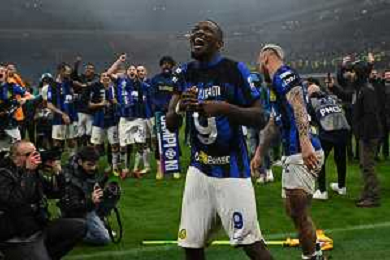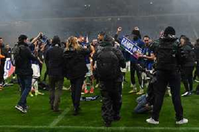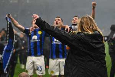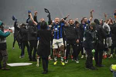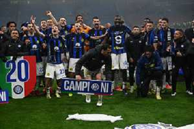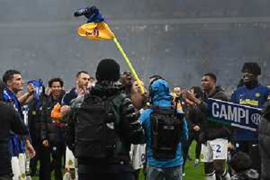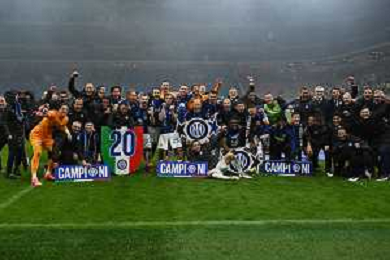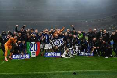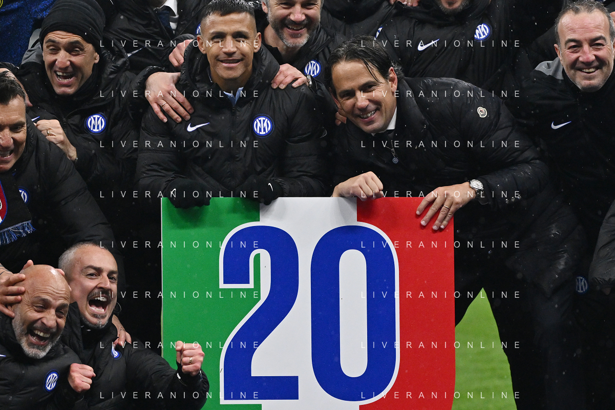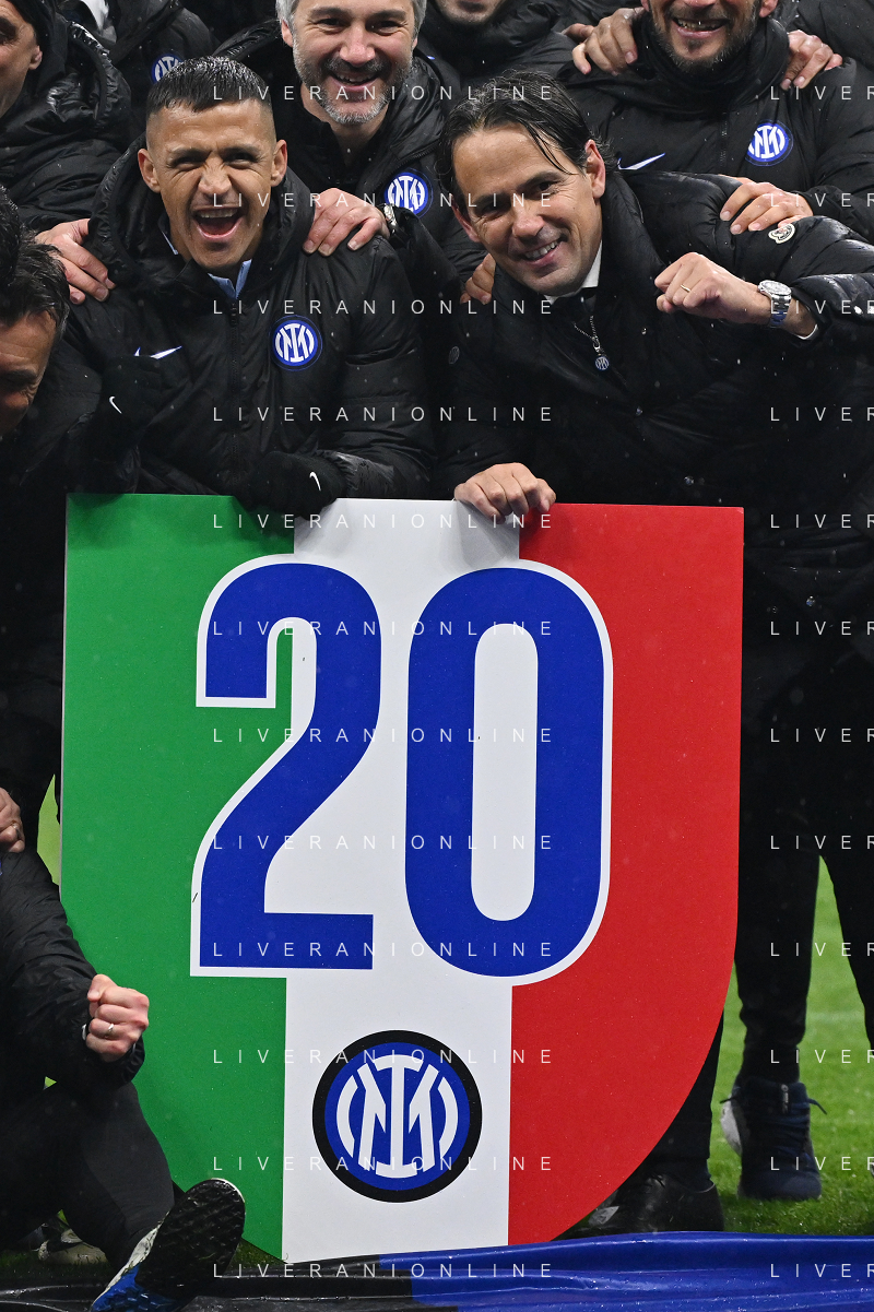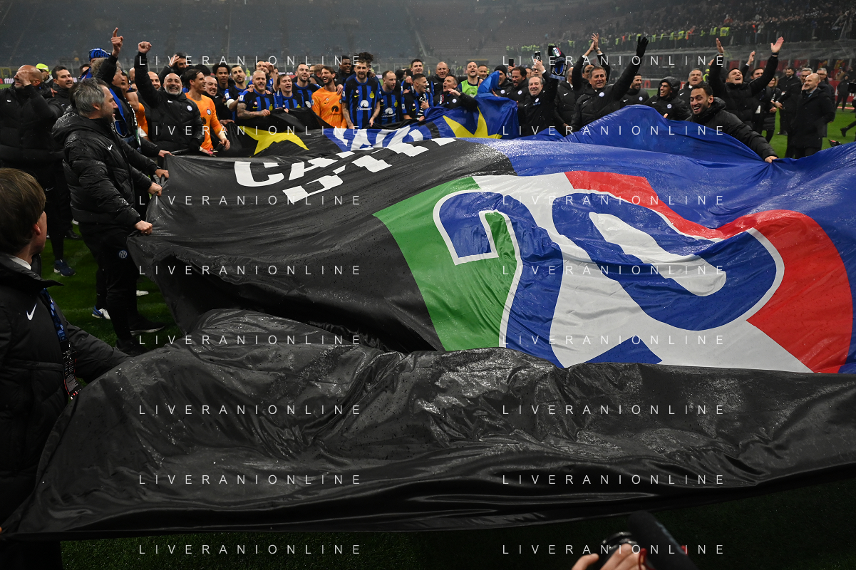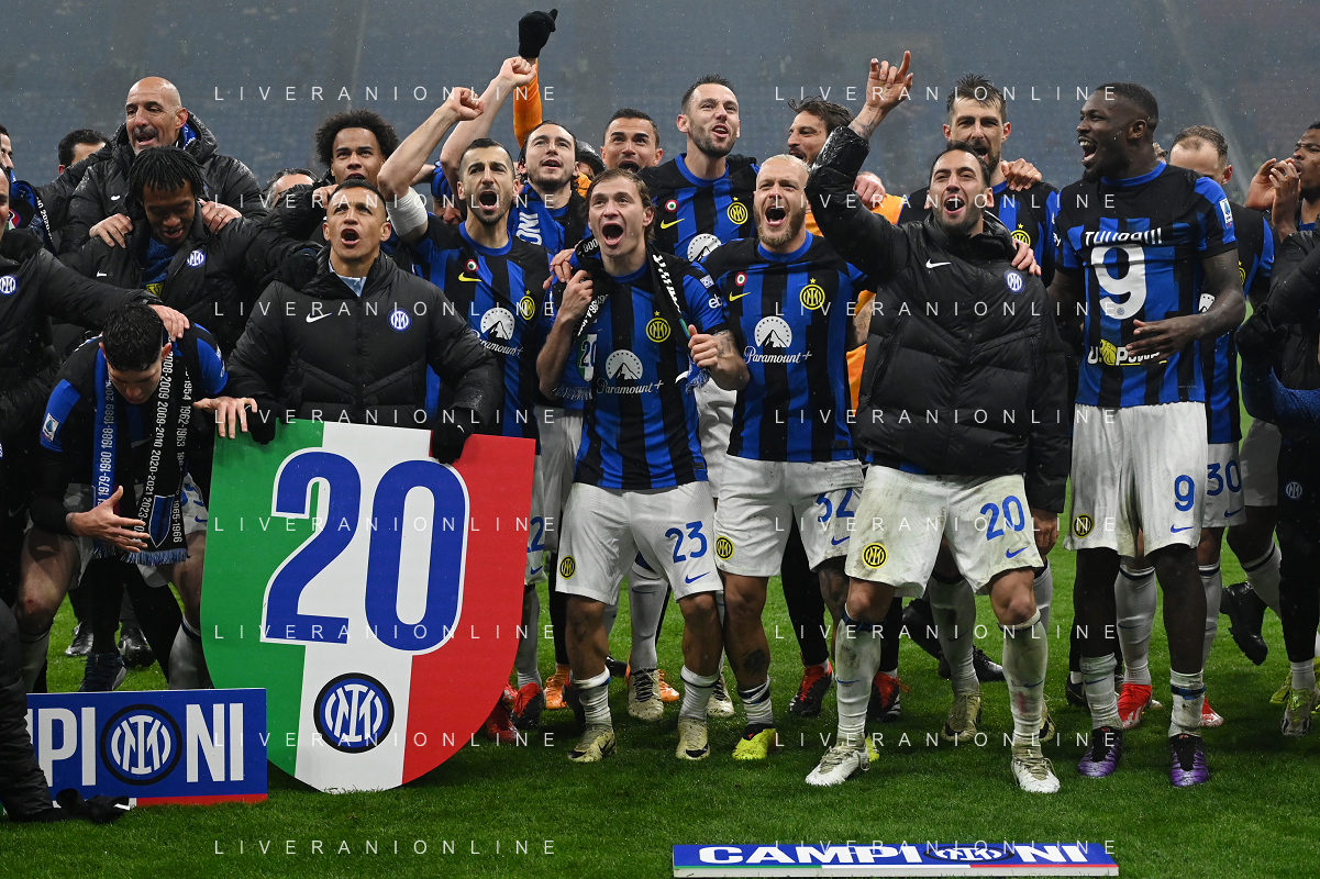 Milan vs Inter nella foto esultanza finale Inter - Festeggiamenti per la vittoria del 20mo scudetto Milano 22-04-2024 Stadio Giuseppe Meazza - San Siro Campionato Serie A TIM - 33a giornata foto Roberto Garavaglia/Agenzia Aldo Liverani sas / AGENZIA ALDO LIVERANI SAS