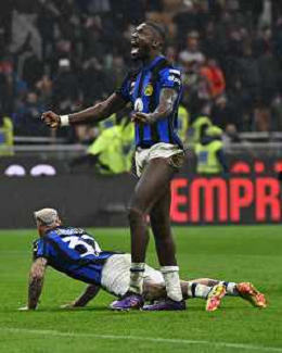 Milan vs Inter nella foto Marcus Thuram (Inter) esultanza a fine partita Milano 22-04-2024 Stadio Giuseppe Meazza - San Siro Campionato Serie A TIM - 33a giornata foto Roberto Garavaglia/Agenzia Aldo Liverani sas / AGENZIA ALDO LIVERANI SAS