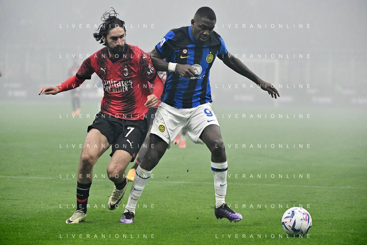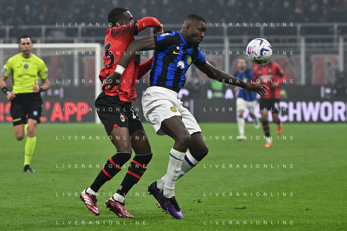 Milan vs Inter nella foto Yacine Adli (Milan) e Marcus Thuram (Inter) Milano 22-04-2024 Stadio Giuseppe Meazza - San Siro Campionato Serie A TIM - 33a giornata foto Roberto Garavaglia/Agenzia Aldo Liverani sas / AGENZIA ALDO LIVERANI SAS