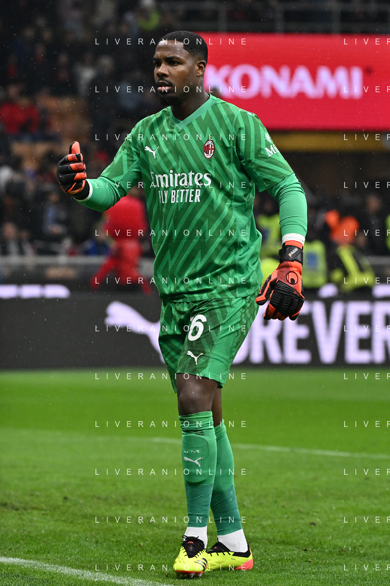 Milan vs Inter nella foto Mike Maignan (Milan) Milano 22-04-2024 Stadio Giuseppe Meazza - San Siro Campionato Serie A TIM - 33a giornata foto Roberto Garavaglia/Agenzia Aldo Liverani sas / AGENZIA ALDO LIVERANI SAS