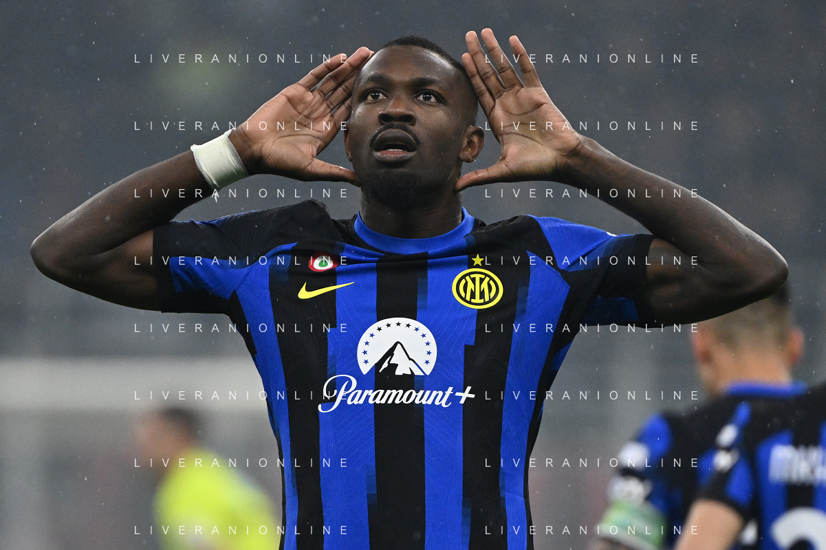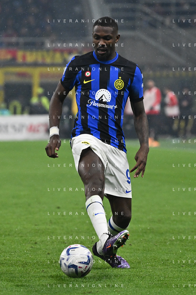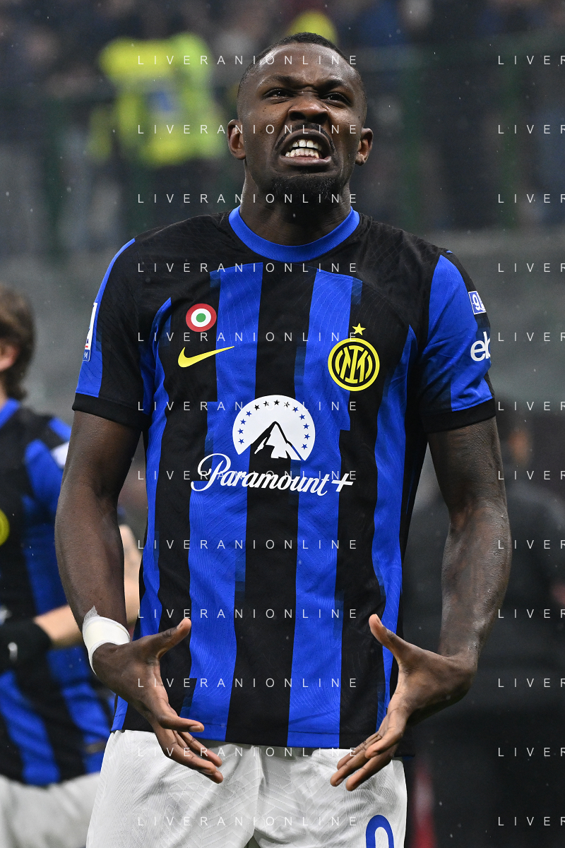 Milan vs Inter nella foto Marcus Thuram (Inter) Milano 22-04-2024 Stadio Giuseppe Meazza - San Siro Campionato Serie A TIM - 33a giornata foto Roberto Garavaglia/Agenzia Aldo Liverani sas / AGENZIA ALDO LIVERANI SAS