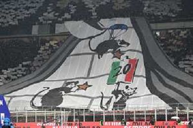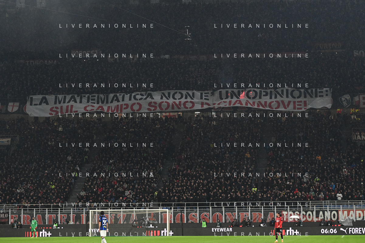 Milan vs Inter nella foto tifosi Milan striscione Milano 22-04-2024 Stadio Giuseppe Meazza - San Siro Campionato Serie A TIM - 33a giornata foto Roberto Garavaglia/Agenzia Aldo Liverani sas / AGENZIA ALDO LIVERANI SAS