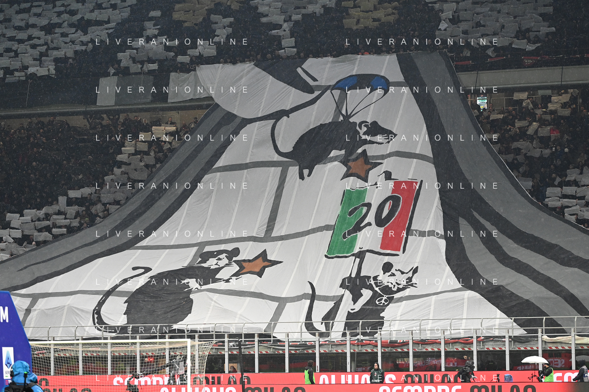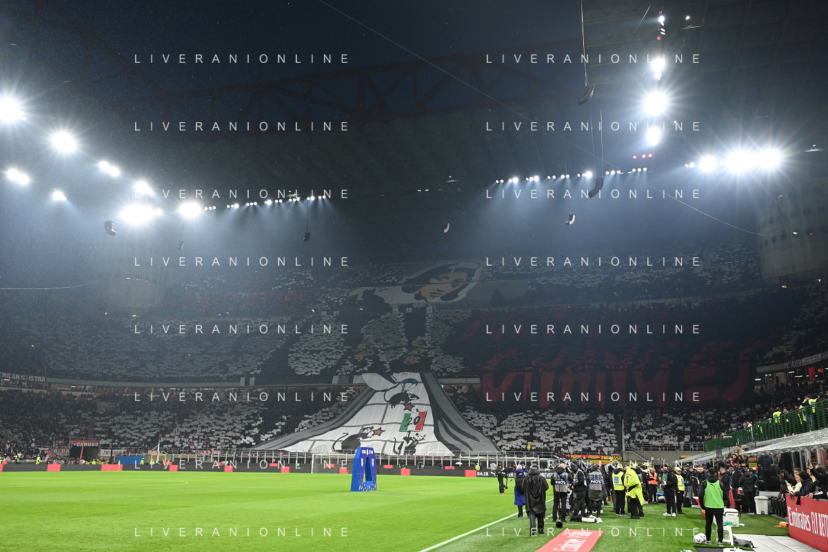 Milan vs Inter nella foto tifosi Milan coreografia Milano 22-04-2024 Stadio Giuseppe Meazza - San Siro Campionato Serie A TIM - 33a giornata foto Roberto Garavaglia/Agenzia Aldo Liverani sas / AGENZIA ALDO LIVERANI SAS